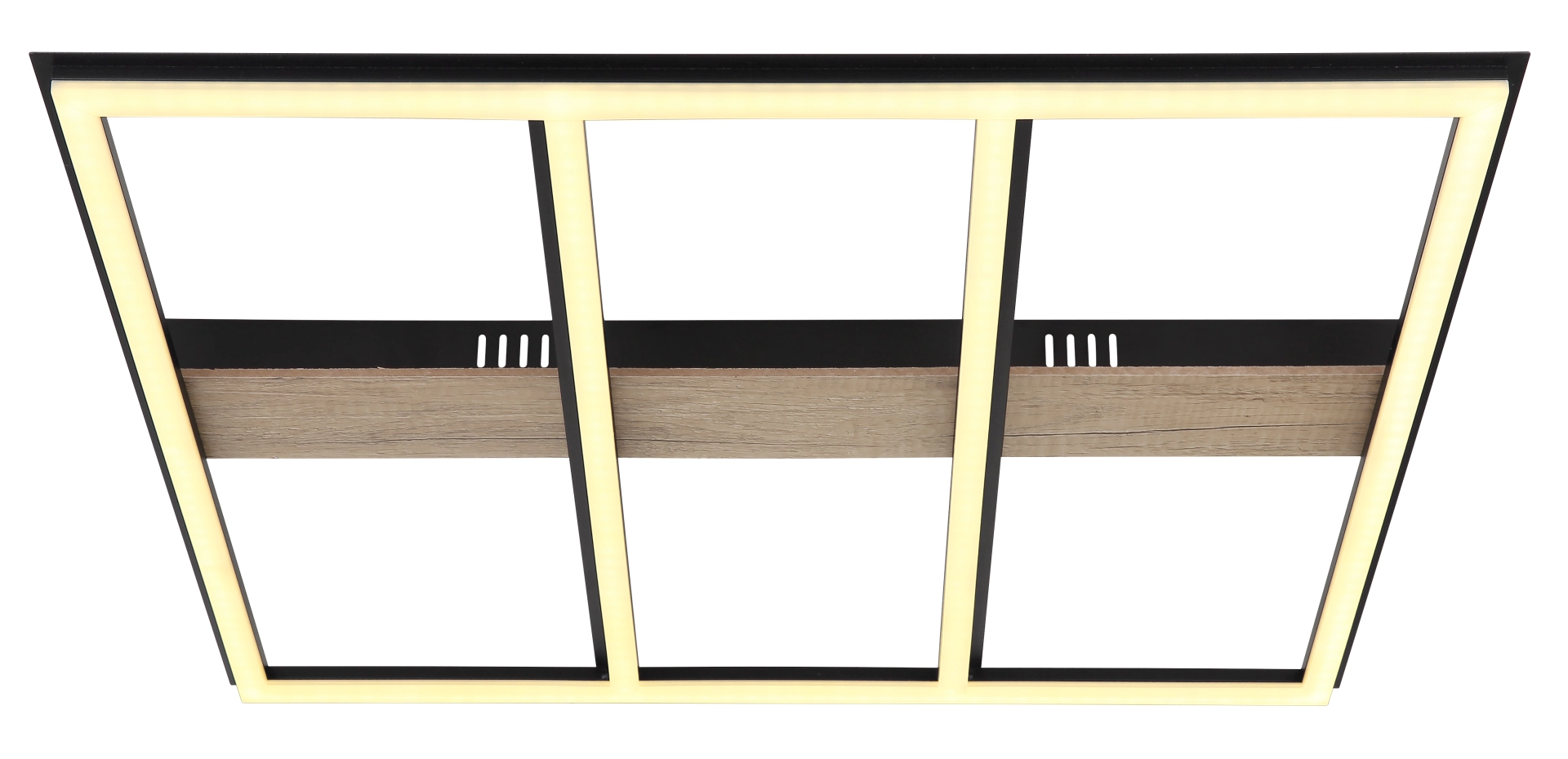 Le plafonnier de la série FROOMY en noir mat en métal et en bois MDF est un choix élégant pour n’importe quelle pièce. L’abat-jour opale en plastique offre une lumière diffuse et agréable. Les applications en aluminium en noir mat donnent au design une touche moderne. La lampe a une taille de 600x600x55mm et est donc idéale pour les grandes pièces. La LED incluse a une puissance de 48W et fournit un éclairage lumineux et économe en énergie avec une sortie de 3600lm à 3000K. Avec une source de 4900lm, le luminaire est également un bon choix pour les exigences de luminosité plus élevées. Ce plafonnier est parfait pour ceux qui recherchent une solution d’éclairage moderne et pratique.