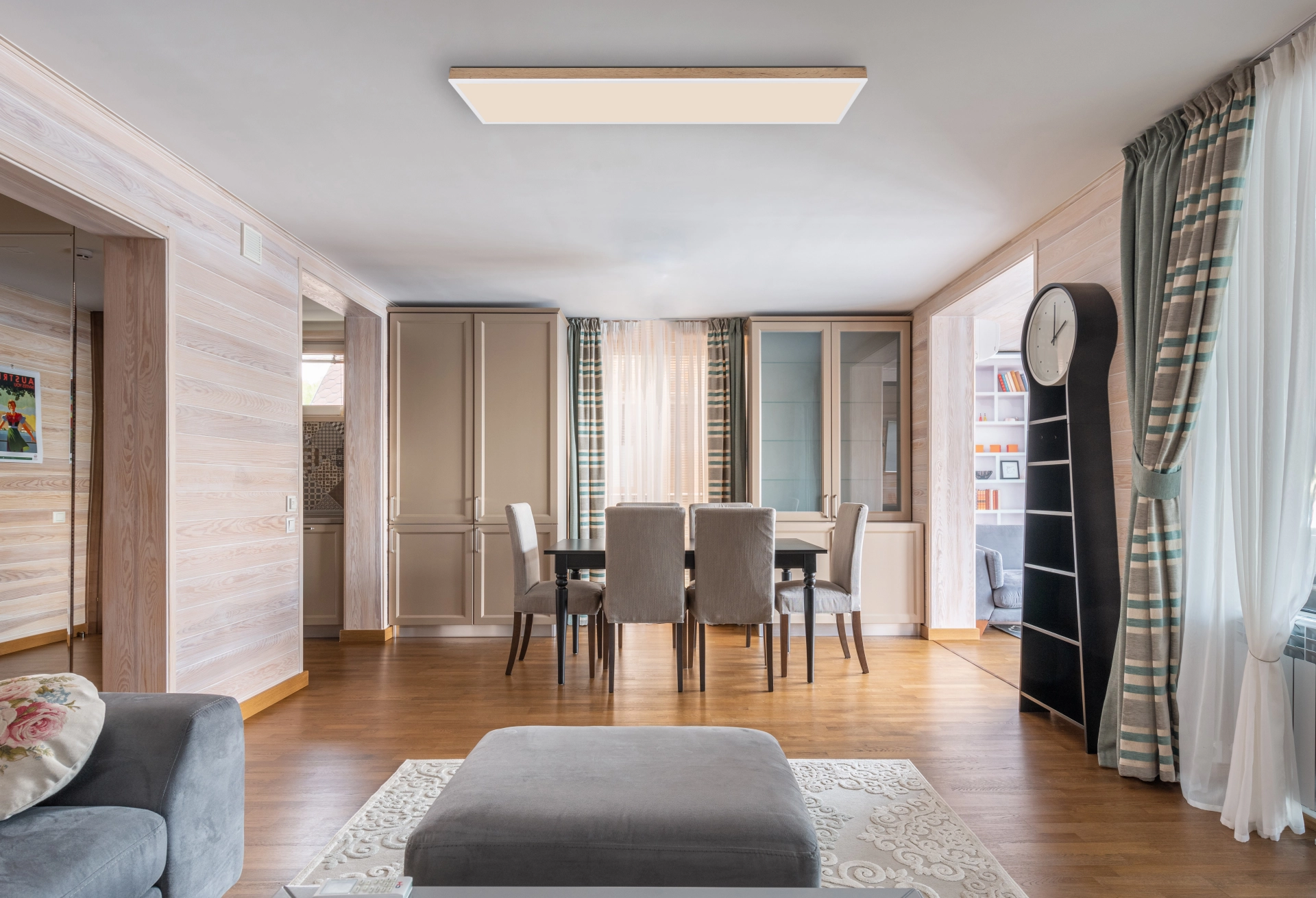 Le plafonnier de la série ROSI (120 x 30 cm) en aluminium laqué blanc mat et effet bois MDF de ... En savoir plus En savoir plus