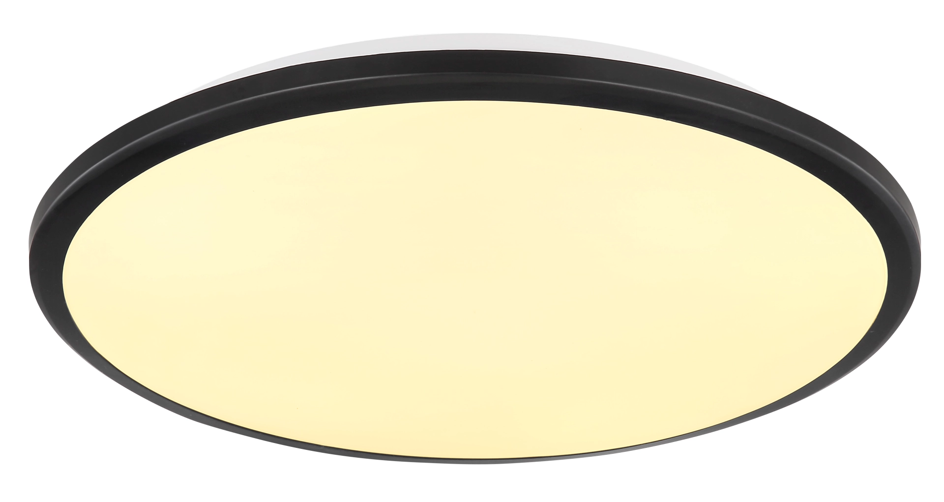 Le plafonnier est en plastique noir mat et en plastique opale, disposés dans un diamètre de 350 mm. Le luminaire est alimenté par une ampoule LED d’une puissance de 18 W et d’une tension de 230 V. La source lumineuse a une luminosité de 2050 lm et une puissance de sortie de 950 lm avec une température de couleur de 3000K. Ce plafonnier attire vraiment le regard et est idéal pour les espaces de vie modernes. La combinaison du plastique noir mat et du plastique opale donne à la lampe un aspect élégant. Avec la lampe LED, vous économisez de l’énergie et protégez l’environnement. Le plafonnier a un diamètre de 350 mm et une hauteur de 55 mm. Il est idéal pour les pièces avec des plafonds bas ou comme élément central dans une pièce. La luminosité de la lampe LED fournit un éclairage agréable qui baigne la pièce d’une lumière chaude.