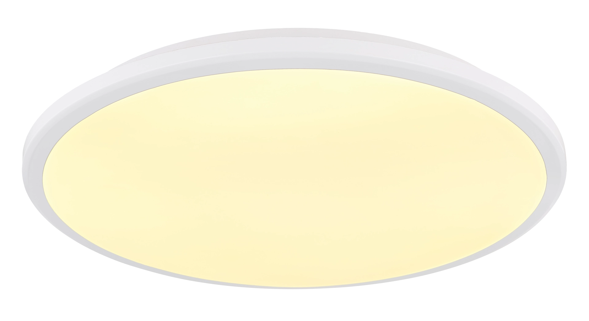 Le plafonnier est en plastique blanc mat et en plastique opale, disposé dans un diamètre de 350 mm. Le luminaire est alimenté par une ampoule LED d’une puissance de 18 W et d’une tension de 230 V. La source lumineuse a une luminosité de 2050 lm et une puissance de sortie de 950 lm avec une température de couleur de 3000K. Ce plafonnier attire vraiment le regard et est idéal pour les espaces de vie modernes. La combinaison de plastique blanc mat et de plastique opale donne à la lampe un aspect élégant. Avec la lampe LED, vous économisez de l’énergie et protégez l’environnement. Le plafonnier a un diamètre de 350 mm et une hauteur de 55 mm. Il est idéal pour les pièces avec des plafonds bas ou comme élément central dans une pièce. La luminosité de la lampe LED fournit un éclairage agréable qui baigne la pièce d’une lumière chaude.