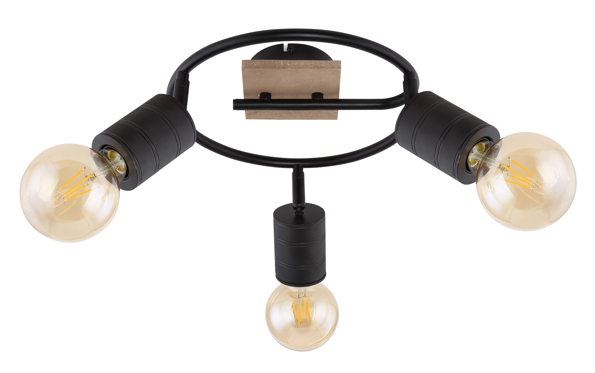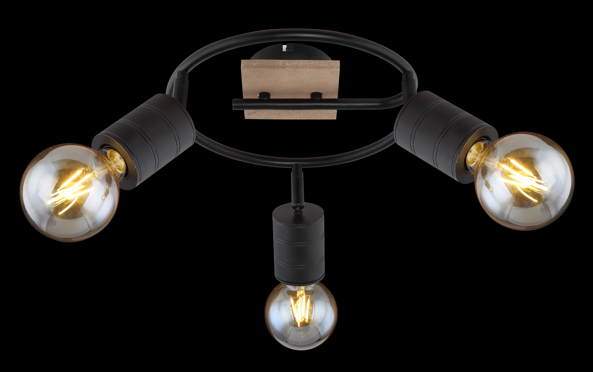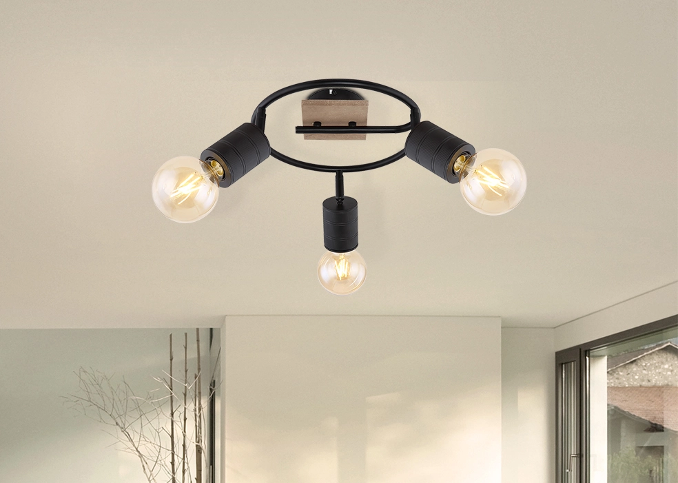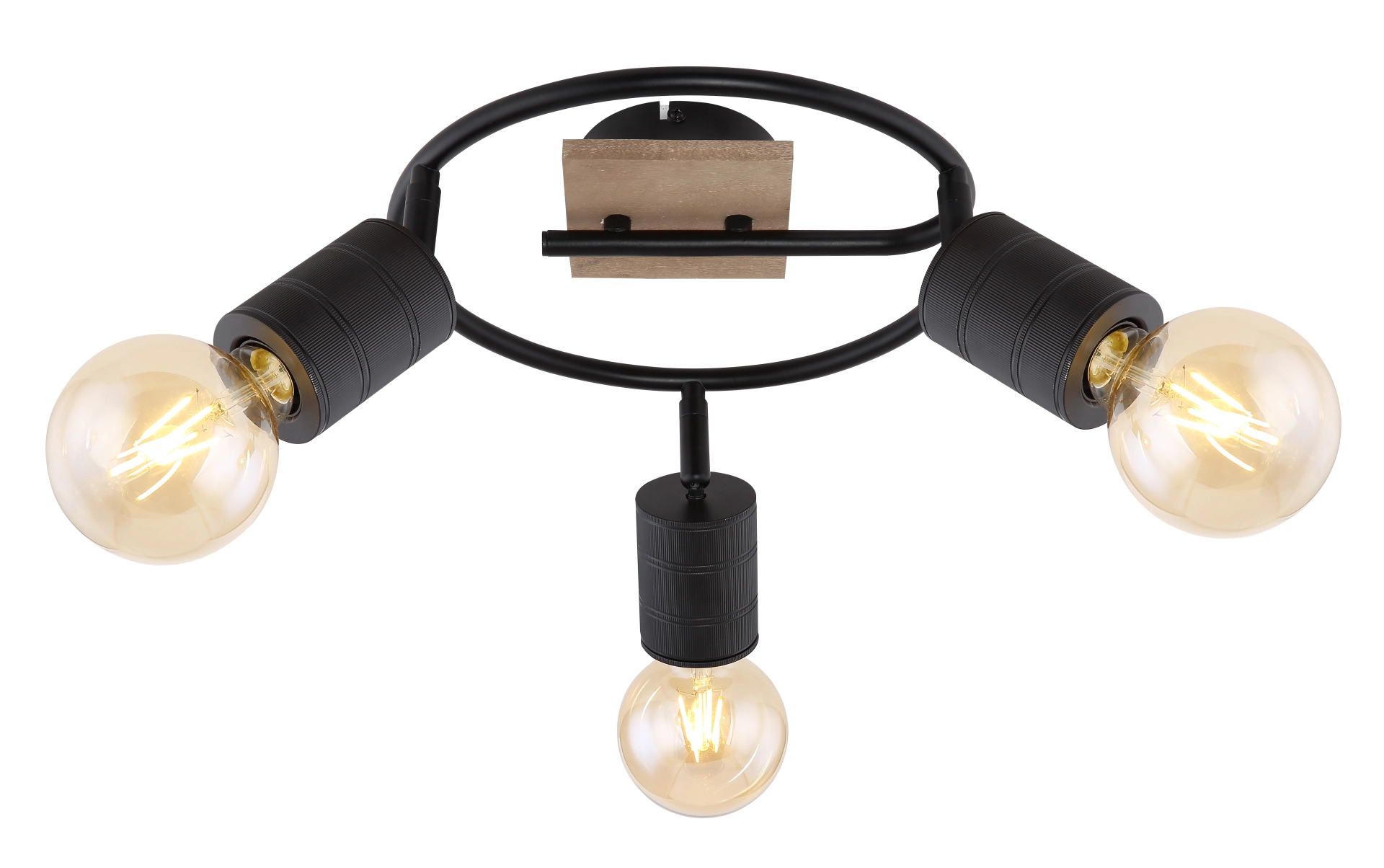 Le projecteur moderne à trois flammes Josella convainc par son design simple, mais très moderne. La combinaison du bois brun foncé et de la douille E27 noire mate fait de cette lampe un véritable accroche-regard. En choisissant librement les ampoules (max. 60W) vous pouvez laisser vos quatre murs briller selon vos goûts. Les prises peuvent également être pivotées selon les besoins.