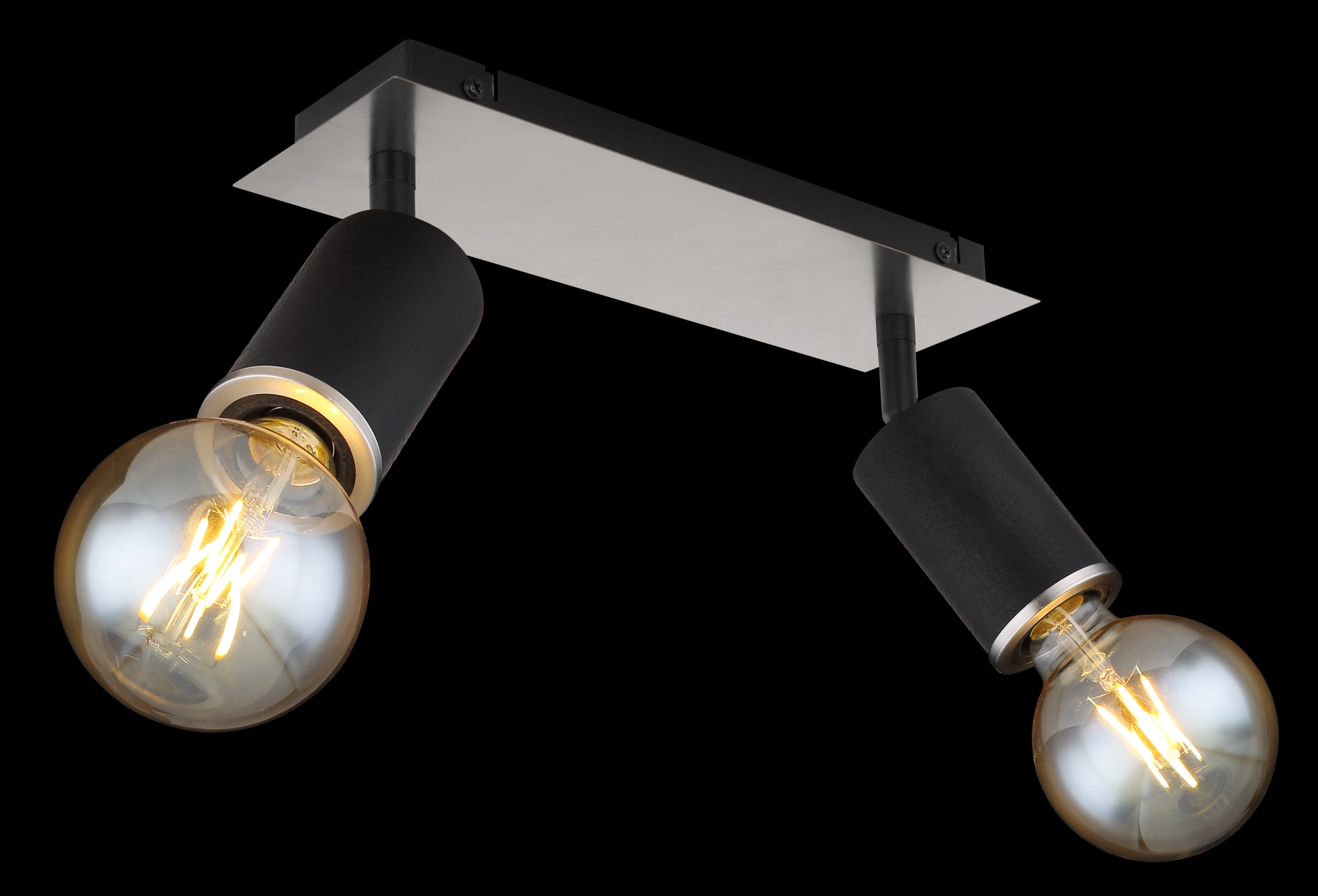 Ce projecteur à deux faisceaux de la série Joseba (31x10 cm) est un ajout élégant à vos intérieurs. Il se compose d’une plaque métallique nickel-mat à laquelle sont fixées deux douilles E27 recouvertes de bois noir et un anneau métallique nickel-mat. Vous pouvez les équiper de lampes appropriées de votre choix, ce qui vous donne la possibilité de déterminer individuellement la couleur et la luminosité de la lumière. Avec d’autres modèles de la même série, vous pouvez créer une ambiance élégante dans vos quatre murs.