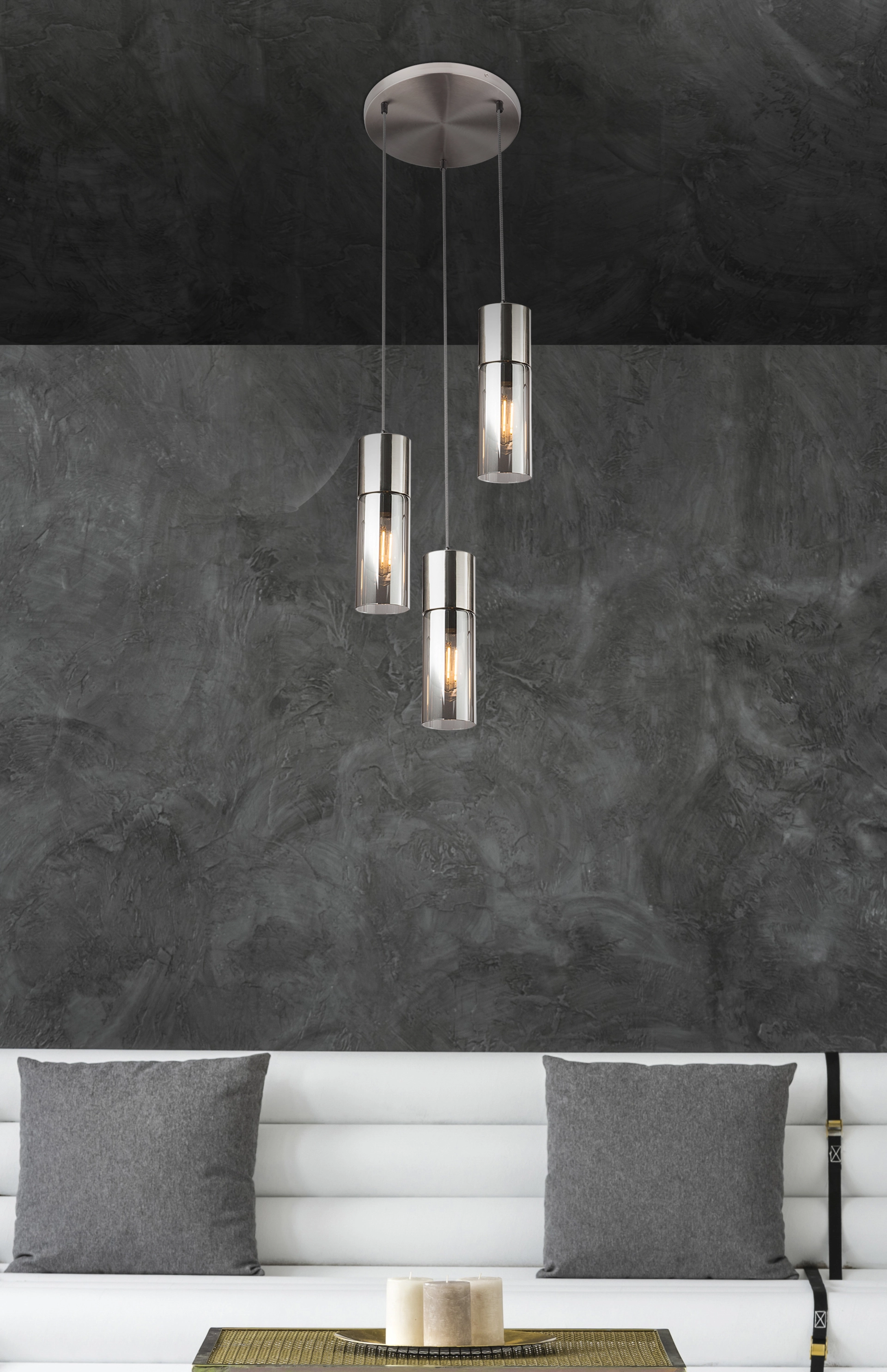 La suspension Annika est un éclairage attrayant dans les espaces de vie modernes. Le câble textile noir et blanc de 150 cm de long est fixé à un petit support de plafond rond en nickel-mat. À l’extrémité inférieure pendent les stores étroits et élégants du cylindre de verre. En raison du verre de couleur fumée, la lumière semble très agréablement chaude et contribue ainsi à une atmosphère de vie plus agréable. La suspension est parfaitement adaptée au style d’ameublement contemporain et peut être combinée avec d’autres produits de la série. Grâce aux douilles E27, vous avez la possibilité de sélectionner librement l’ampoule jusqu’à un maximum de 25 watts. Selon la couleur de la lumière et l’intensité lumineuse que vous souhaitez avoir. Nous recommandons la LED, en raison de ses économies d’énergie et de sa longévité. Combinez cette magnifique lampe suspendue avec d’autres produits de la série Annika et laissez-vous enchanter par le design élégant.
