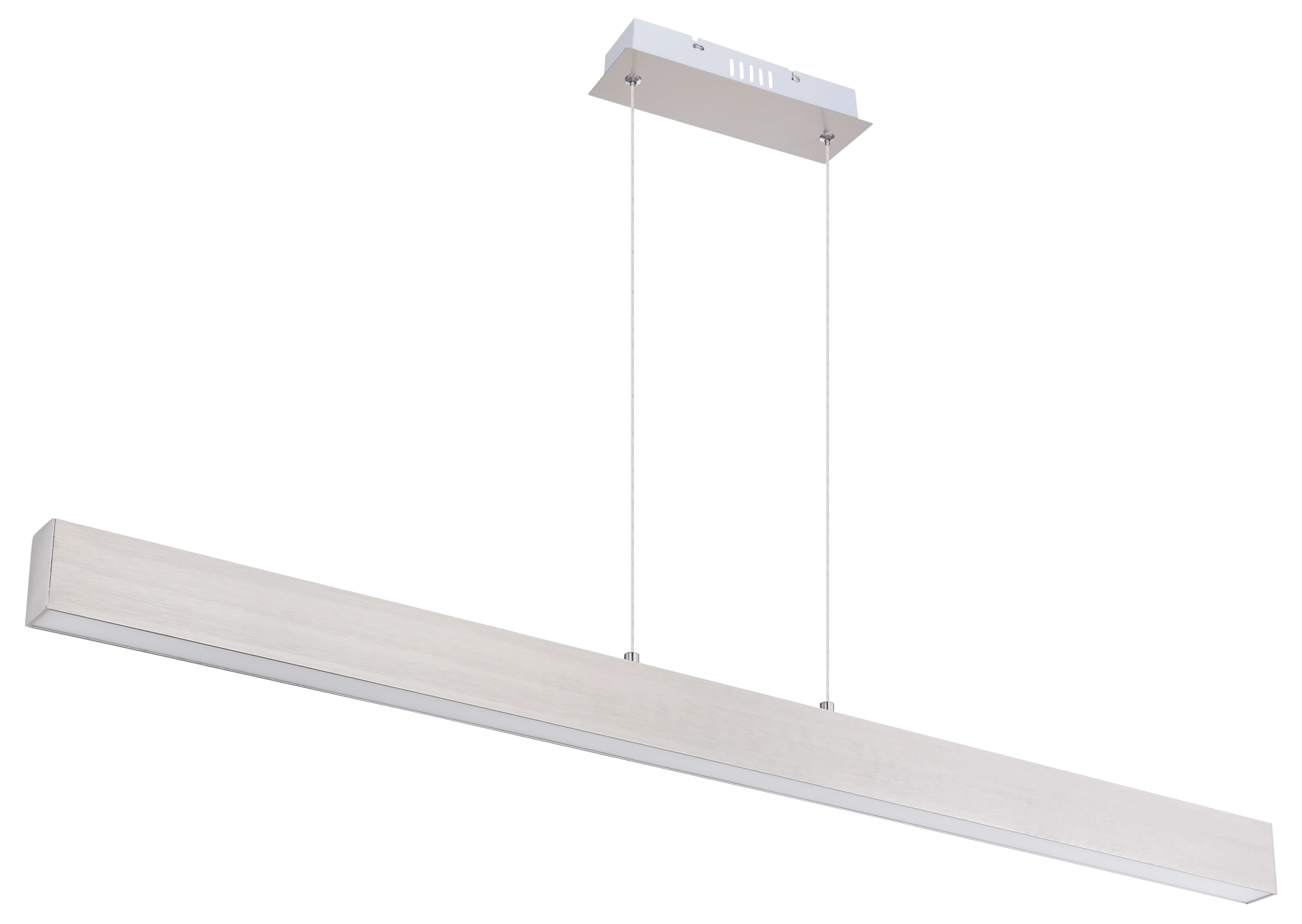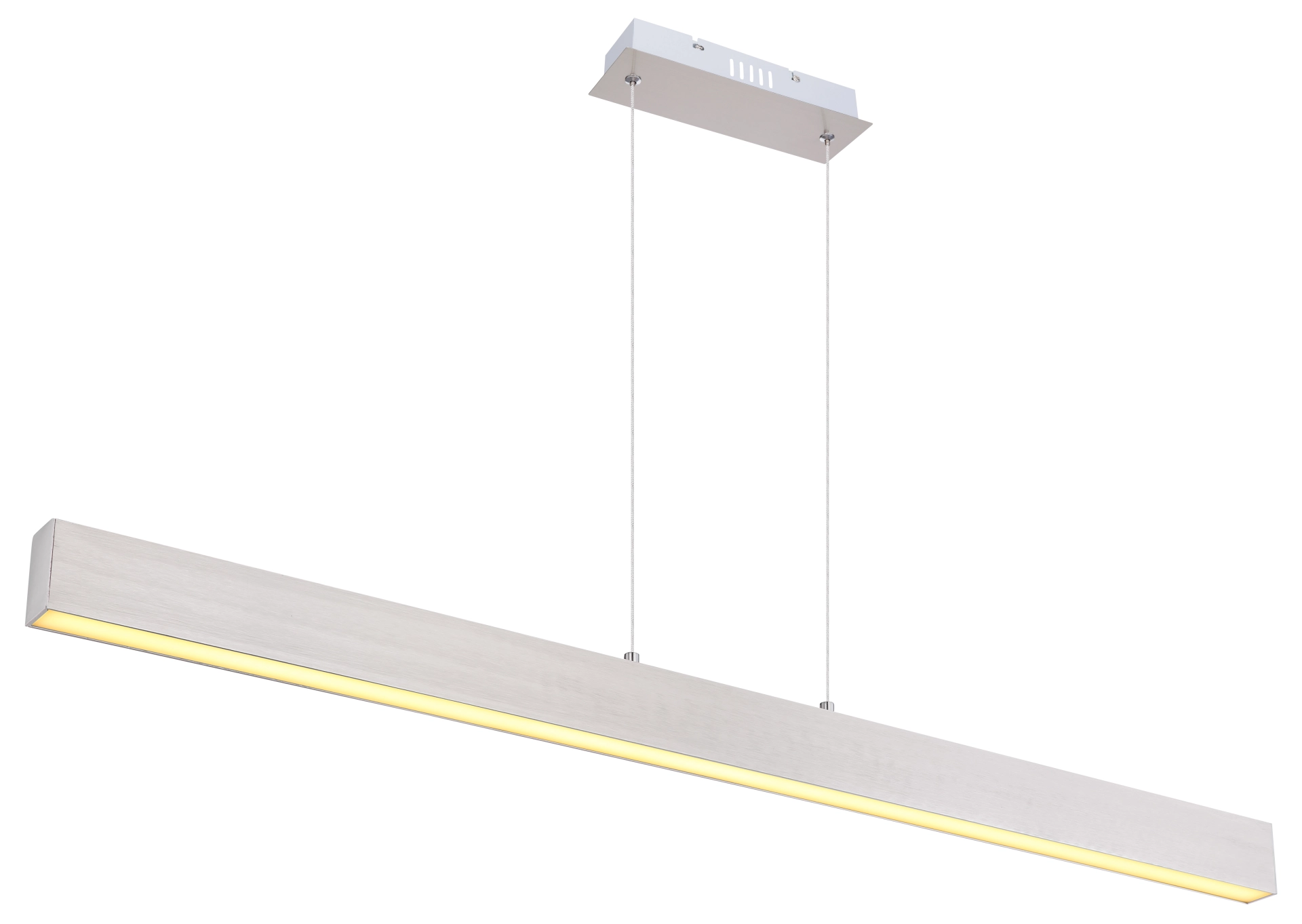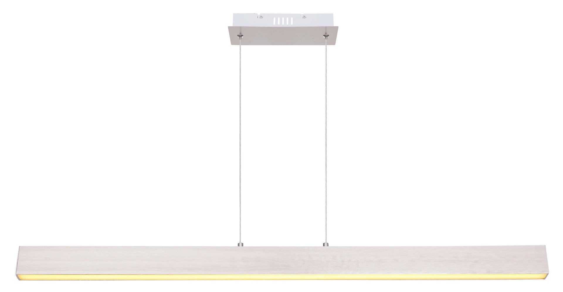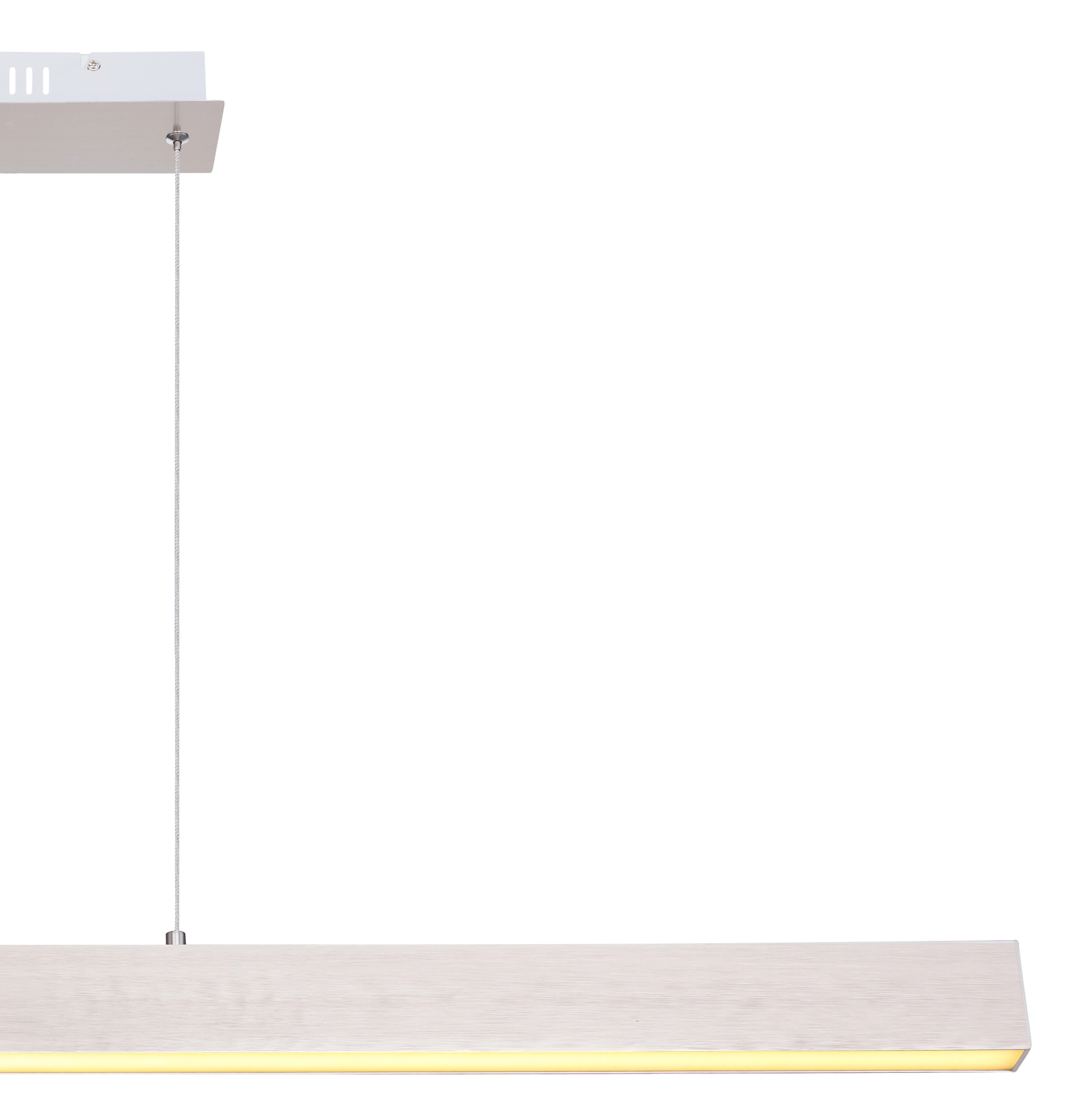 La lampe suspendue en métal avec un abat-jour en plastique blanc opale baigne votre salon ou salle à manger à travers la source de lumière incluse (3000 Kelvin) dans une lumière blanche chaude et confortable. Étant donné que la suspension en forme de faisceau peut être atténuée en 3 étapes via l’interrupteur mural, vous pouvez ajuster l’atmosphère de la pièce à votre guise. La lampe suspendue a une fonction de mémoire et se souvient de la dernière valeur définie. La poutre étroite de 8 cm devient un accroche-regard au-dessus de votre table de salle à manger ou de salon en raison de la longueur de 121 cm.
