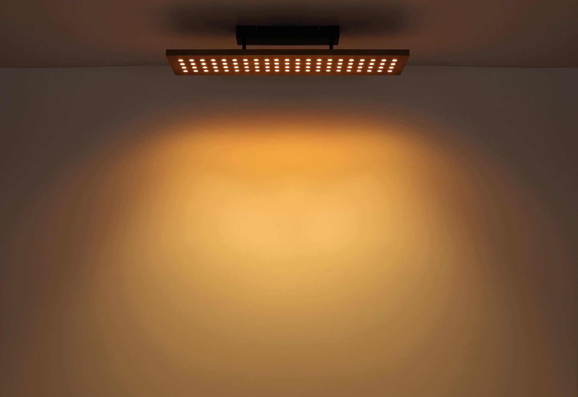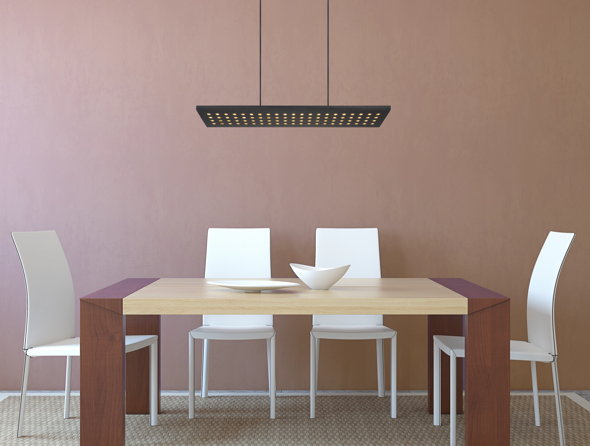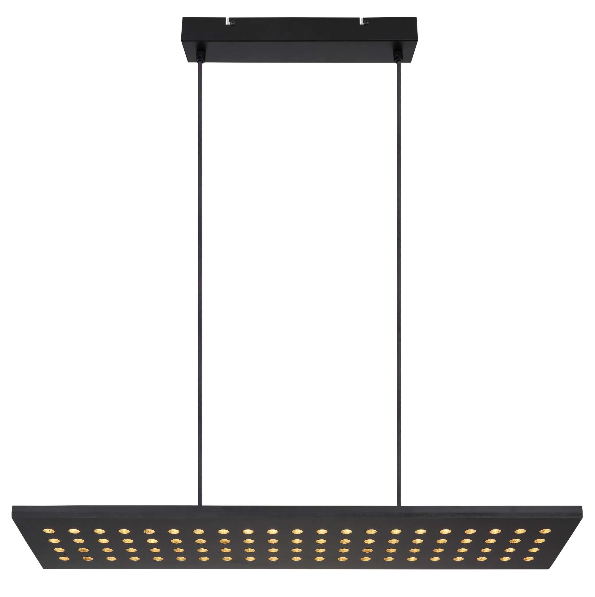 La suspension DOLORES allie design moderne et technologie d’éclairage innovante, créant une touche élégante au-dessus des tables à manger, des comptoirs ou des espaces de travail. Son corps plat et rectangulaire en métal noir mat et bois noir confère une allure élégante et intemporelle. Les nombreux petits points LED sur la surface diffusent une lumière homogène et sans éblouissement. Avec ses dimensions de 800 mm de long et 200 mm de large, la lampe s’intègre parfaitement dans les intérieurs modernes. L’éclairage LED intégré fournit 2000 lumens d’une lumière blanc chaud à 3000 K. L’intensité est réglable en trois niveaux via l’interrupteur mural, et la fonction mémoire enregistre la dernière configuration. LED incluse – économe en énergie, durable et raffinée.