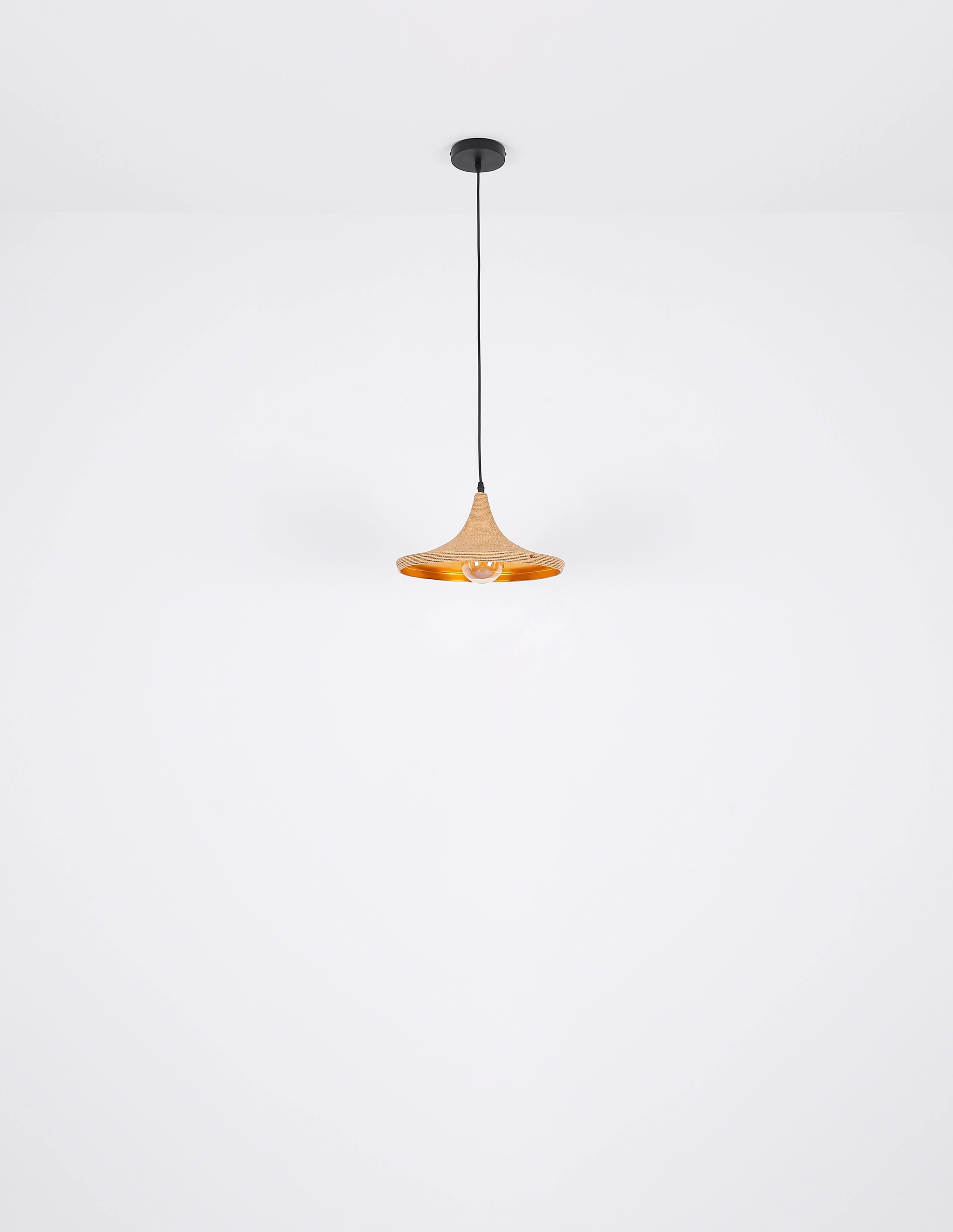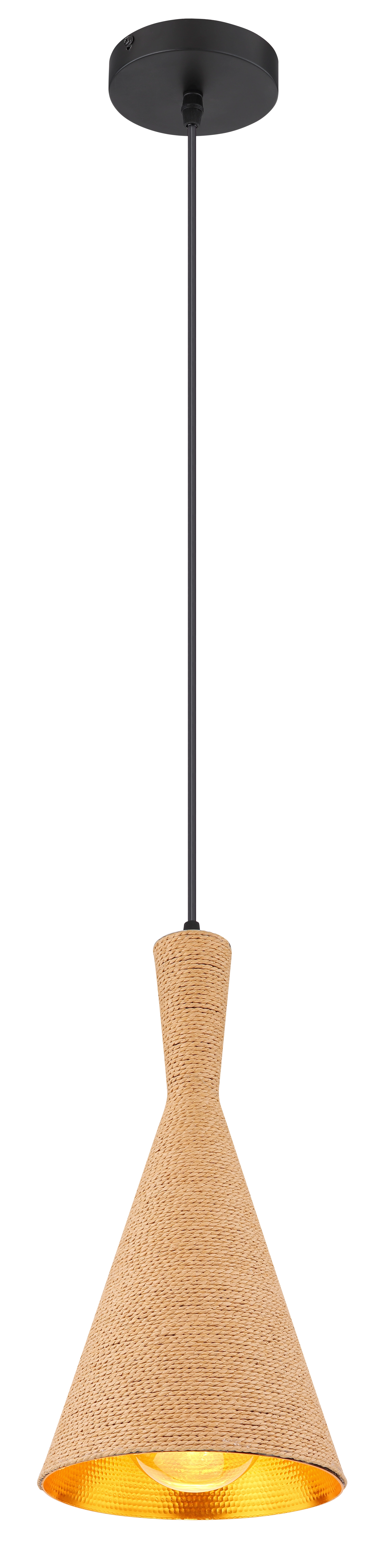 Cette lampe suspendue de la série Ludmilla (ø 19 cm) est merveilleuse pour votre salon ou salle à manger. Il se compose d’une nuance d’aluminium en forme d’entonnoir, de couleur or, recouverte de textile brun à l’extérieur. Vous pouvez l’équiper d’ampoules E27 de votre choix, ce qui vous permet de déterminer individuellement la couleur et la luminosité de la lumière. De plus, la hauteur de la suspension peut être ajustée jusqu’à 140 cm lors de l’installation. Avec d’autres modèles de la même série, vous pouvez améliorer vos intérieurs avec style.