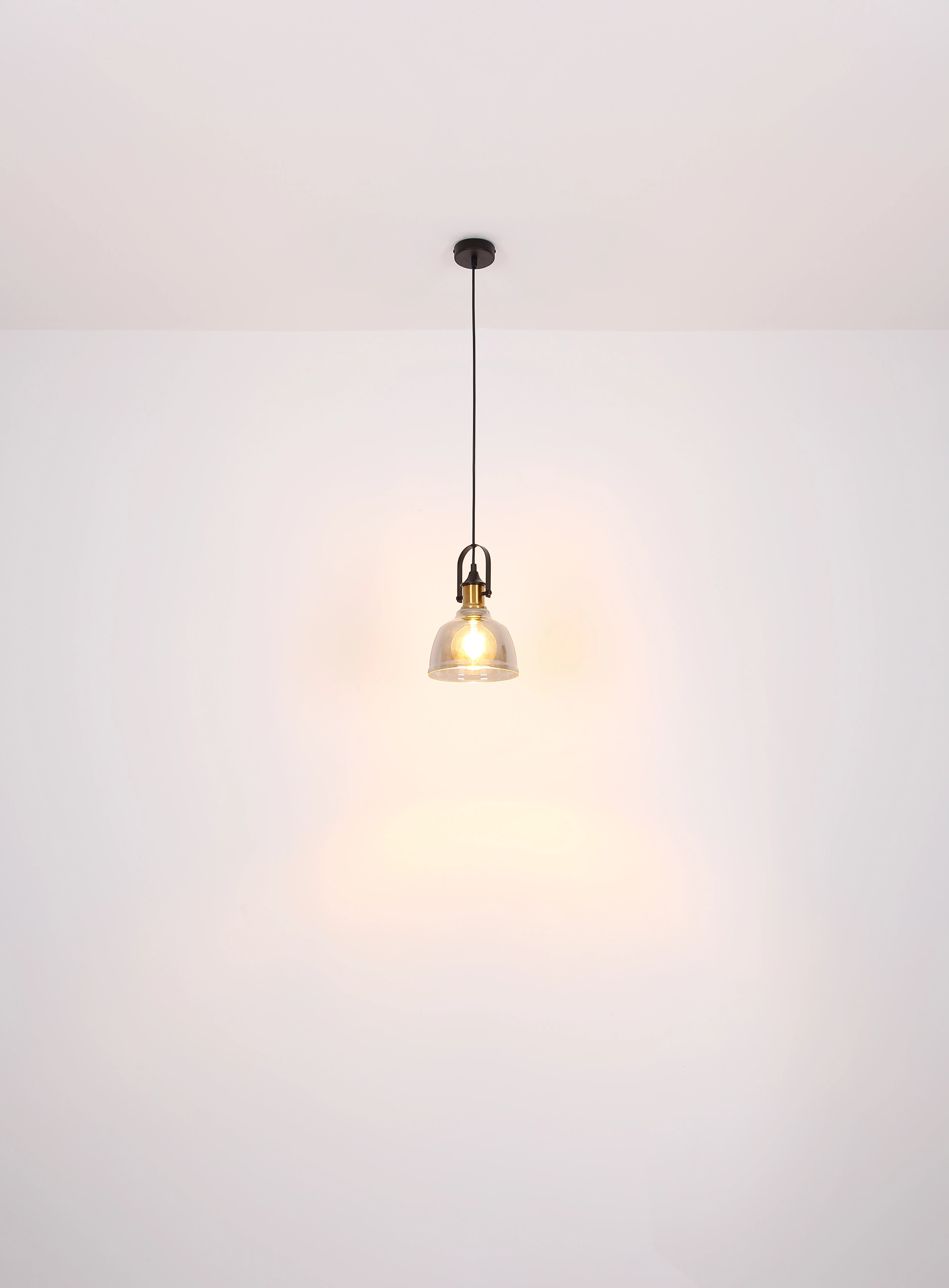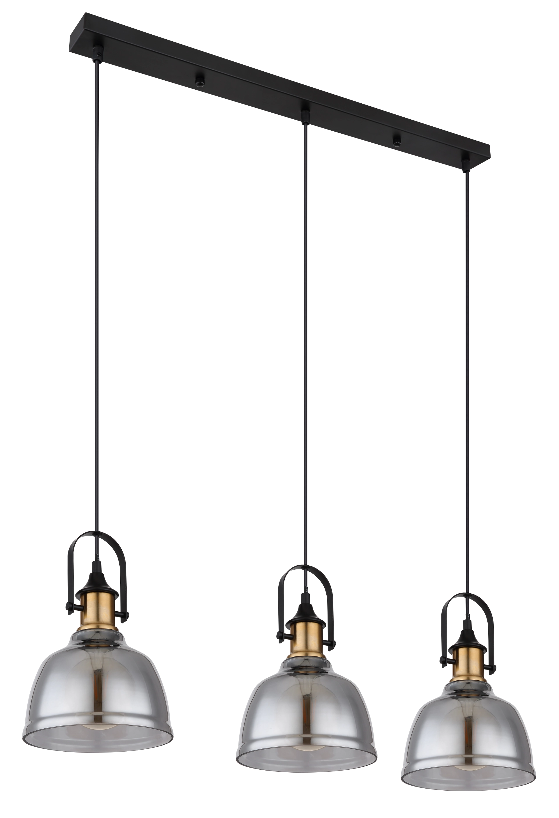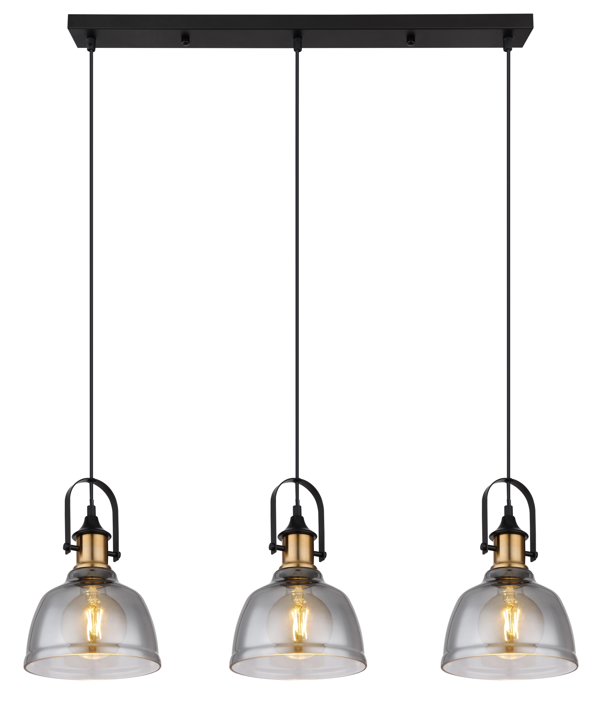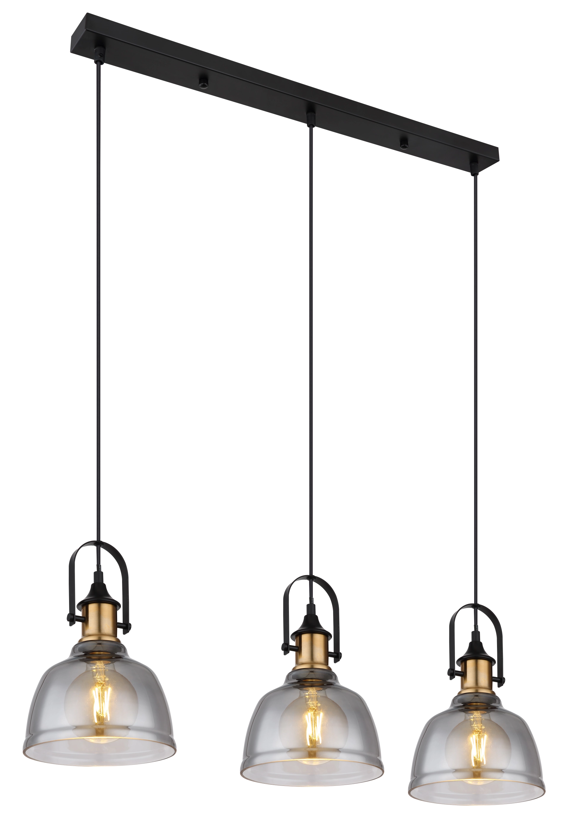 Cette lampe suspendue de la série Dorothea impressionne par son beau design en métal noir mat. La lampe suspendue de 83,5 cm de long se compose de trois cadres E27 encadrés de laiton, qui sont pourvus d’abat-jour en verre fumé magnifiquement incurvés et suspendus jusqu’à 120 cm du plafond sur des câbles noirs. Vous pouvez les équiper de lampes appropriées de votre choix, ce qui vous donne la possibilité de déterminer individuellement la couleur et la luminosité de la lumière. Avec plusieurs modèles de la même série, vous pouvez créer une ambiance élégante dans vos intérieurs.