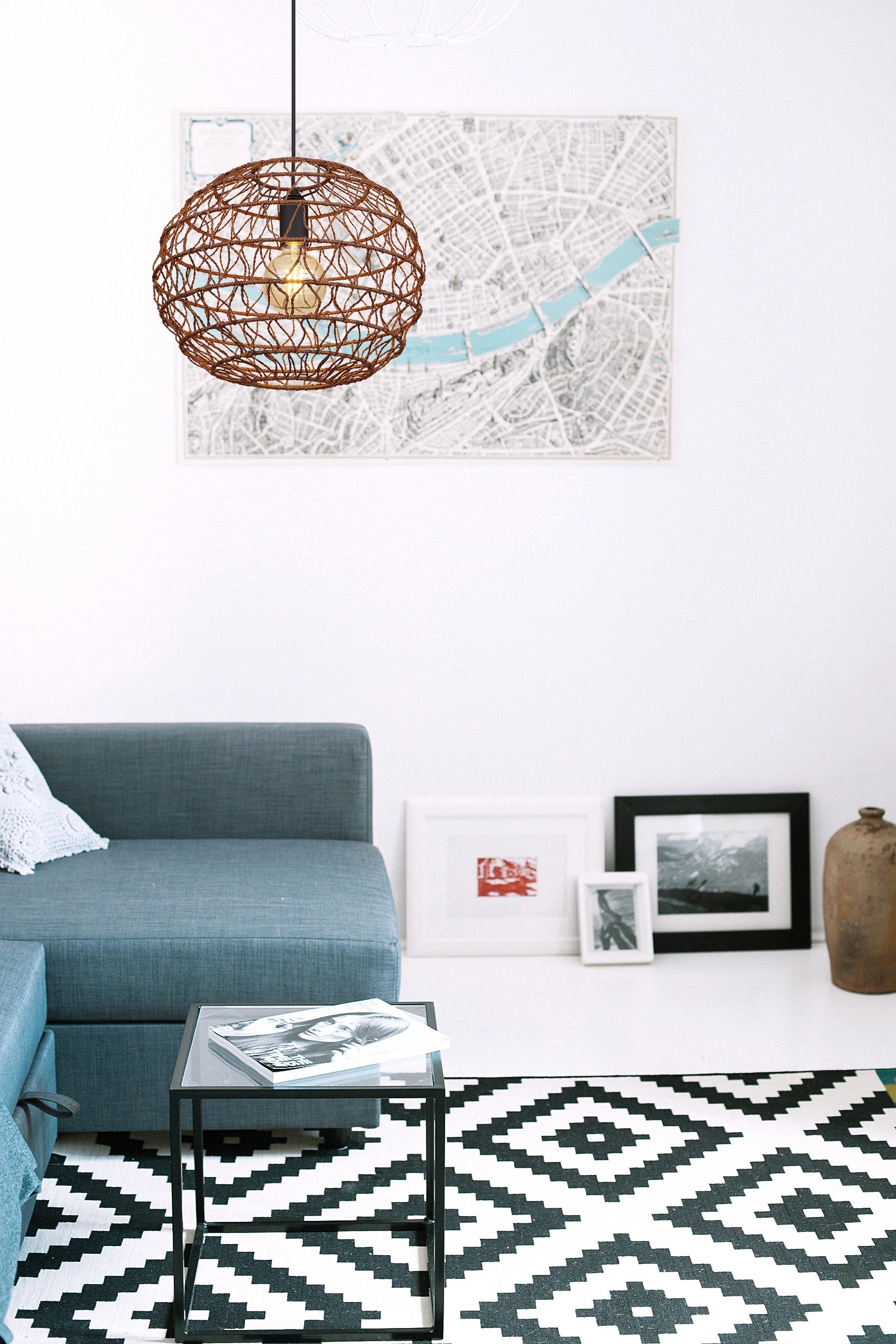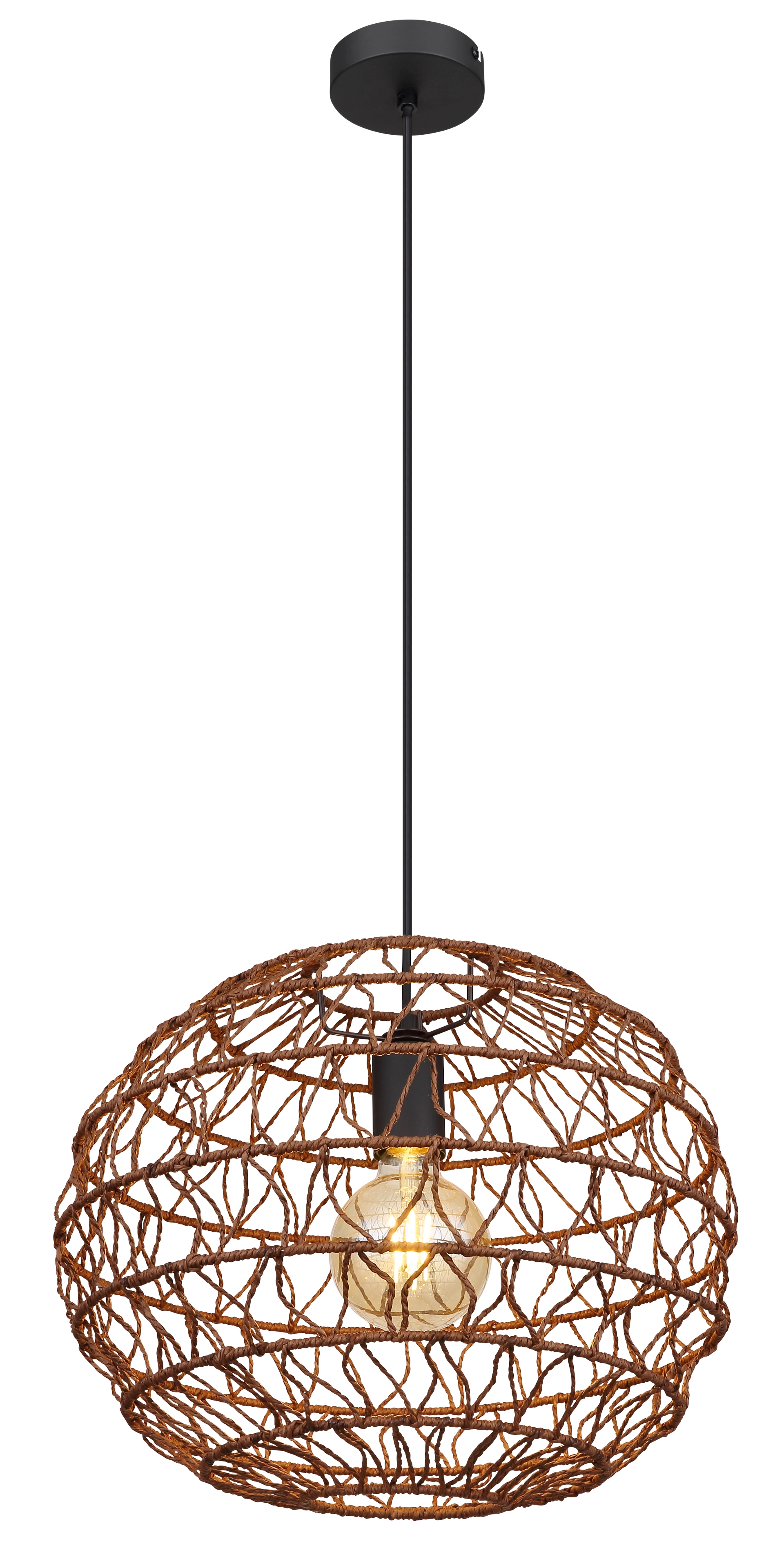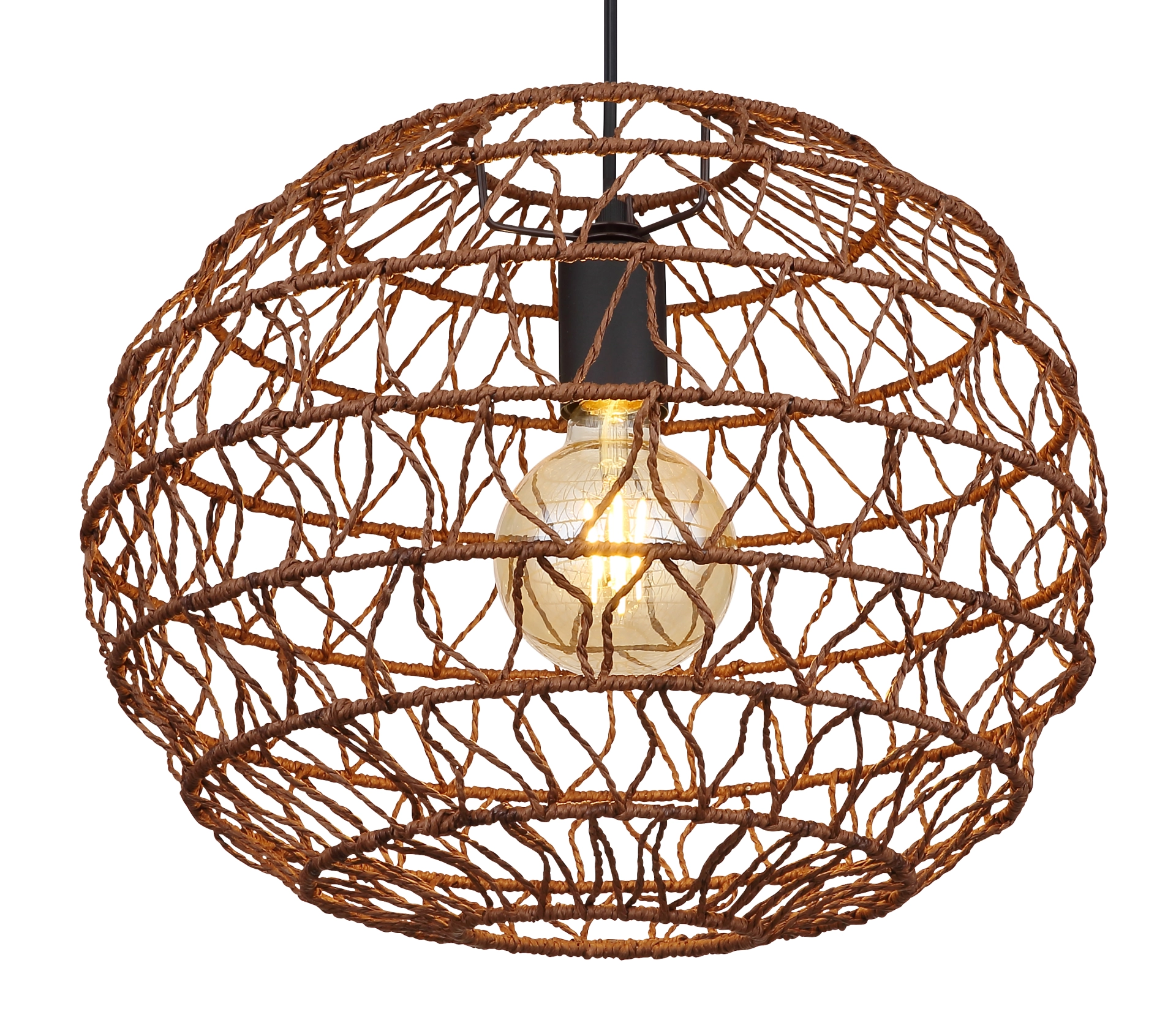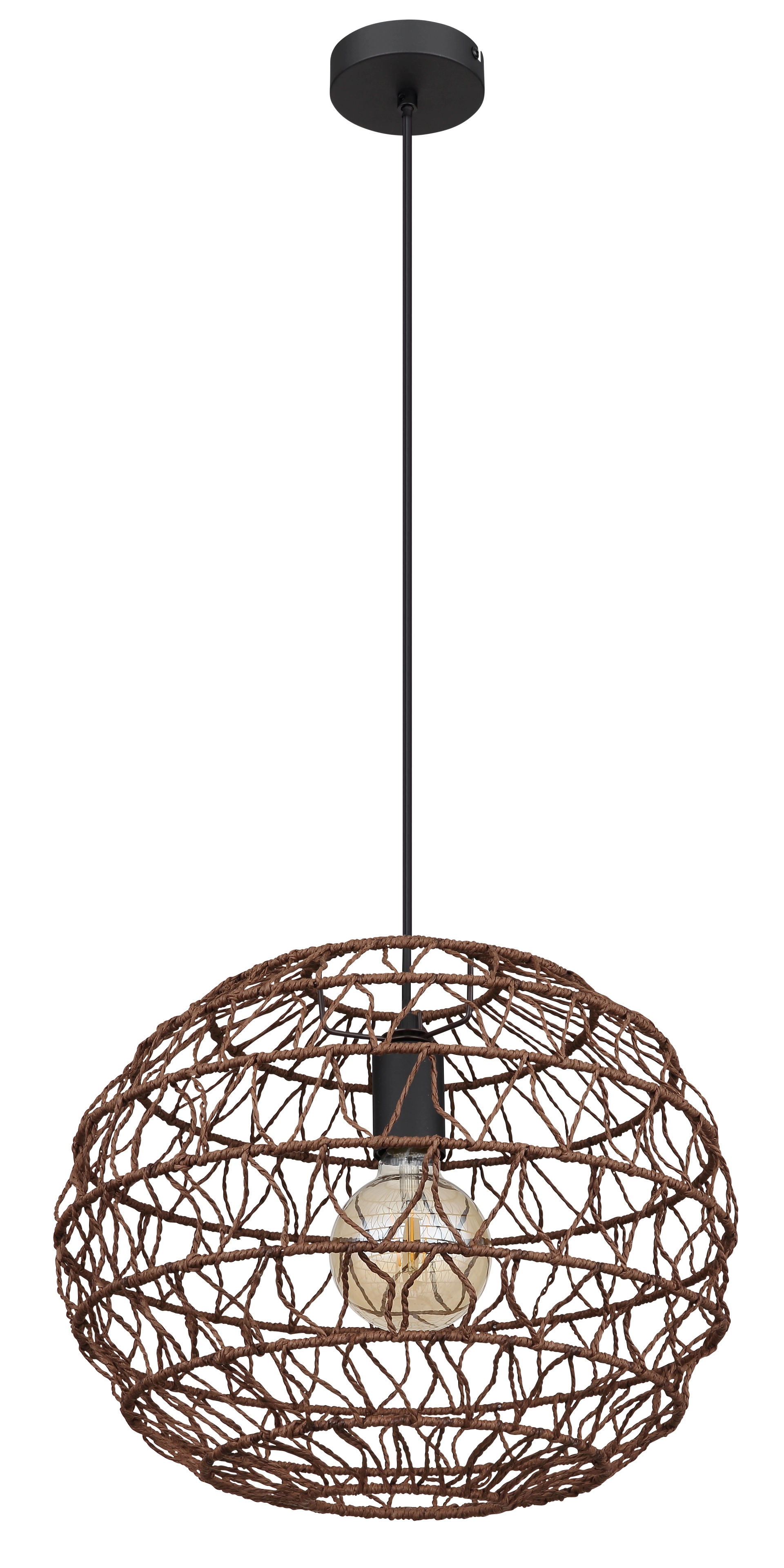 Cette suspension de 103 cm de long de la série HOUDNI est en métal noir, avec des nuances de différentes tailles et couleurs en cordes naturelles. Cette lampe artistique, qui dépasse de 120 cm dans la pièce, dispose de quatre prises E27 (avec max. 15 watts), qui permettent un libre choix des sources lumineuses. En raison de leur longévité et de leurs économies d’énergie, nous recommandons la source lumineuse LED. Cette suspension est idéale pour votre salon et votre salle à manger.