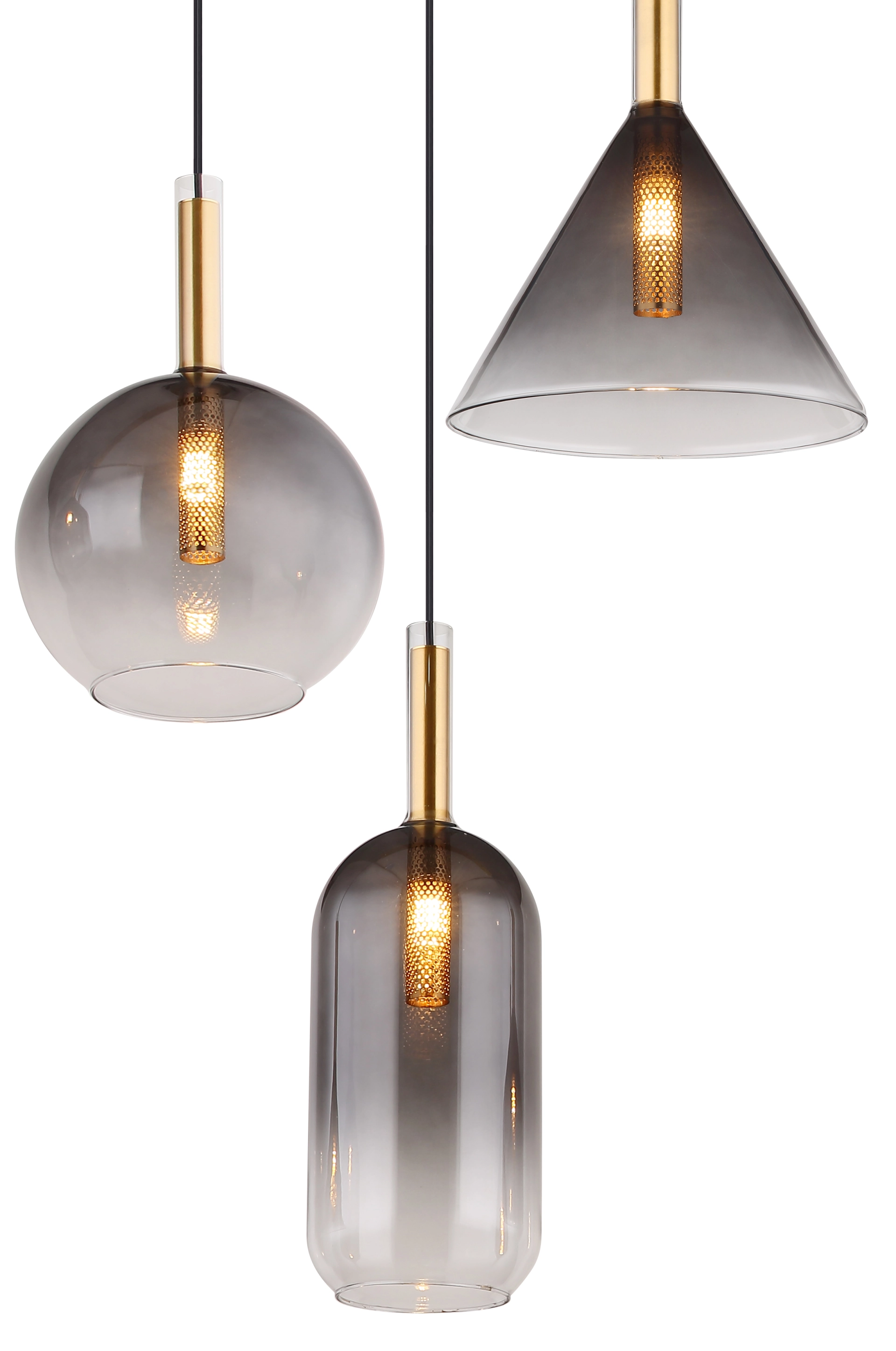 La suspension de Globo Lighting est un choix élégant et simple pour votre maison. La lampe est faite de métal de haute qualité en noir mat et en laiton, ainsi que de verre de couleur fumée, qui présente un dégradé clair. Le câble est noir et la hauteur du luminaire peut être raccourcie. Avec un diamètre de 430mm et une hauteur de 1500mm, cette suspension est un véritable accroche-regard dans n’importe quelle pièce. La lampe est équipée de trois verres de 12cm, 18cm et 20cm de diamètre. Le luminaire nécessite trois ampoules LED G9, chacune d’une puissance de 10W et d’une tension de 230V, qui ne sont pas incluses.