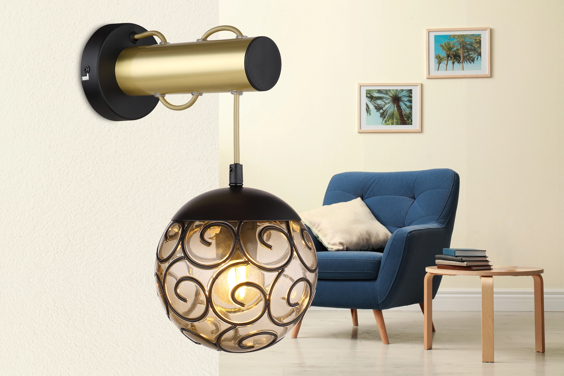 Cette belle applique murale inspire avec un grand design. Sur un support mural rond dépasse un Arg doré avec un ... En savoir plus En savoir plus