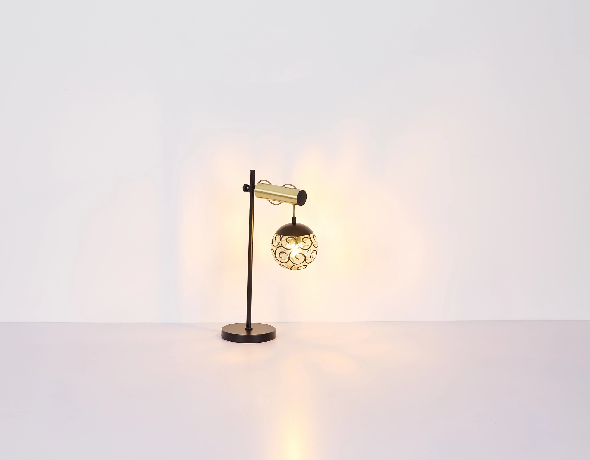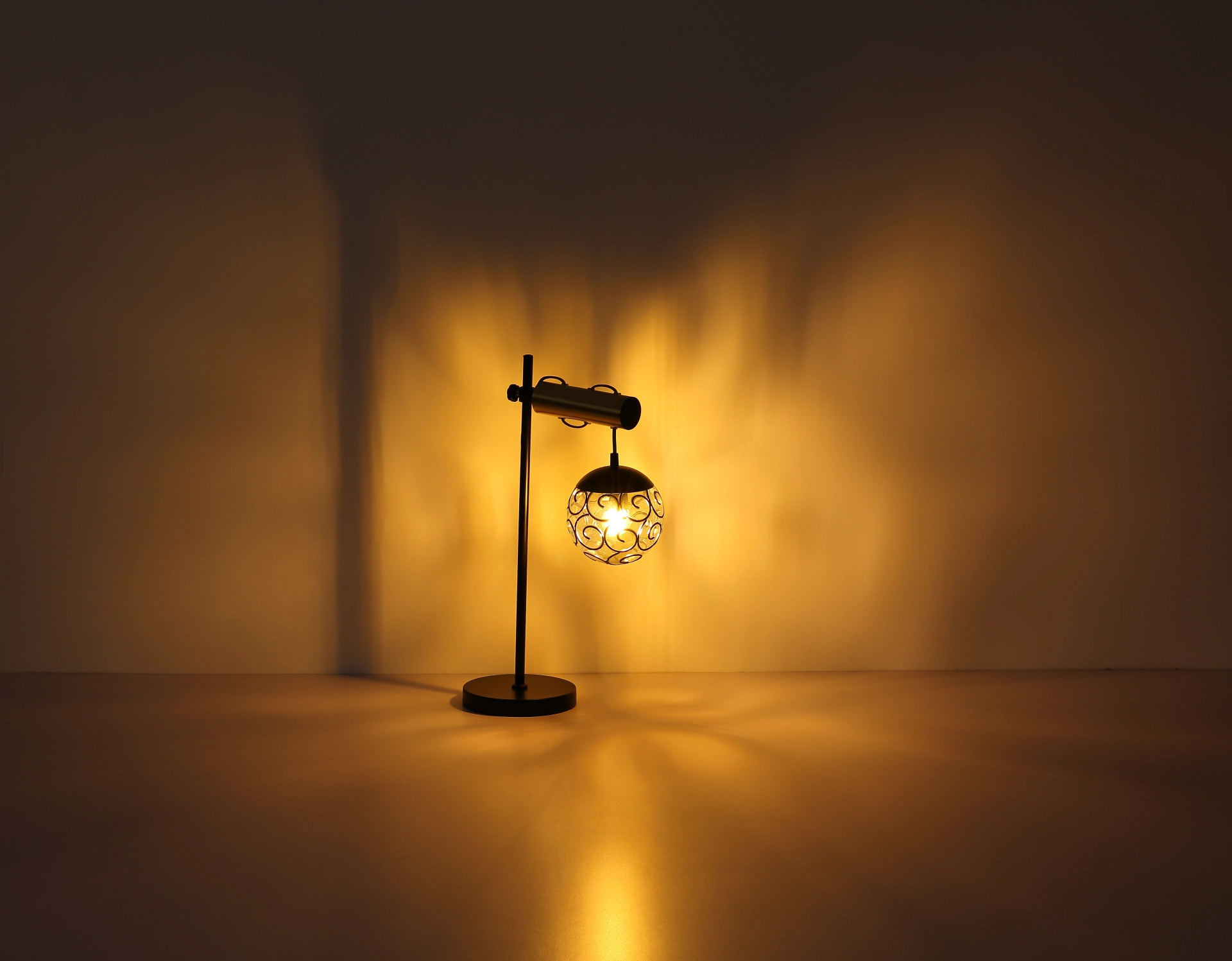 Cette belle applique murale inspire avec un grand design. Sur un support mural rond dépasse un Arg doré avec un porte-à-faux de 34,5 cm. Un câble doré se termine à une prise LED E27 et est entouré d’une teinte décorative en forme. La prise LED E27 vous donne la possibilité de décider de la couleur de la lumière et de la luminosité jusqu’à une puissance maximale de 9 watts. En raison de la longévité et des économies d’énergie, nous recommandons les ampoules LED.