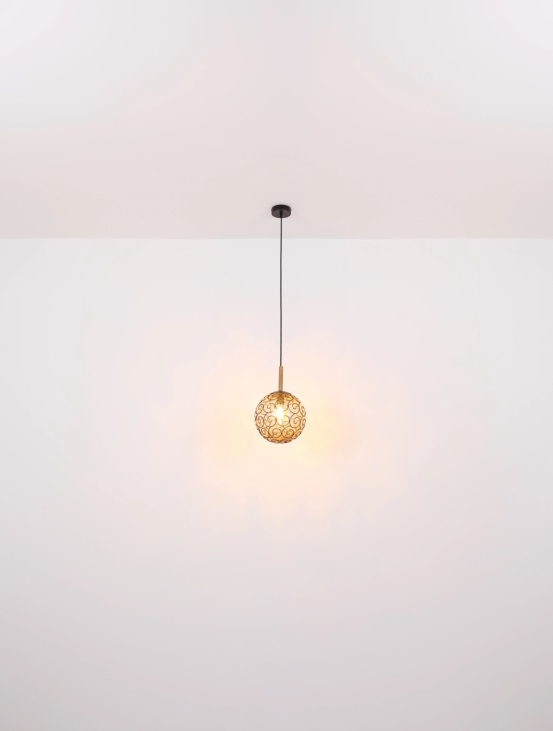 Cette applique murale extraordinaire inspire avec un grand design. Sur un support mural rond, il y a un bras avec un porte-à-faux de 24,5 cm en bois. Sur ceux-ci fonctionne un câble noir vers une prise LED E27 avec un abat-jour en verre supplémentaire magnifiquement décoratif en ambre. La prise LED E27 vous permet de décider vous-même de la couleur et de la force de la lumière jusqu’à une puissance maximale de 99 watts.< / p>