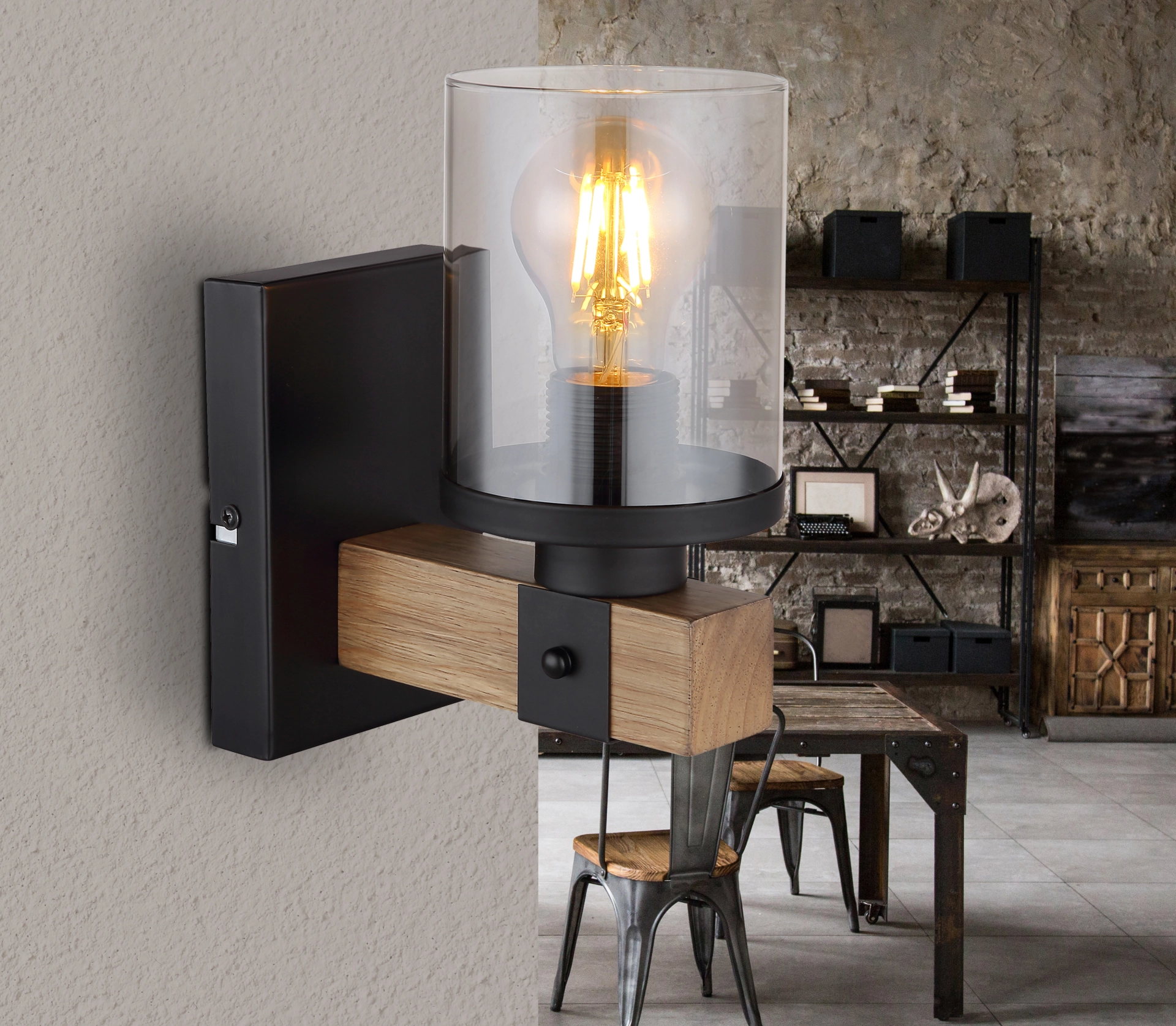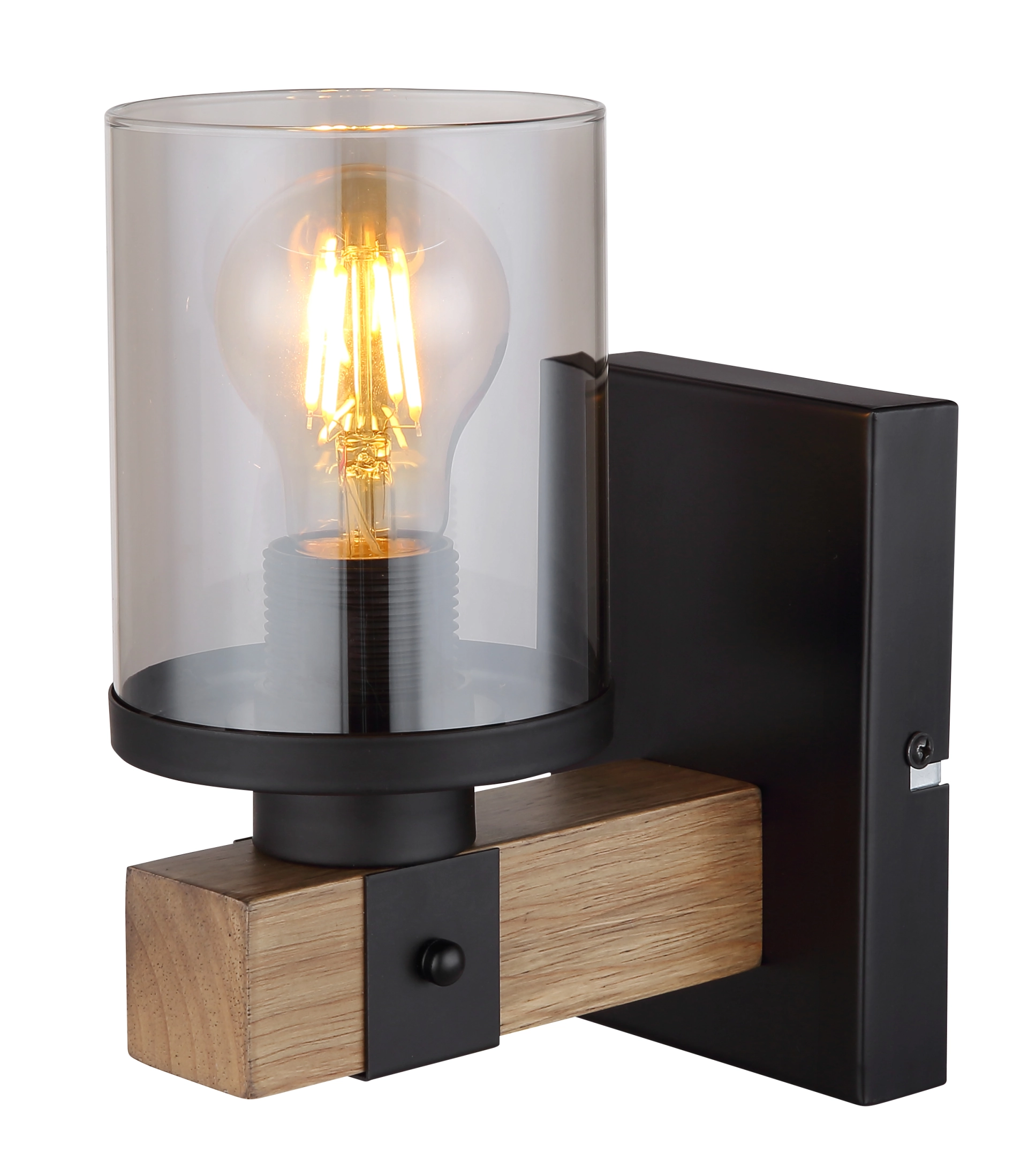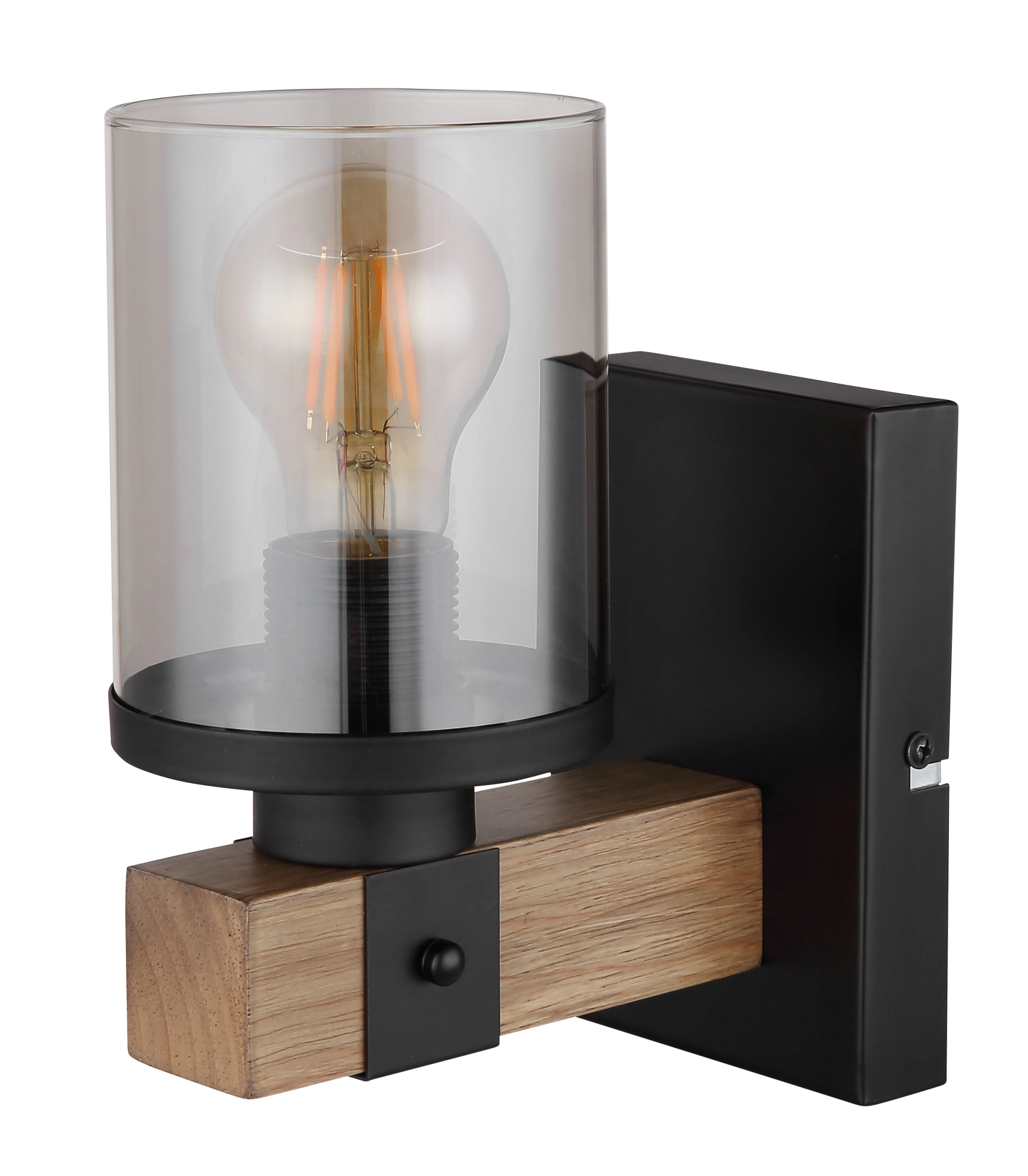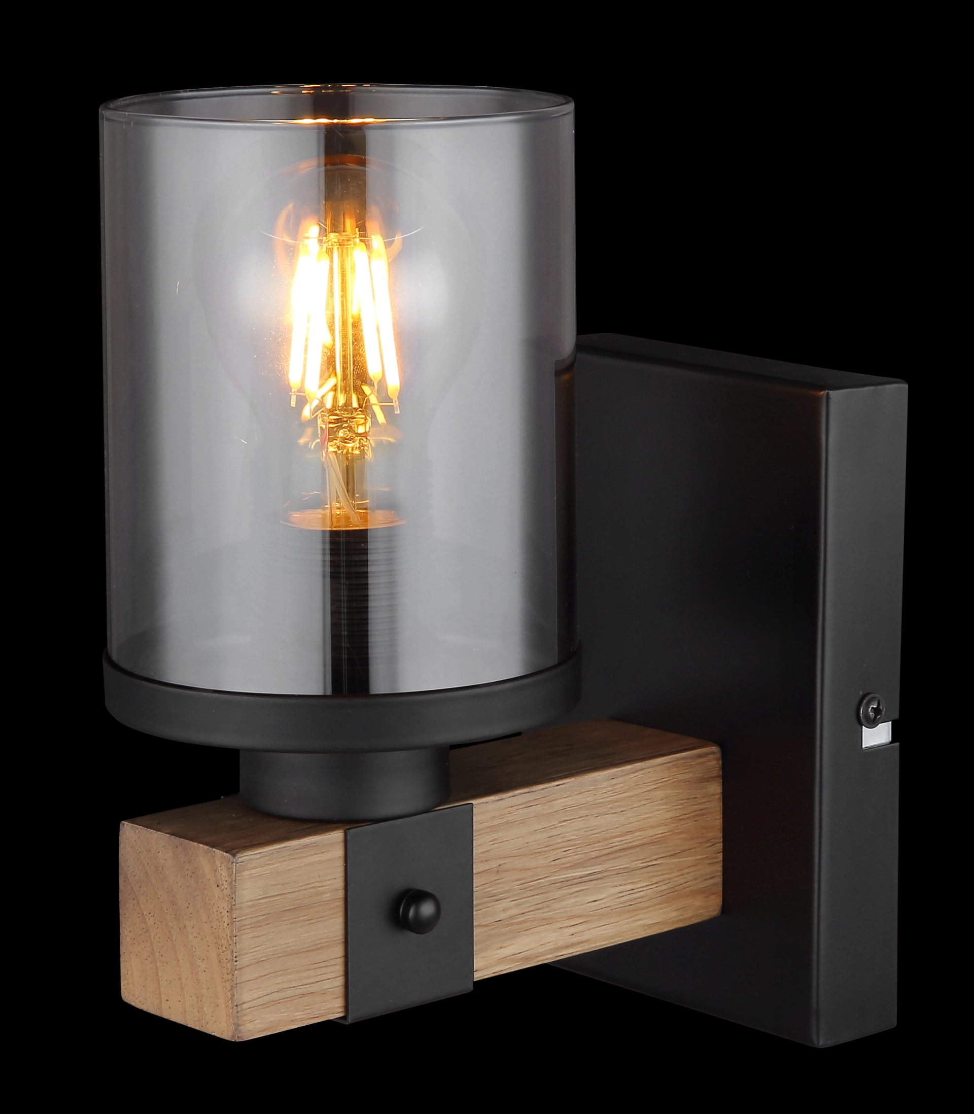 Cette belle applique murale inspire avec un grand design en bois et en métal noir. Un tronc en bois de 17 cm de long dépasse d’un support mural carré noir mat, sur lequel une douille E27 est recouverte d’un abat-jour cylindrique en verre couleur fumée. La prise E27 vous permet de déterminer votre propre couleur de lumière et luminosité jusqu’à une puissance maximale de 60 watts.