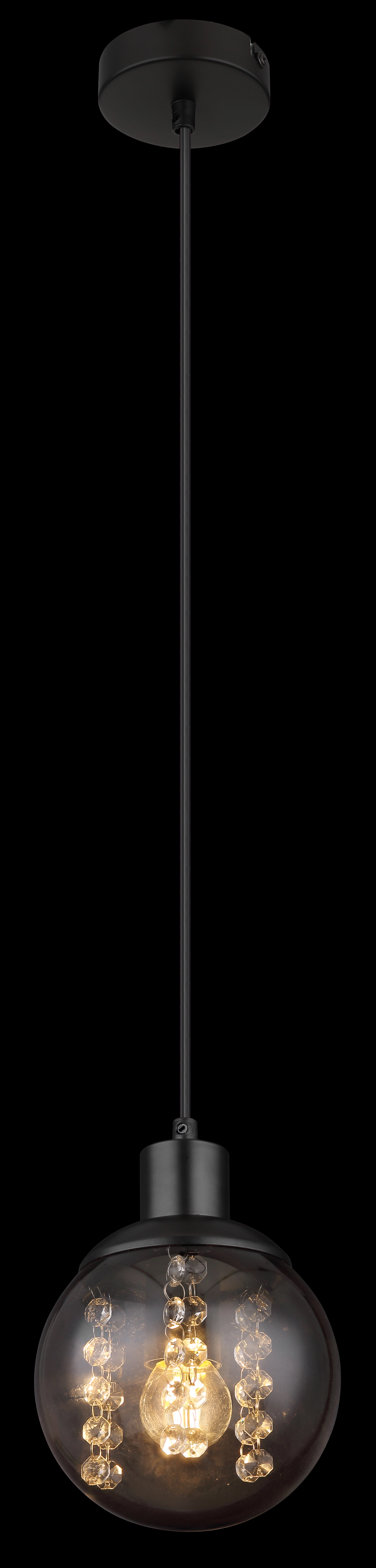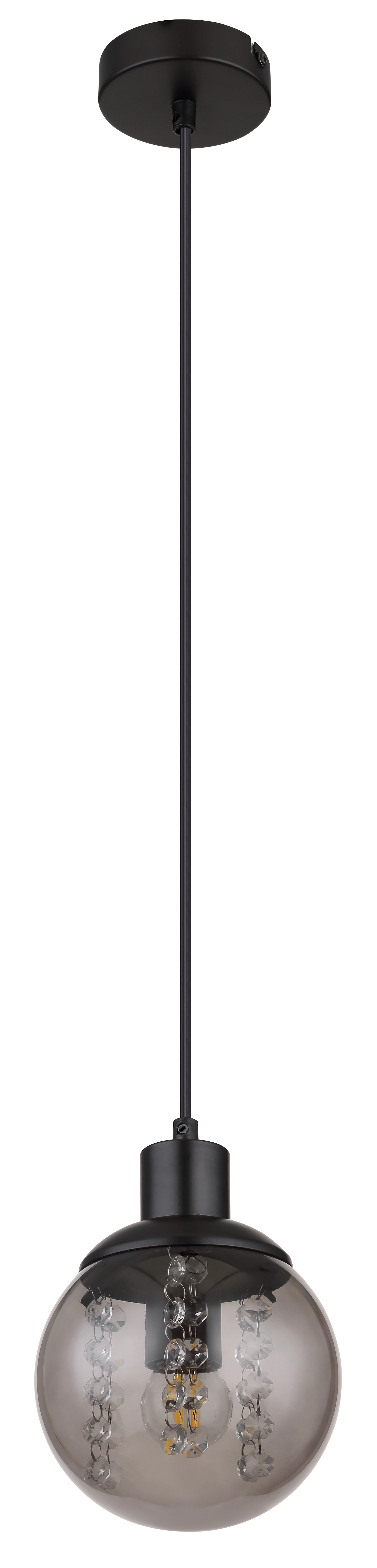 Cette beauté noire RICHARD impressionne par son design élégant. Le verre fumé (Ø 15cm) avec des décorations en cristaux de plastique est suspendu à 150cm dans la pièce. La prise E27 vous permet de déterminer la couleur et la luminosité de la lumière jusqu’à une puissance maximale de 25 watts. Cette suspension est idéale pour les chambres et les salons. D’autres modèles de cette série complètent votre espace de vie.
