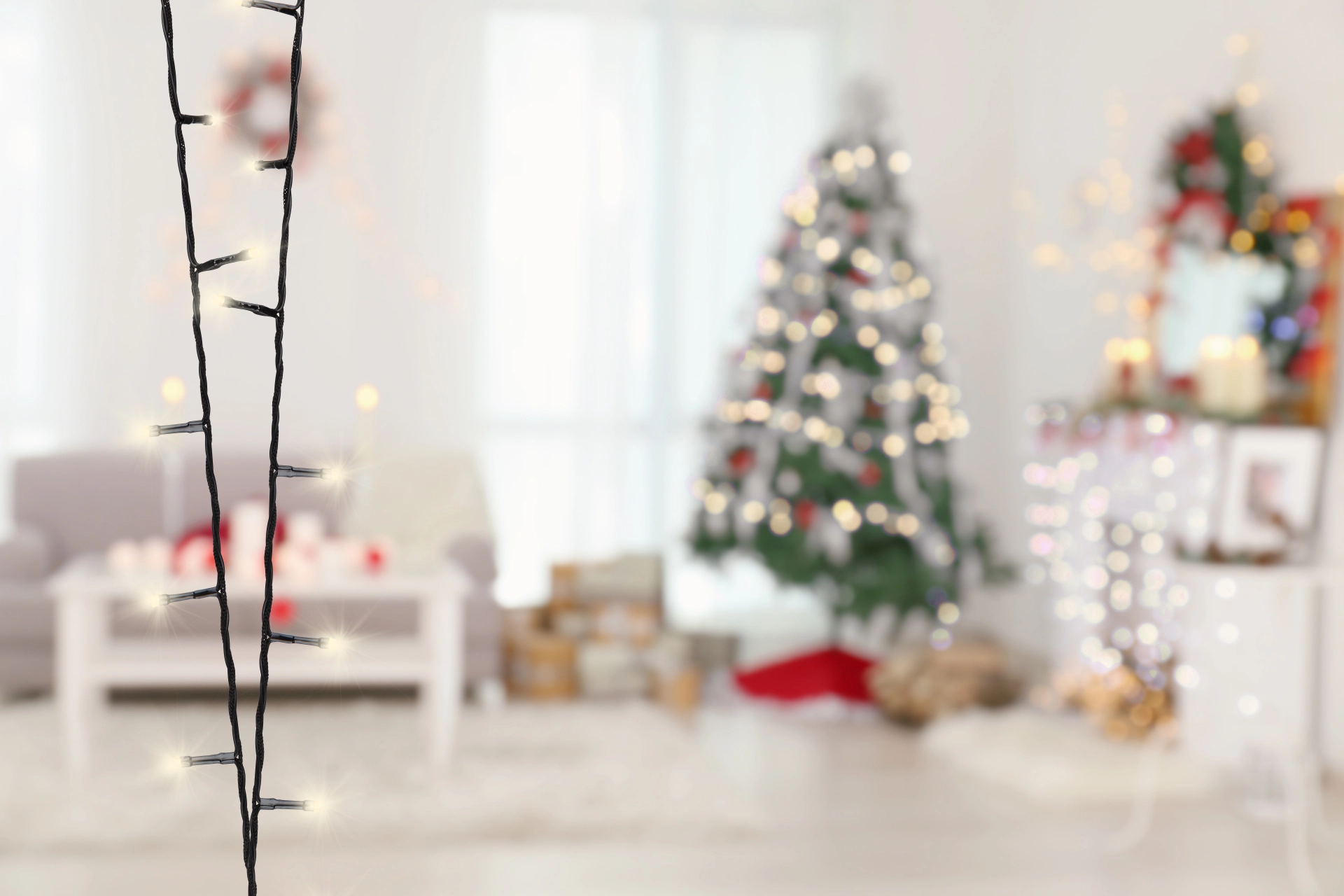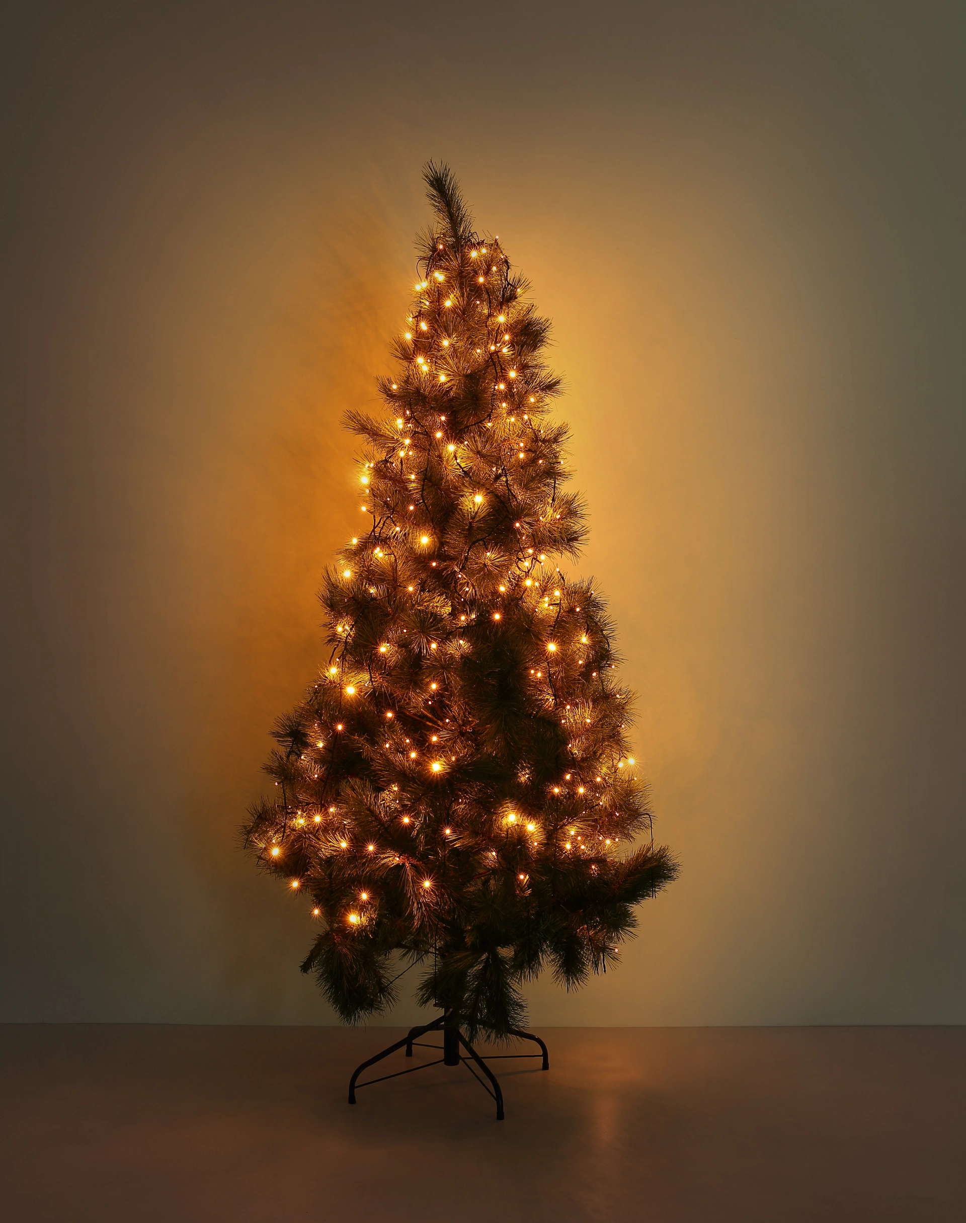 Der konische Christbaum ist mit einer stilvollen schwarzen Metall-Lichterkette mit 480 LEDs ausgestattet. Die Außenleuchten verfügen über einen Korpus aus schwarzem Metall und einen Schirm aus klarem Kunststoff. Durch den praktischen Druckschalter lässt sich die Lichterkette einfach bedienen. Im Lieferumfang enthalten ist ein Adapter mit 0,06W Leistung und einer warmen Farbtemperatur von 1800K. Das Set umfasst zudem ein Gestell sowie 10 Befestigungsnägel für die einfache Montage. Die IP44-Zertifizierung gewährleistet die Sicherheit der Lichterkette sowohl im Innen- als auch im Außenbereich. Mit diesem hochwertigen Weihnachtsbaum und der eleganten Lichterkette schaffen Sie eine festliche Stimmung und verschönern Ihr Zuhause zur Weihnachtszeit..