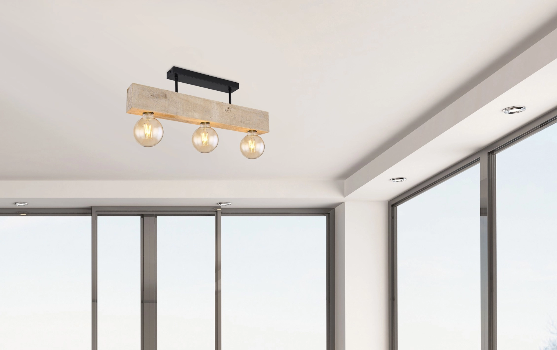 Die schlichte Deckenlampe Adalie lässt sich mit mehreren Wohnstilen perfekt kombinieren. Sie besteht aus einem 60 cm langen Holzbalken, der ... Mehr erfahren Mehr erfahren