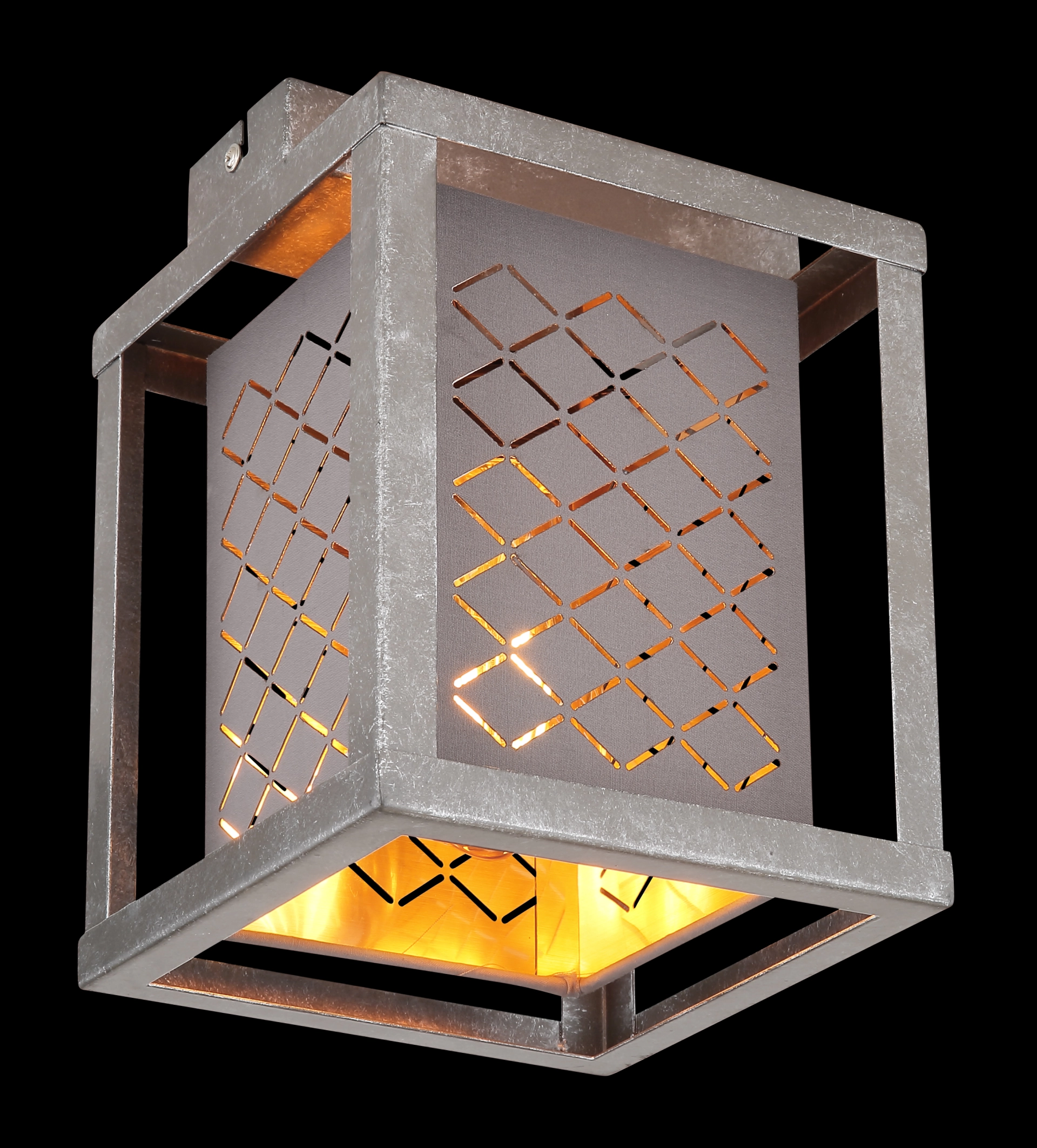 Diese Deckenlampe aus der Thomas-Serie (17x17 cm) ist eine wunderbare Ergänzung für Ihre Innenräume. Die 22,5 cm große Deckenleuchte besteht aus einem silberfarbenen Metallrahmen, der mit einem außen grau und innen golden getönten, quaderförmigen Textilschirm mit linienförmigen Stanzungen versehen ist. Diesen können Sie mit einem E27-Leuchtmittel Ihrer Wahl bestücken, wodurch Sie die Möglichkeit haben, Lichtfarbe und Helligkeit individuell zu bestimmen. Durch weitere Modelle der gleichen Serie können Sie in Ihren vier Wänden für ein stilvolles Ambiente sorgen.