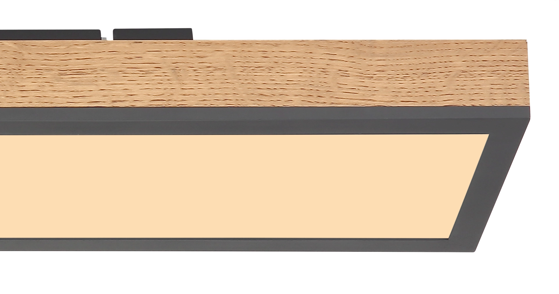 Diese schöne Deckenleuchte der Serie Doro fällt durch Ihre schöne Holzoptik und der schlichten Form auf. Die 60cm lange rechteckige Deckenleuchte besitzt ein integriertes LED-Leuchtmittel welches angenehm warmweißes Licht (3000 Kelvin) scheint. Mit der Farbkombination aus Graphit und Holzoptik macht Sie ein schönes Gesamtbild.