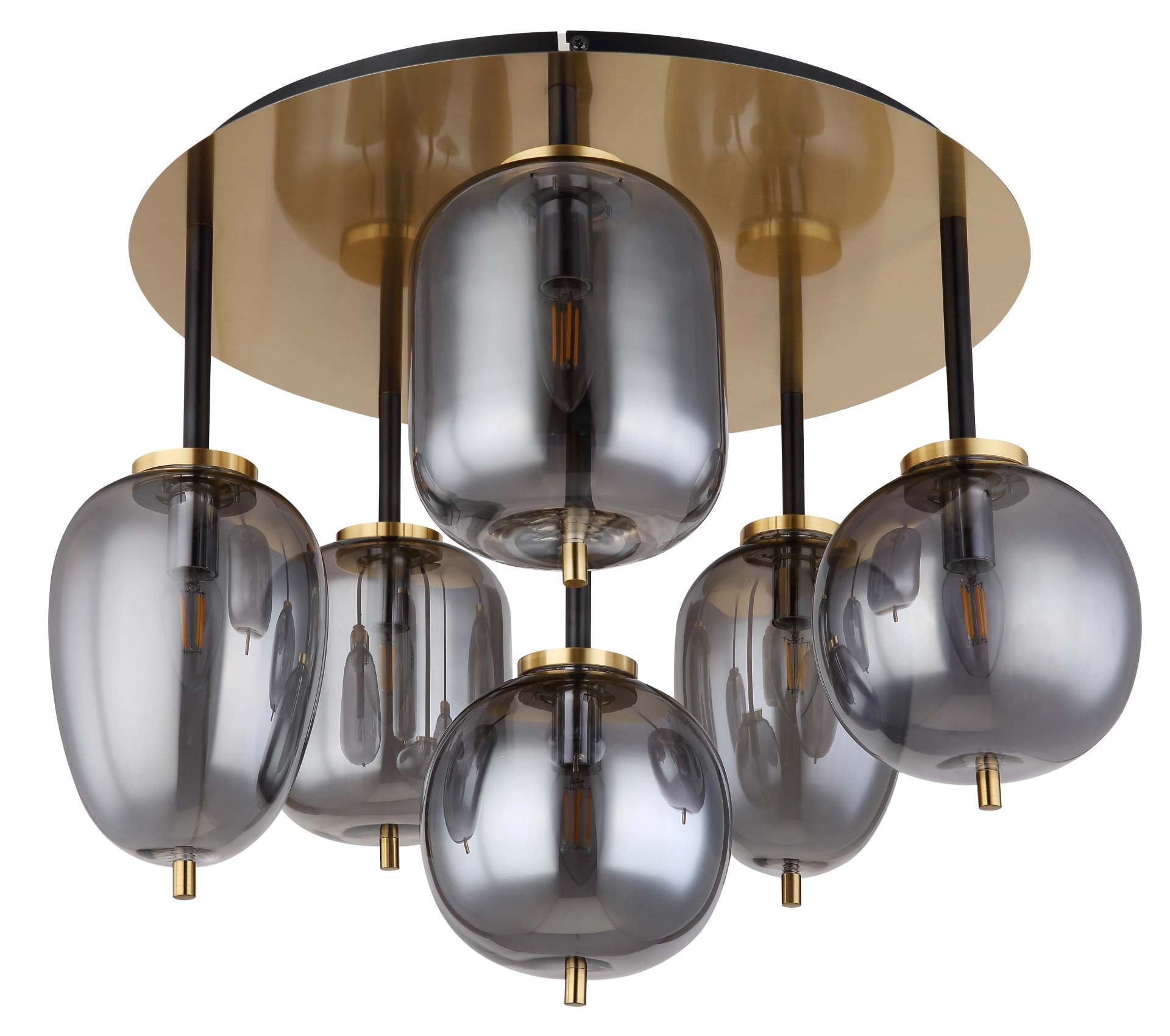 Diese tolle Deckenleuchte der Blacky Serie begeistert durch Ihr schönes Design. Sechs E14 Fassungen befinden sich unter jeweils einem rauchigen ... Mehr erfahren Mehr erfahren