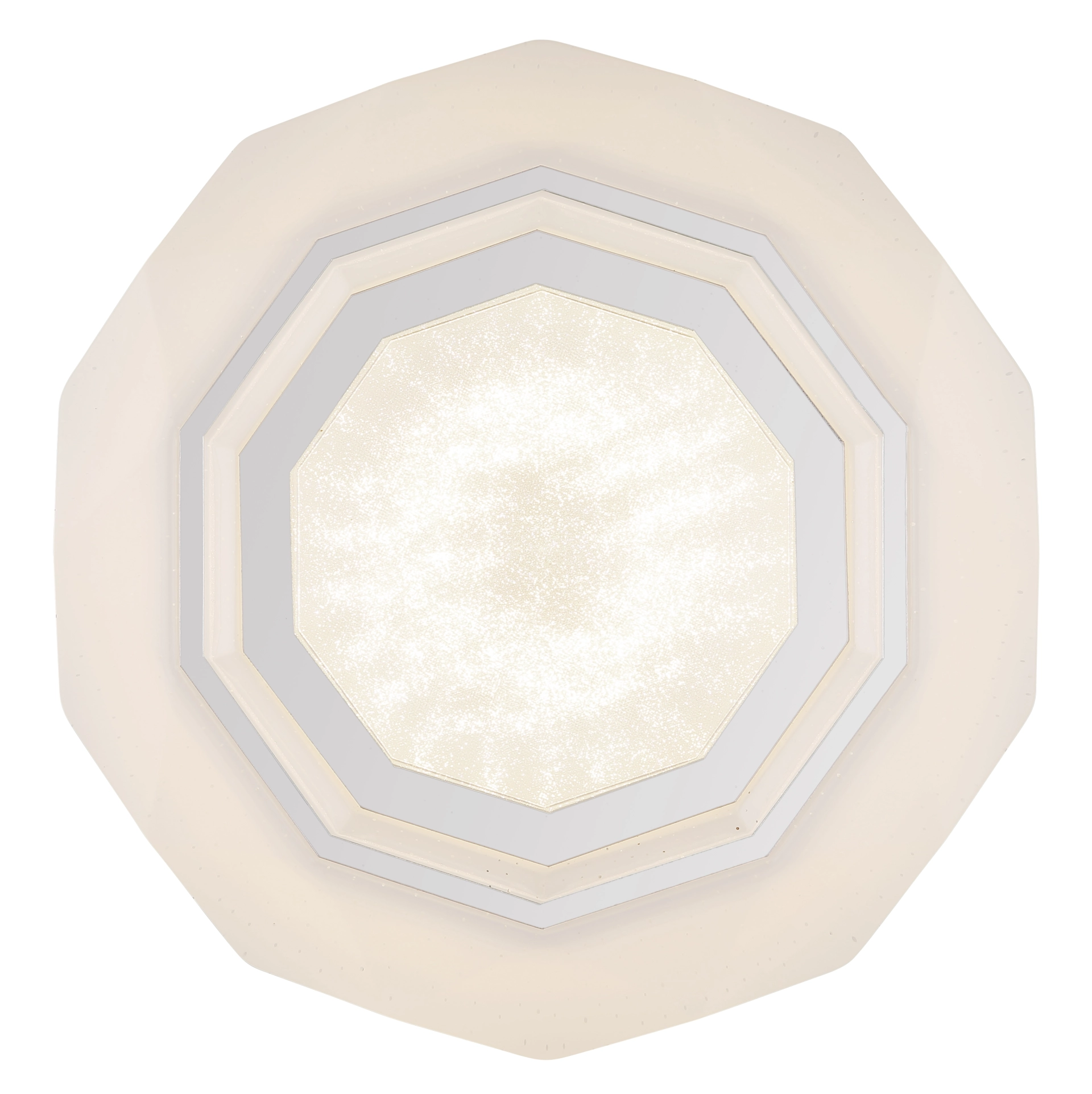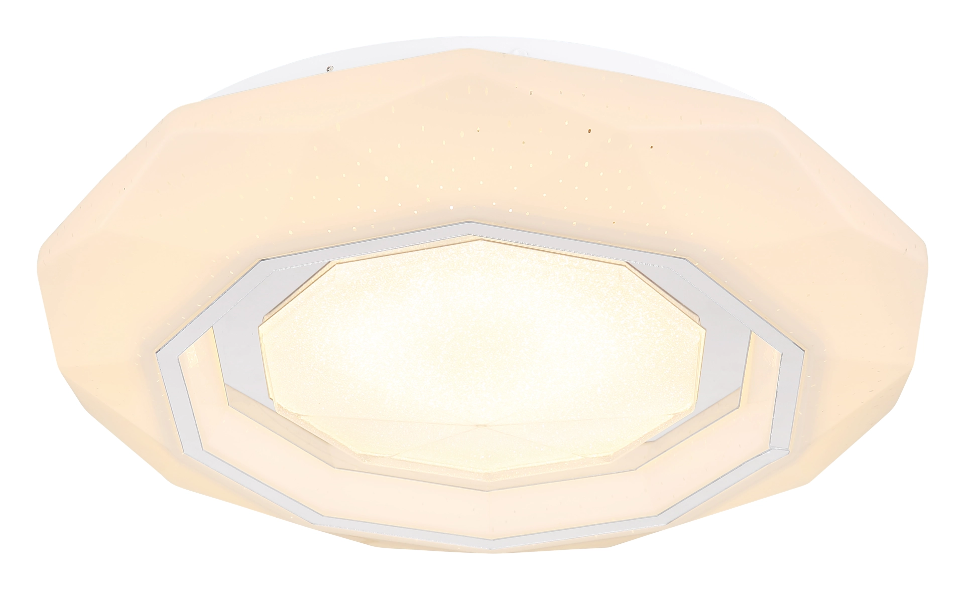 Unsere Deckenleuchte besteht aus weiß matt lackiertem Metall, opalem Acryl und transparentem Kunststoff mit Kristalleffekt, die das Licht wunderschön reflektieren. Der Chromring verleiht der Leuchte einen Hauch von Raffinesse. Die Leuchte ist dimmbar und kann über mehrere Stufen über den Wandschalter gesteuert werden. Die Farben sind fixierbar und die Leuchte verfügt über eine Memoryfunktion. Ein Nachtlicht ist ebenfalls vorhanden. Die Fernbedienung ist im Lieferumfang enthalten. Sie benötigen 2 AAA-Batterien für die Fernbedienung. Die Deckenleuchte hat einen Durchmesser von 400 mm und eine Höhe von 85 mm. Sie wird mit einer LED mit einer Leistung von 24W und einer Spannung von 230V betrieben. Die Lichtquelle hat eine Helligkeit von 200-2300lm Source und eine Ausgangshelligkeit von 150-1600lm Output. Die Farbtemperatur kann zwischen 2700K und 6500K eingestellt werden. Unsere Deckenleuchte ist ein echter Hingucker und wird in jedem Raum zum Highlight. Mit ihrer einzigartigen Kombination aus modernem Design und hochwertigen Materialien wird sie garantiert zum Blickfang in Ihrem Zuhause.