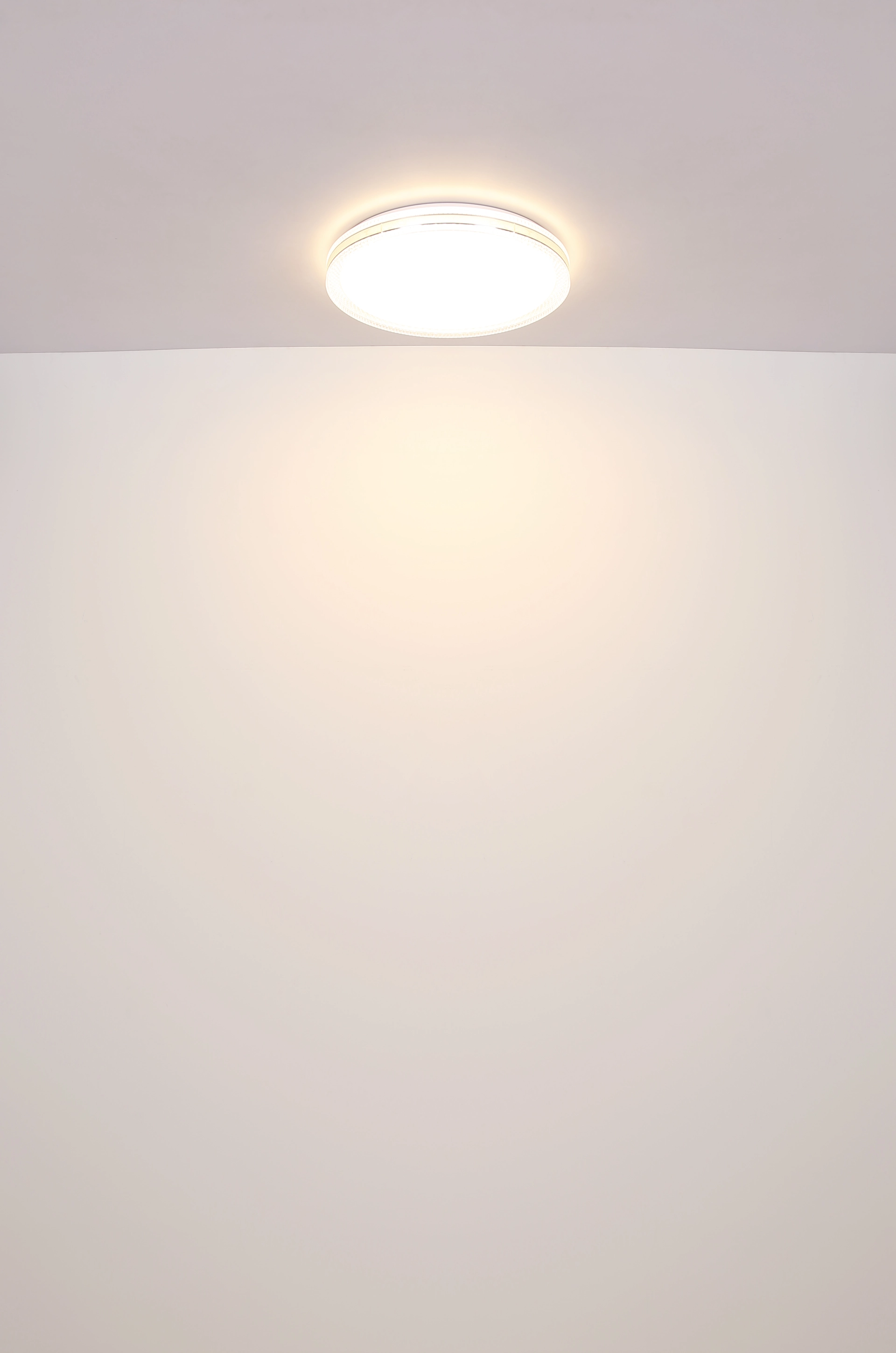 Die Deckenleuchte hat einen Durchmesser von 490 mm und eine Höhe von 70 mm. Sie besteht aus weißem Metall und ... Mehr erfahren Mehr erfahren