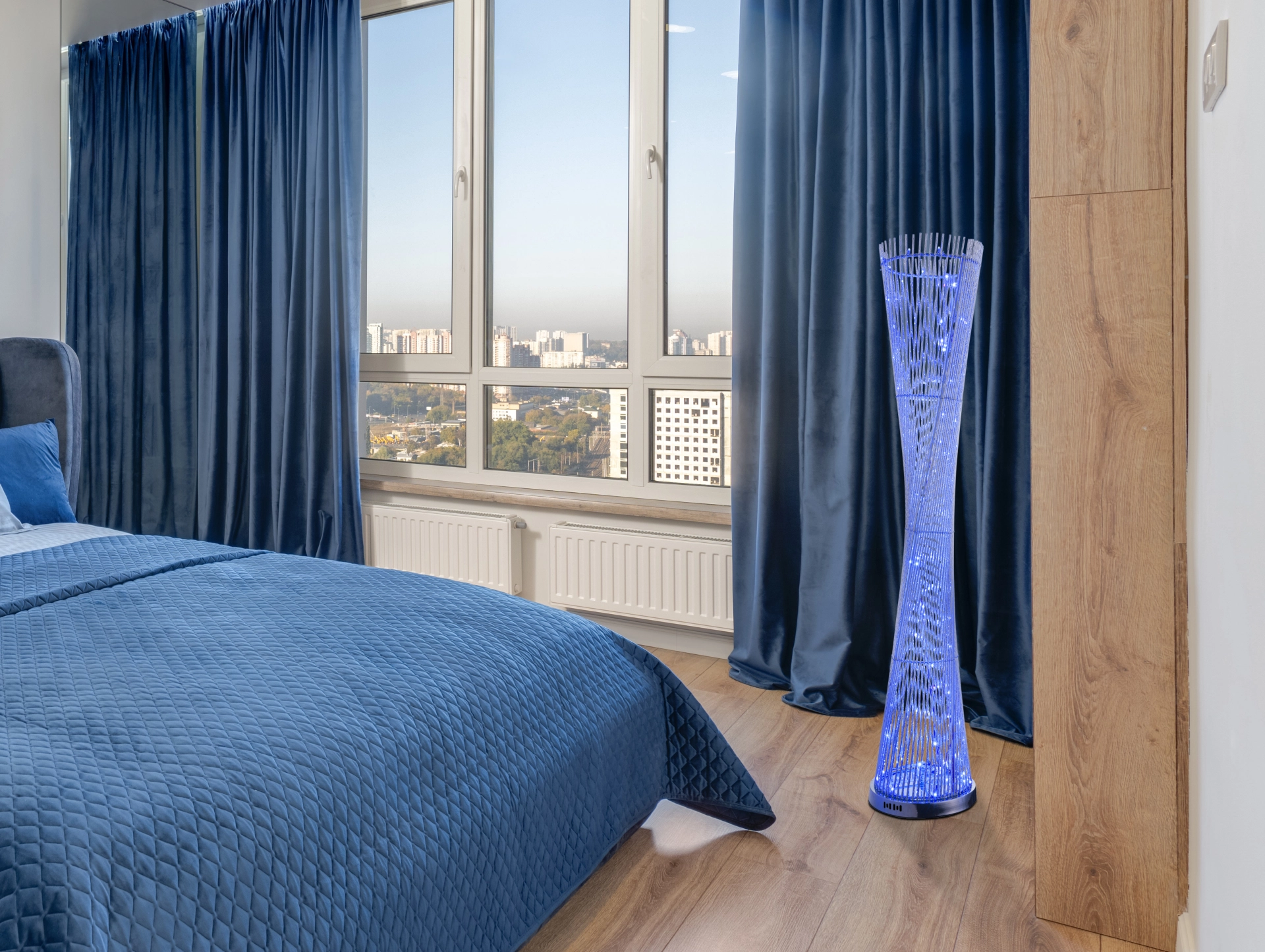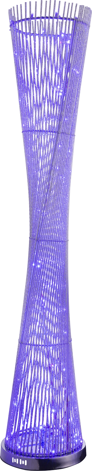 Diese außergewöhnliche Stehlampe, der Serie Anton, zeichnet sich durch ihr schönes Design aus. Der runde Sockel hat einen silber-metallischen Farbton und die darauf montierten Stäbe sind gedreht. Dieses tolle Modell ist mit einer Größe von 1,43 Meter und einem RGB-Farbwechsler ausgestattet. Die Lampe kann mittels On-Off-Schalter gesteuert werden und verfügt über eine Lichtstärke von 720 Lumen. Vorteilhaft sind die lange Lebensdauer von 80000 Stunden und die hohe Energieeffizienz dieser Lampe.