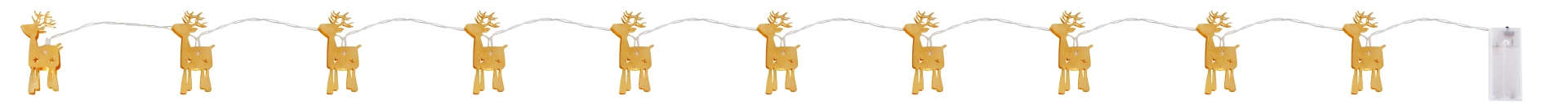Diese Lichterkette ist ein richtiger Hingucker. Auf dem 165 cm langen Kunststoffkabel sind 10 Rentiere jeweils im Abstand von 15 cm angebracht. Das 30cm lange Zuleitungskabel ermöglicht es, die Position der Dekorationsleuchte variabel zu gestalten. Diese LED Lichterkette (exkl. Batterien) mit Schalter verleiht Ihrem Zuhause ein angenehmes Flair zur Weihnachtszeit.