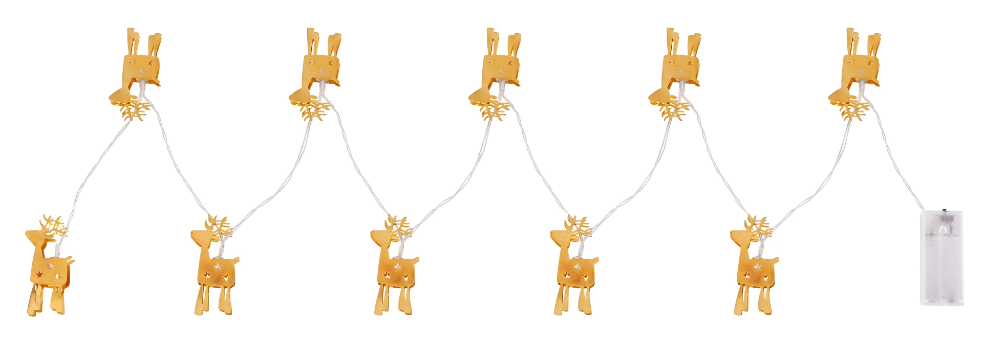Diese Lichterkette ist ein richtiger Hingucker. Auf dem 165 cm langen Kunststoffkabel sind 10 Rentiere jeweils im Abstand von 15 ... Mehr erfahren Mehr erfahren