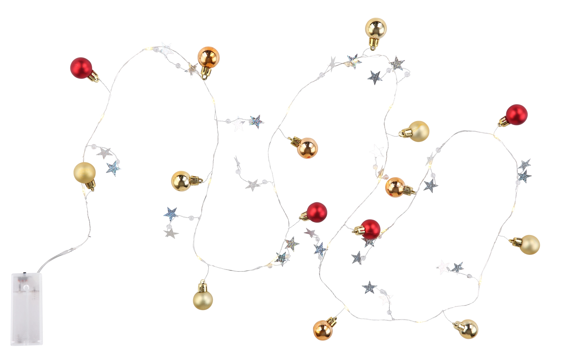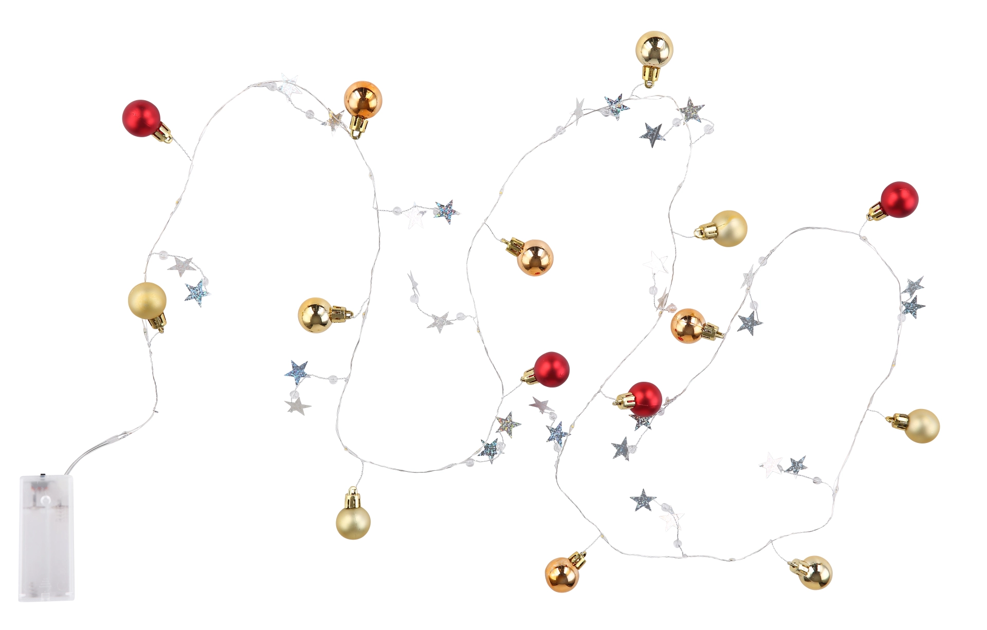 Diese Lichterkette ist ein richtiger Hingucker. Auf dem 220 cm langen Kunststoffkabel sind 20 kleine LEDs jeweils im Abstand von 10 cm angebracht. Das 30cm lange Zuleitungskabel ermöglicht es, die Position der Dekorationsleuchte variabel zu gestalten. Diese LED Lichterkette (exkl. Batterien) mit Schalter verleiht Ihrem Zuhause ein angenehmes Flair zur Weihnachtszeit.