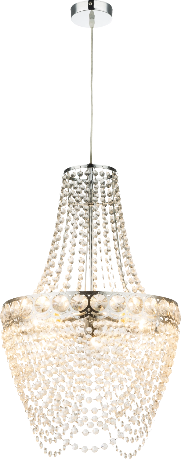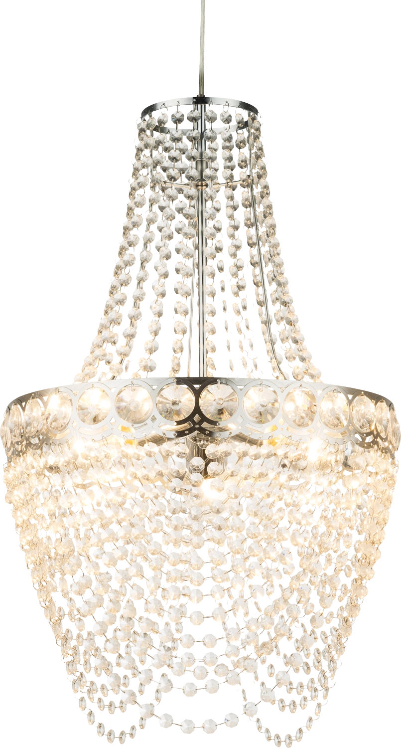 Dieser schöne Luster in Chrom, der Serie Stromboli, zeichnet sich durch sein auffälliges Design, sowie durch seine hochwertige Verarbeitung aus. Bei dieser Hängelampe wurden klare Acrylkristalle gewählt. Mit einem Durchmesser von 38 cm, ist diese imposante Hängelampe der Hingucker in jedem Raum. Ausgestattet mit drei E27 Fassungen, wird Ihnen die Möglichkeit geboten, beliebige Leuchtmittel (max. 60W) einzusetzen. Wir empfehlen Ihnen LED-Leuchtmittel, aufgrund ihrer Langlebigkeit und Stromersparnis.