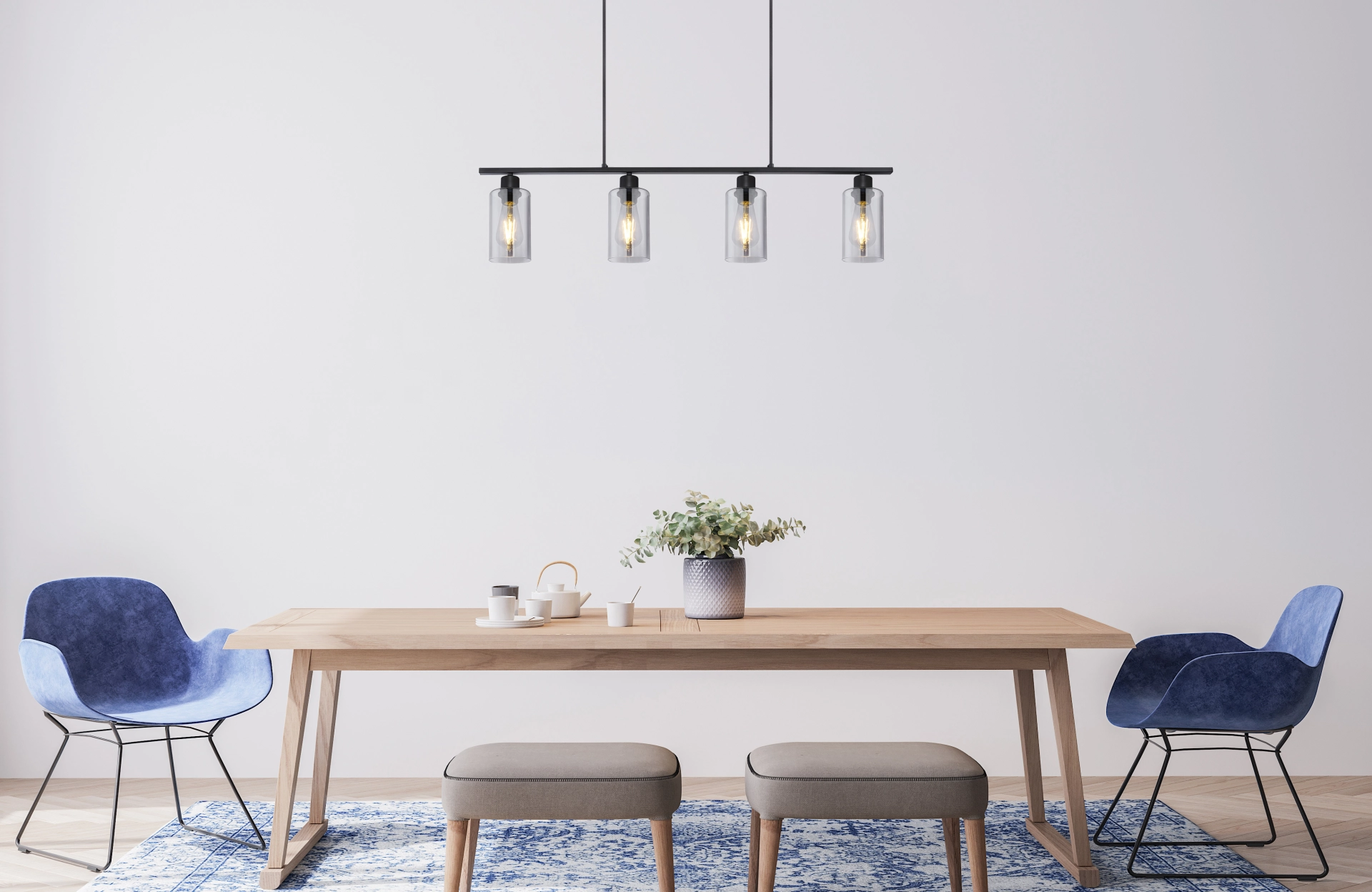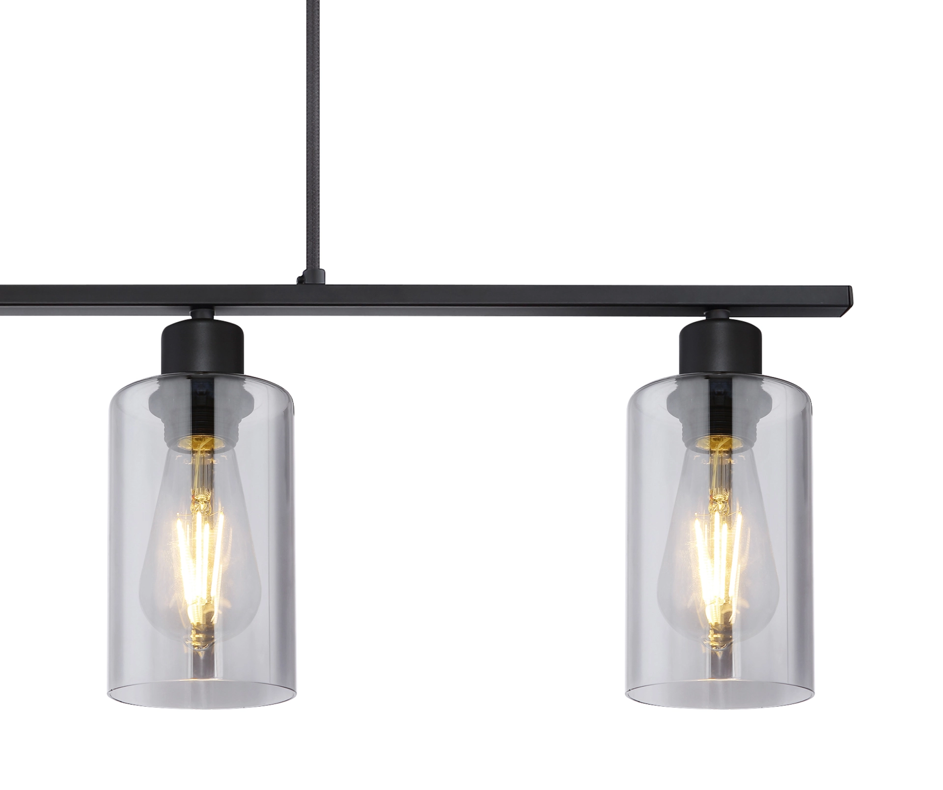 Die Hängelampe der Hadera-Serie aus schwarz-mattem Metall eignet sich dank ihrer länglichen Form wunderbar, um über einen Esstisch montiert zu ... Mehr erfahren Mehr erfahren