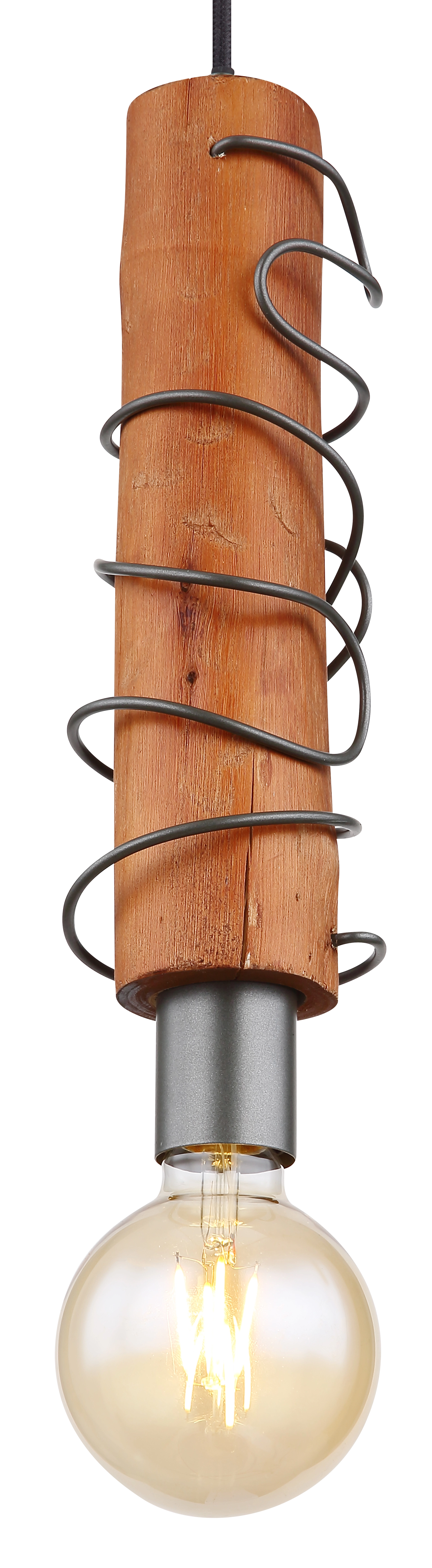 Diese rustikale Hängelampe aus der Alice-Serie (ø 10 cm) ergänzt Ihre Innenräume um eine elegante Lichtquelle. Sie besteht aus einem braunen Holzzylinder, der mit schwarzem Metall umwickelt ist und an einem schwarzen Kabel hängt. Dieser kann mit einem E27-Leuchtmittel Ihrer Wahl bestückt werden, wodurch Sie die Möglichkeit haben, Lichtfarbe und Helligkeit individuell zu bestimmen. Außerdem kann die Höhe der Hängeleuchte au bis zu 120 cm angepasst werden. Durch weitere Modelle der gleichen Serie können Sie das Gesamtbild in Ihren vier Wänden komplettieren.