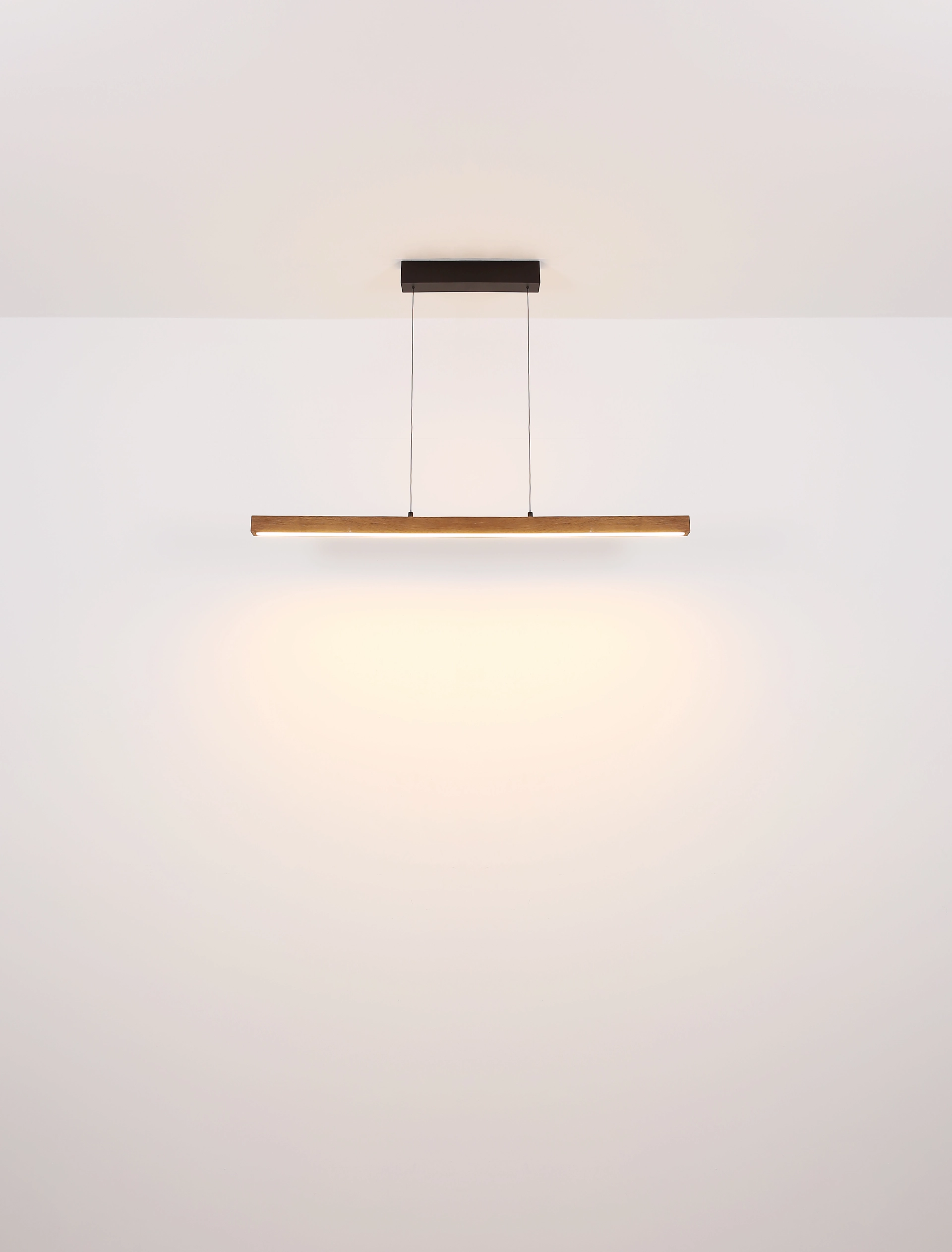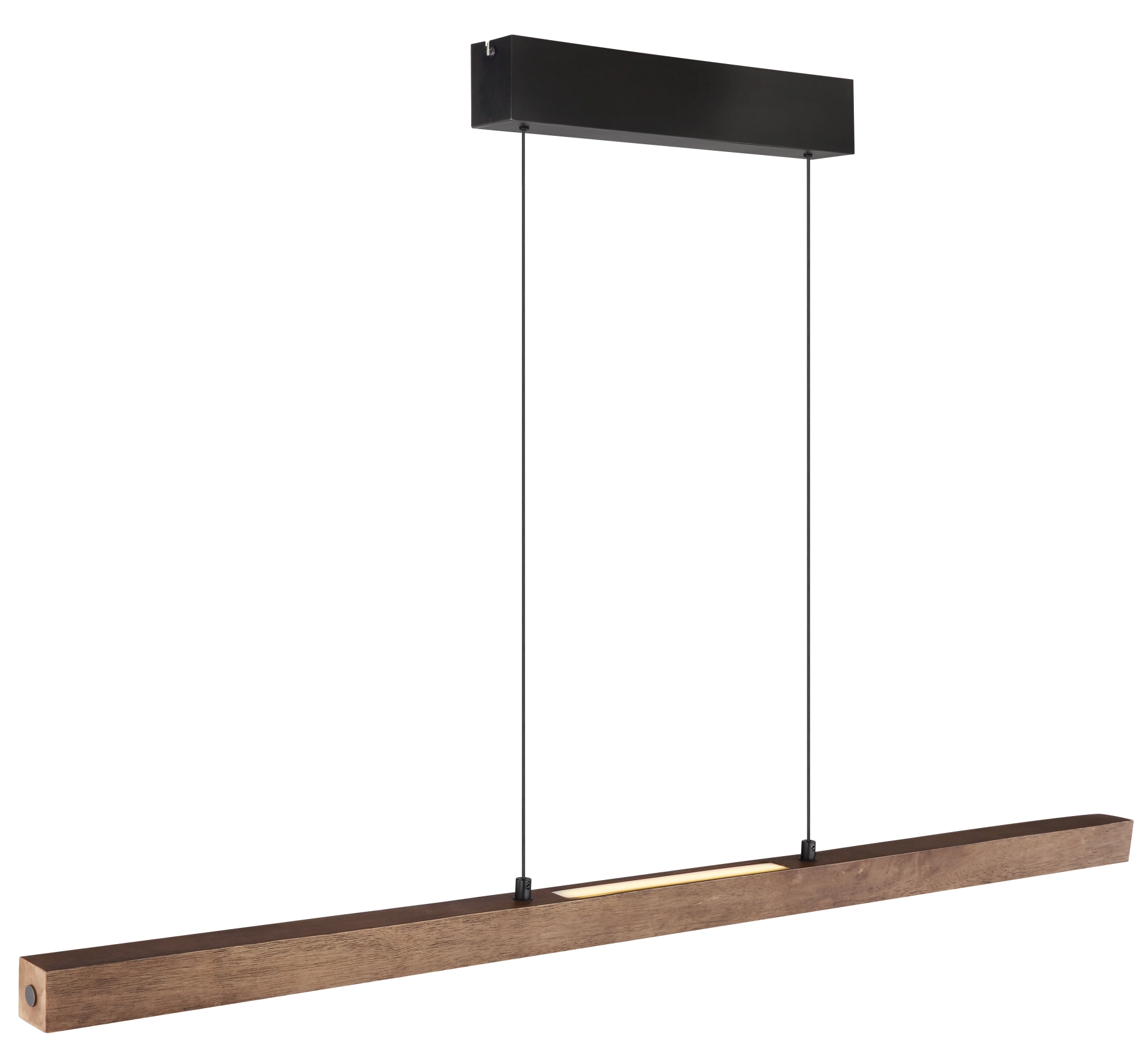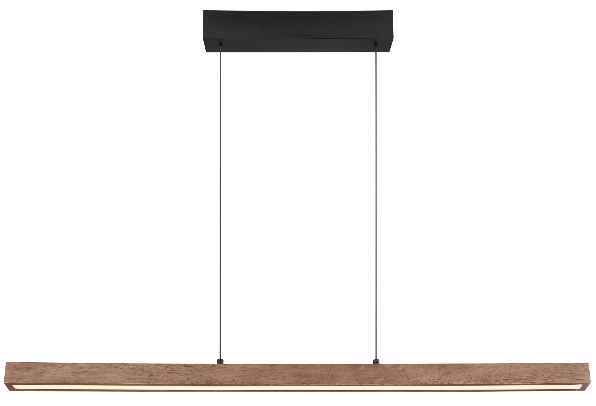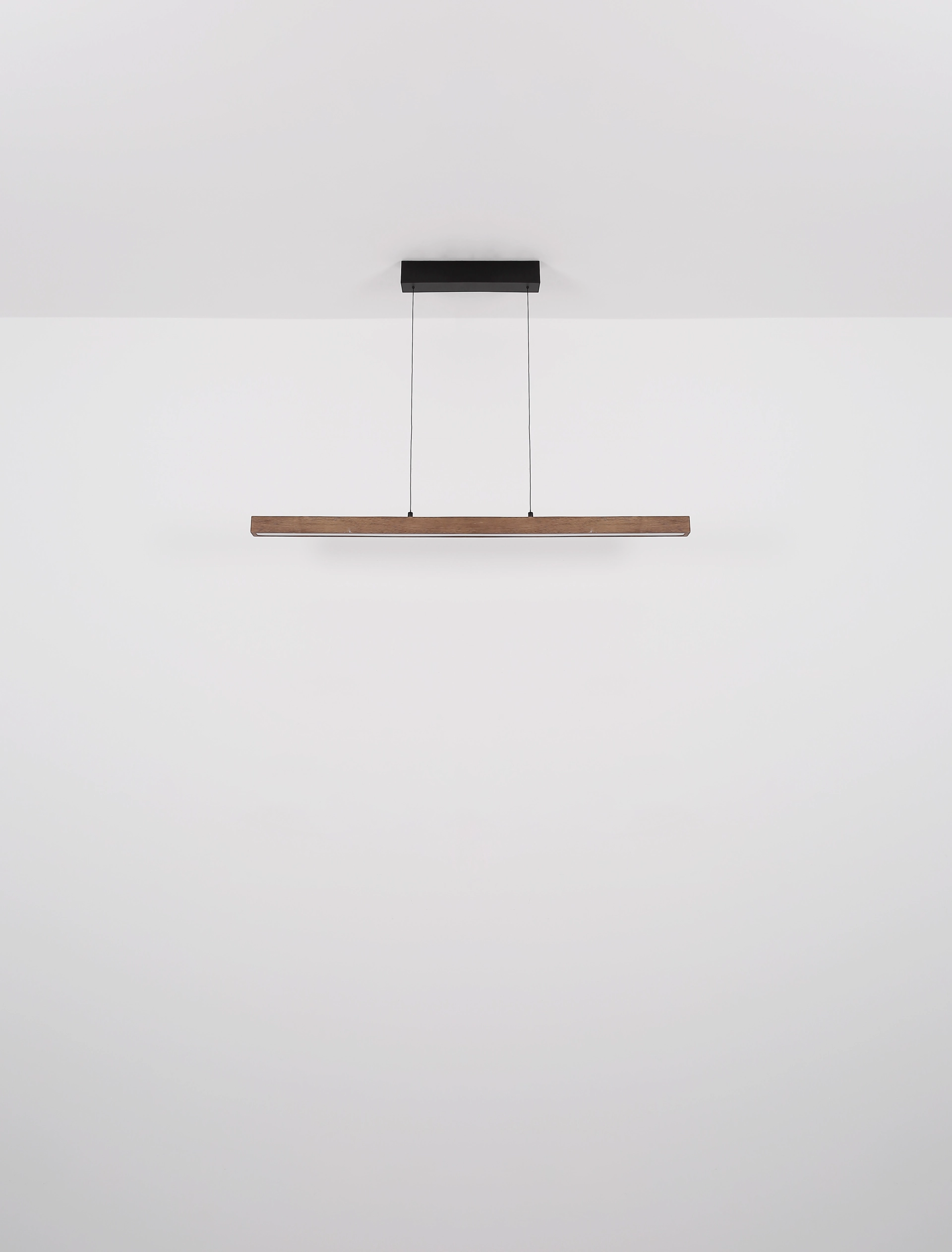 Die langlebige und stilvolle Hängeleuchte in schlanker, länglicher Form kombiniert schwarzes Metall mit dunkelbraunem Holz und opalem Kunststoff für ein ... Mehr erfahren Mehr erfahren