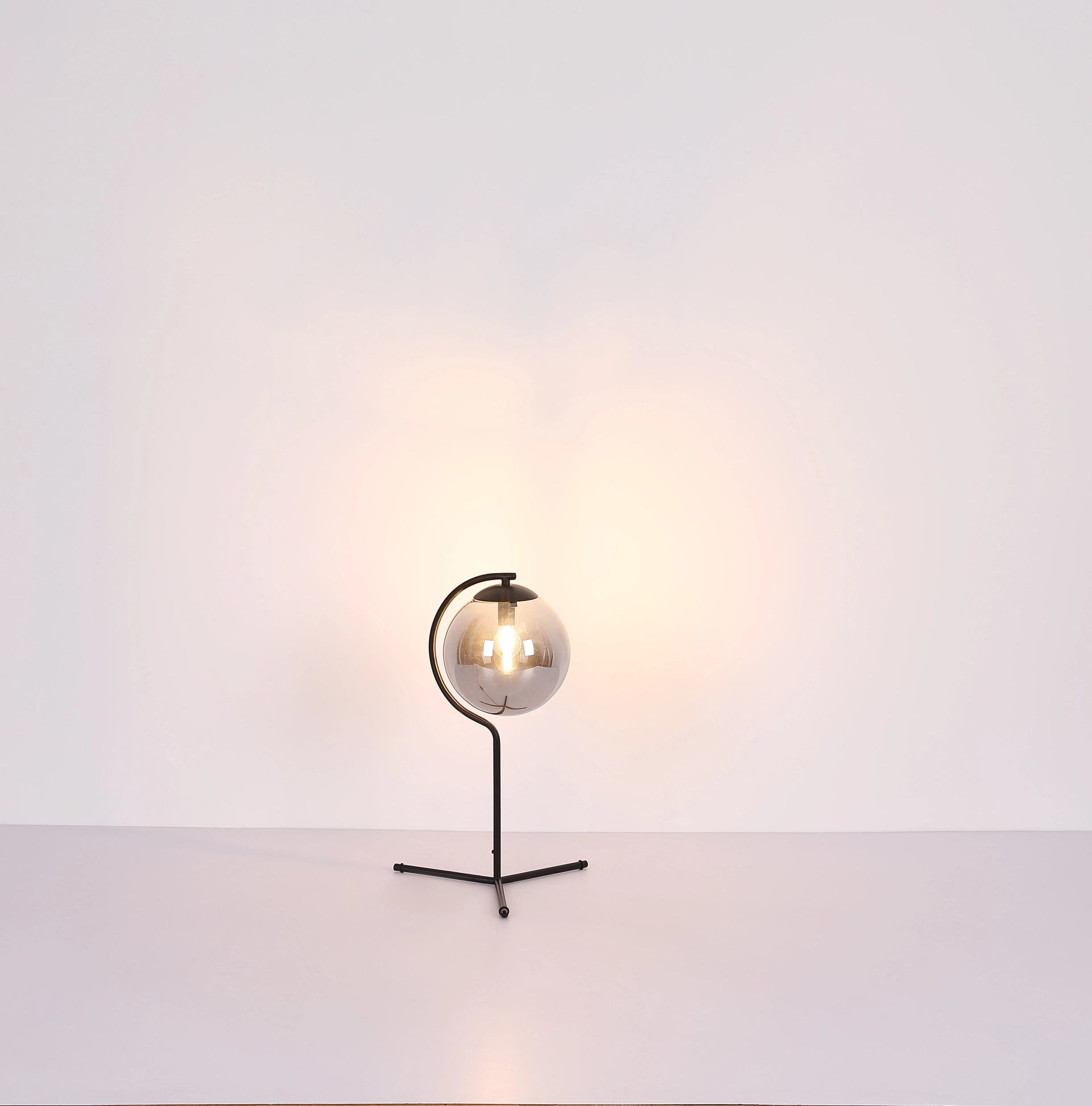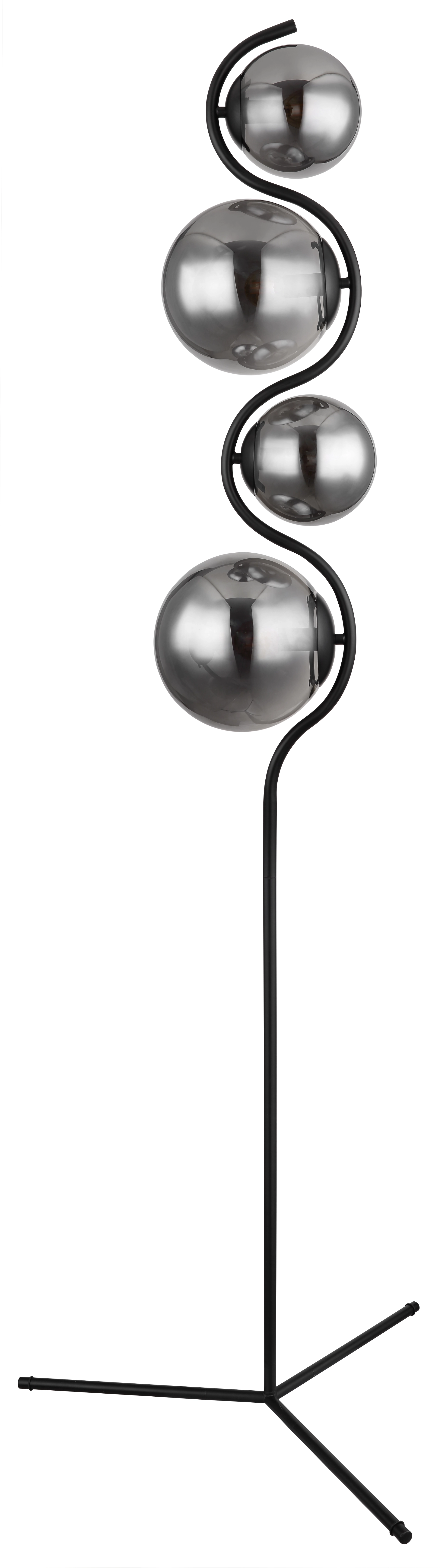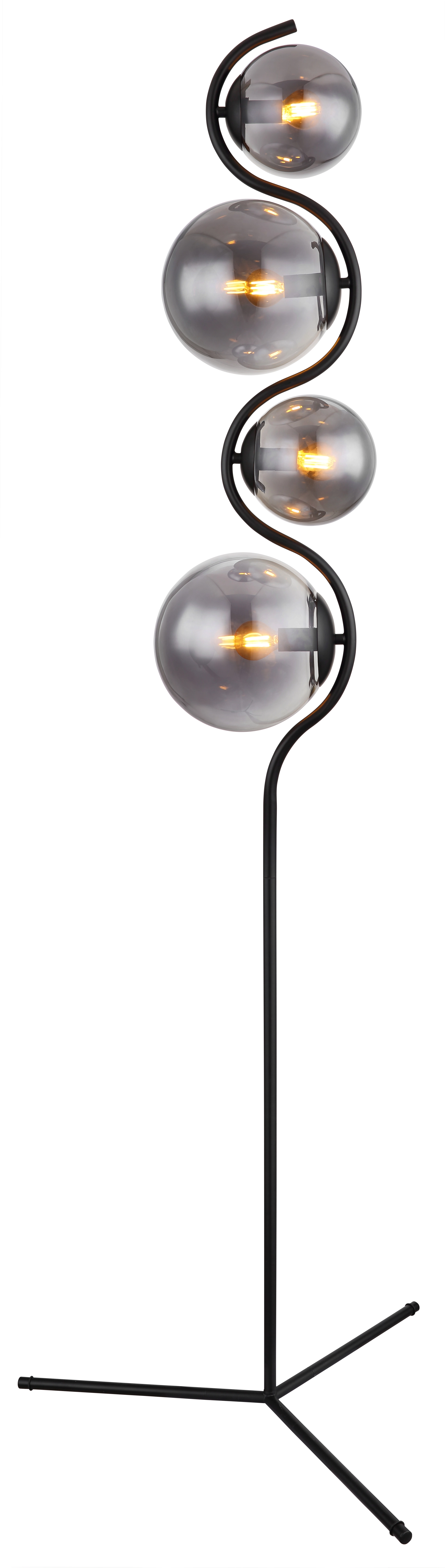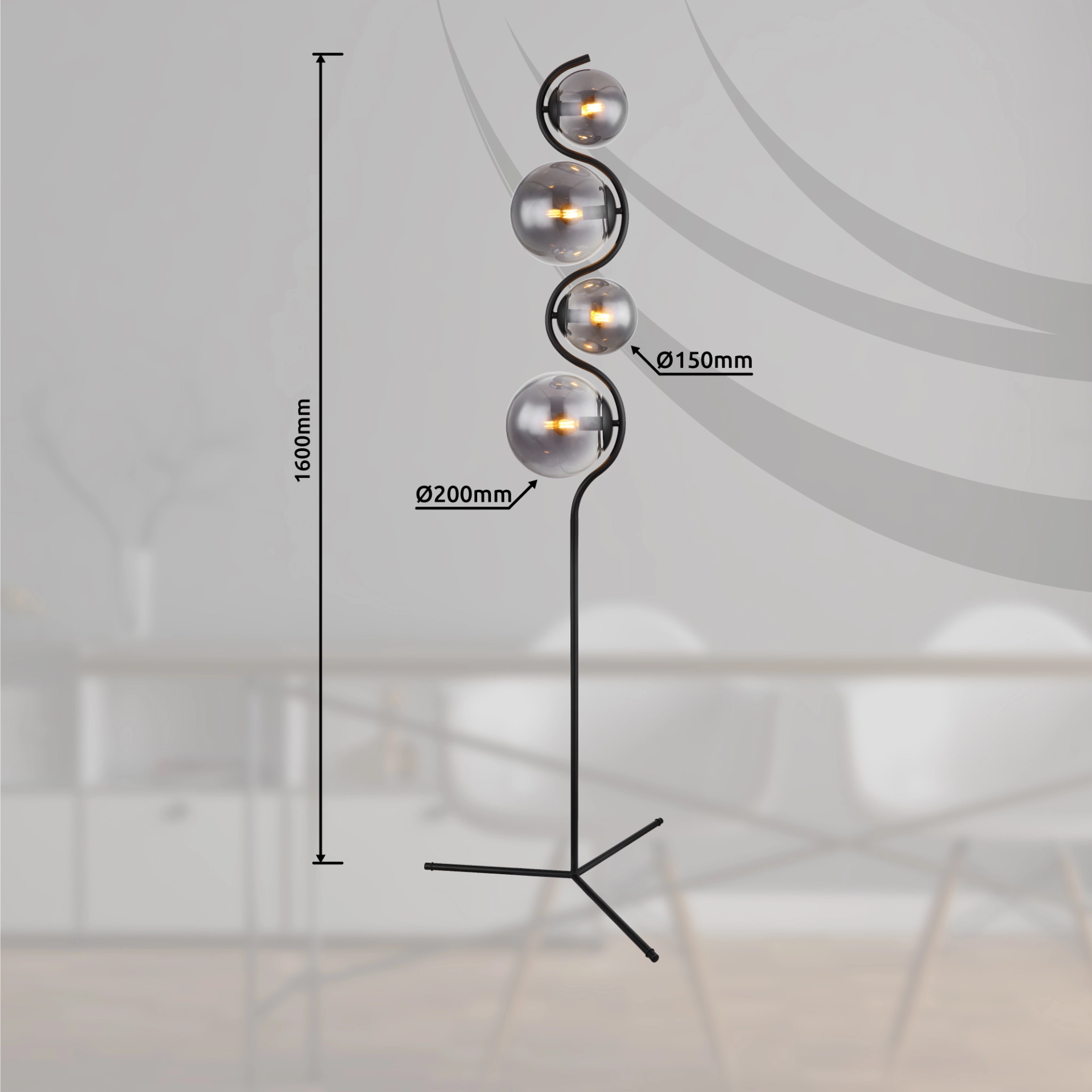 Diese moderne Stehleuchte begeistert durch tolles Design. Aus einem schwarz matten Dreibein ragt eine 1,6 m lange geschwungene Metallstange, an dieser sich vier E14 Fassungen mit jeweils einem formschönen rauchfarbenen Glasschirm befinden. Die E14 Fassungen ermöglichen Ihnen bis zu einer maximalen Leistung von 25 Watt, selbst über Lichtfarbe und Helligkeit zu bestimmen. Aufgrund von Langlebigkeit und Stromersparnis empfehlen wir Ihnen LED Leuchtmittel.
