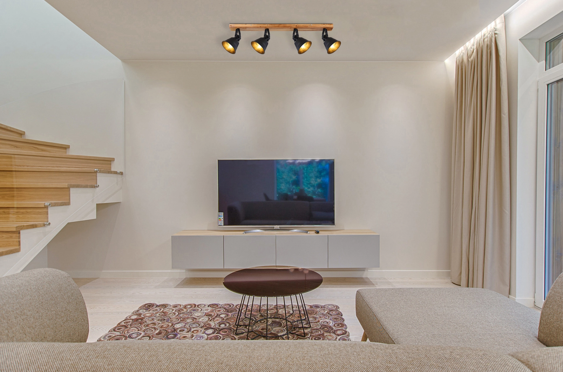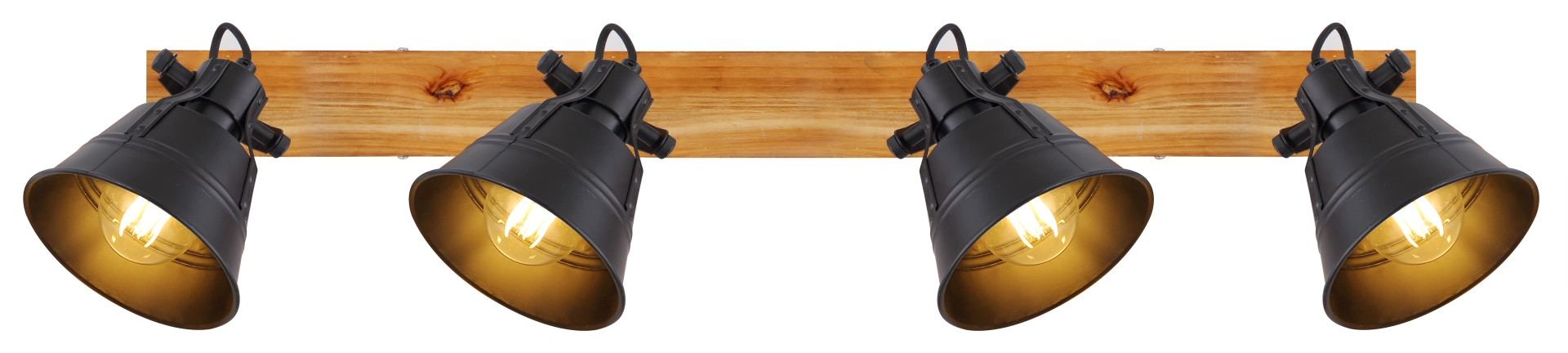 Industriedesign trifft Eleganz. Der vierflammige Strahler „GÜNTHER“ besteht aus einer hölzernen Wandhalterung sowie aus vier schwarzen matten Metallschirmen welche innen ... Mehr erfahren Mehr erfahren