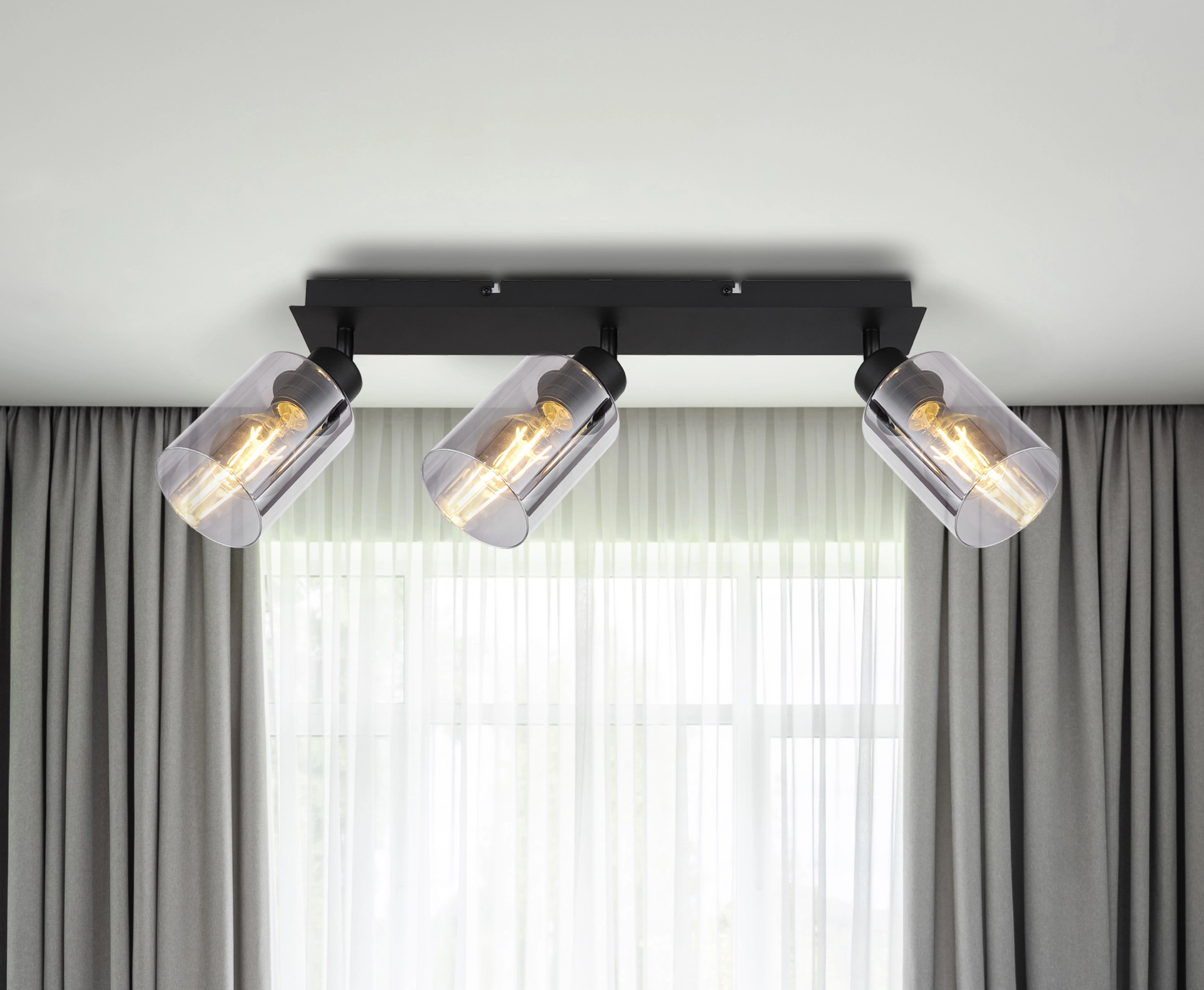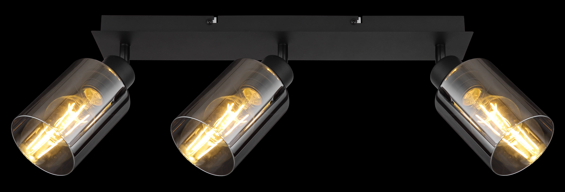 Dieser wunderschöne Strahler begeistert durch tolles Design. Auf einem schmalen schwarz matten Metallgehäuse (47x9cm) befinden sich drei E27 Fassung, bestückt ... Mehr erfahren Mehr erfahren