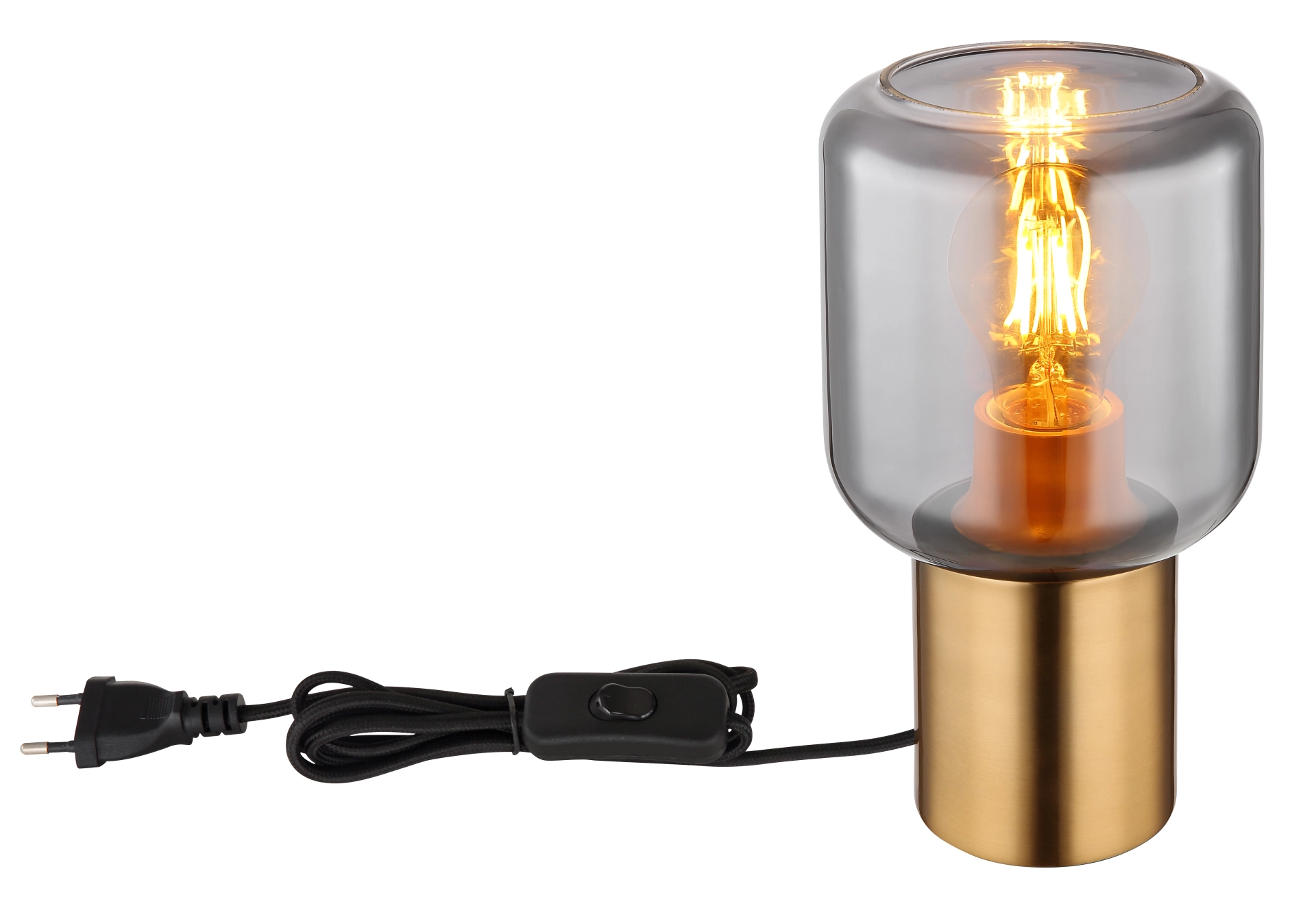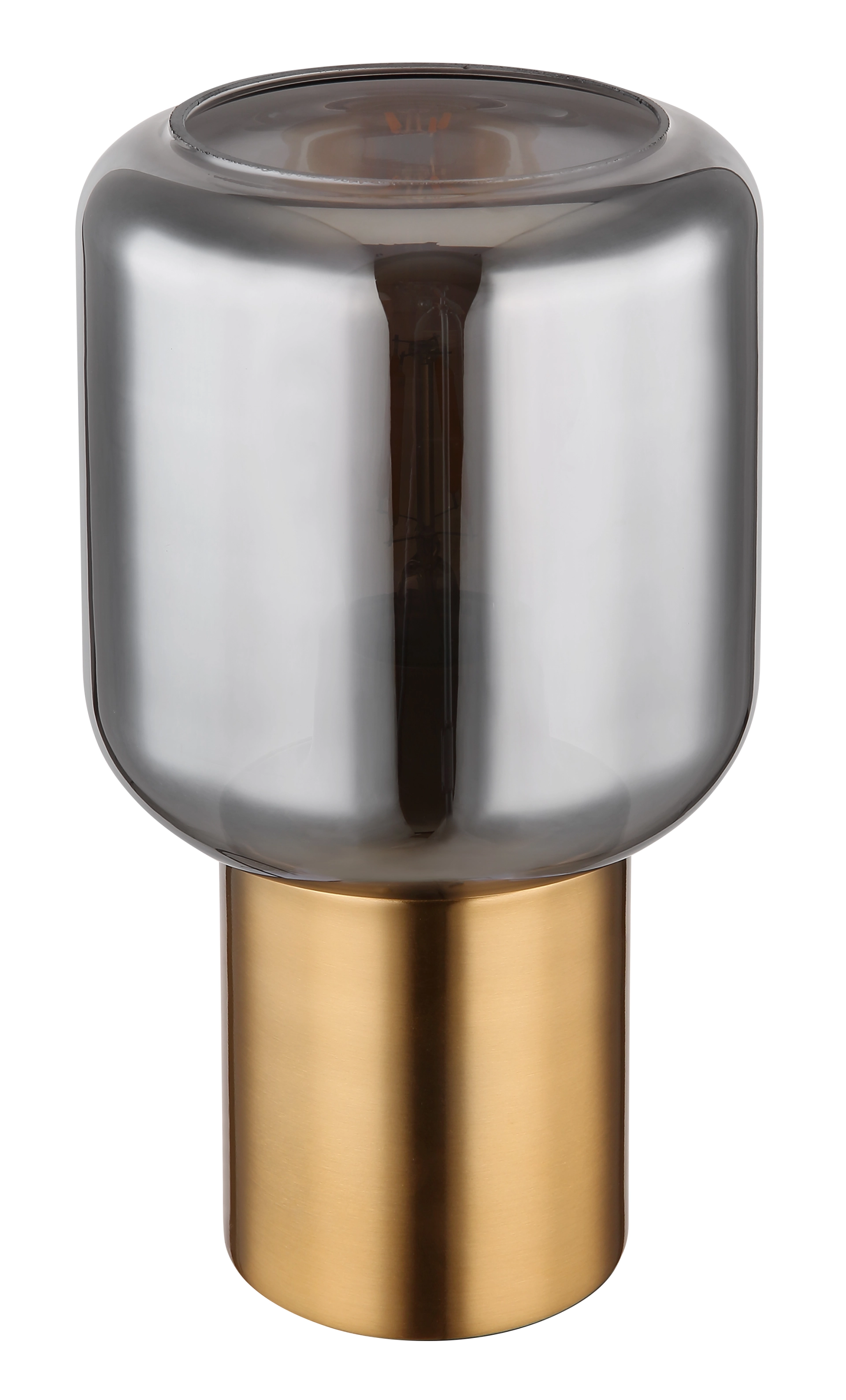 Diese wunderschöne Tischleuchte begeistert durch ein tolles Design. Aus einem runden messingfarbenen Sockel ragt eine E27 Fassung mit einem formschönen rauchfarbenen Glasschirm (Ø 13 cm). Die E27 Fassung ermöglicht Ihnen bis zu einer maximalen Leistung von 40 Watt, selbst über Lichtfarbe und Helligkeit zu bestimmen. Aufgrund von Langlebigkeit und Stromersparnis empfehlen wir LED Leuchtmittel.