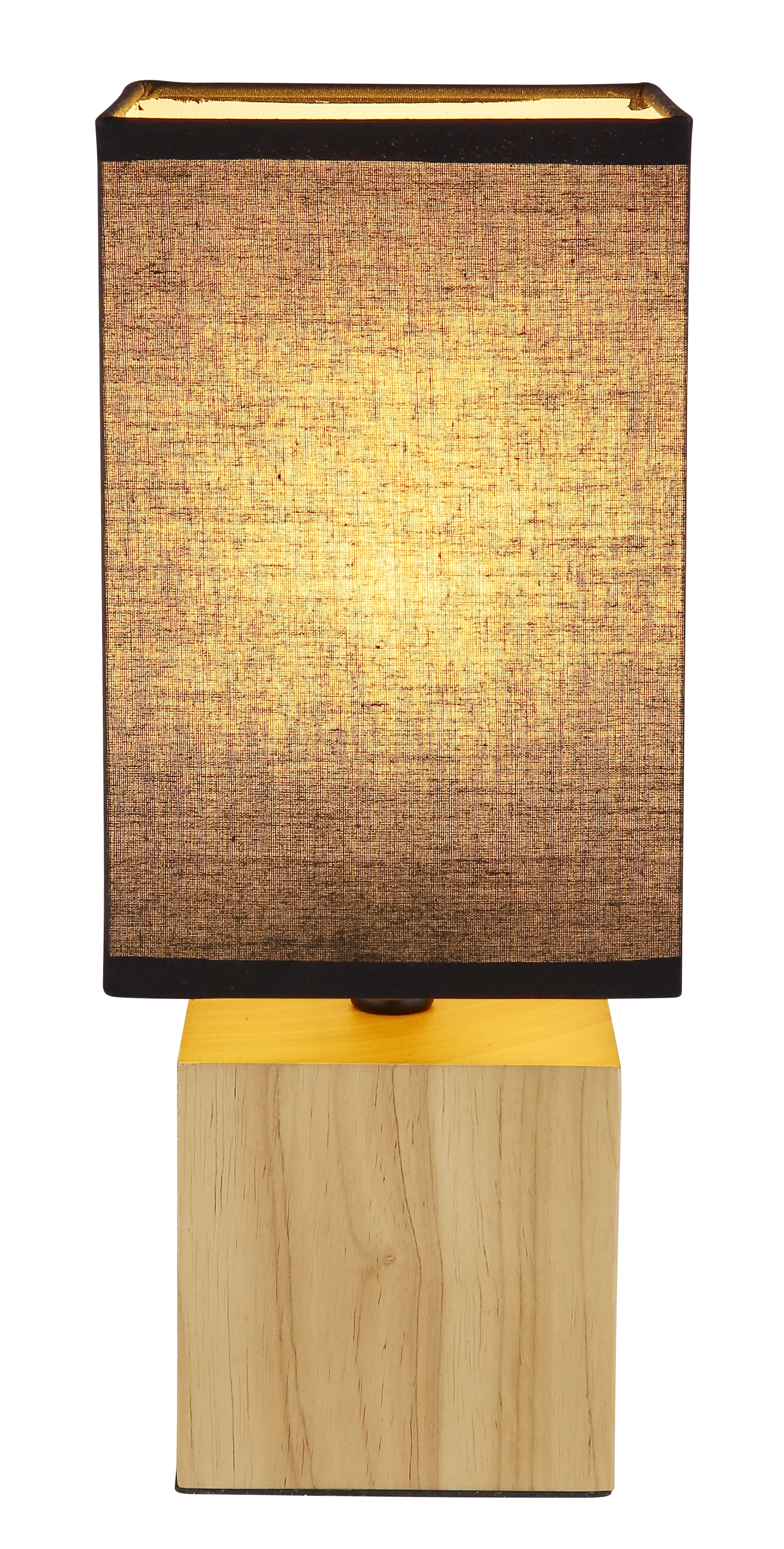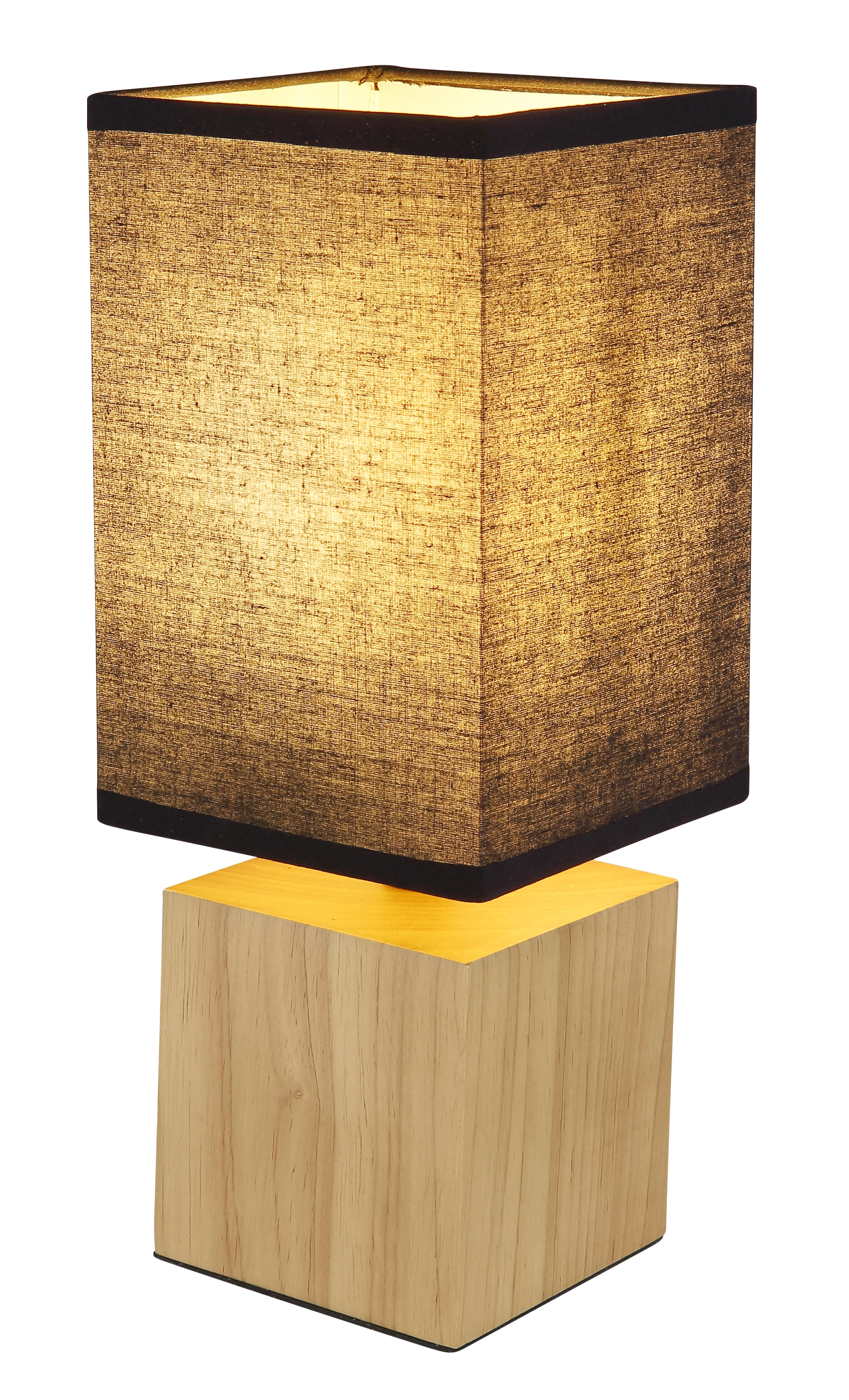 Diese moderne Tischleuchte der Serie Valentino überzeugt durch ein tolles Design. An einem Würfel (12 cm) aus Naturfarbenden Holz befindet sich eine E27 Fassung mit einem formschönen Textilschirm in Schwarz. Die E27 Fassung ermöglicht Ihnen bis zu einer maximalen Leistung von 7 Watt, selbst über Lichtfarbe und Helligkeit zu entscheiden. Aufgrund von Langlebigkeit und Stromersparnis empfehlen wir LED Leuchtmittel.