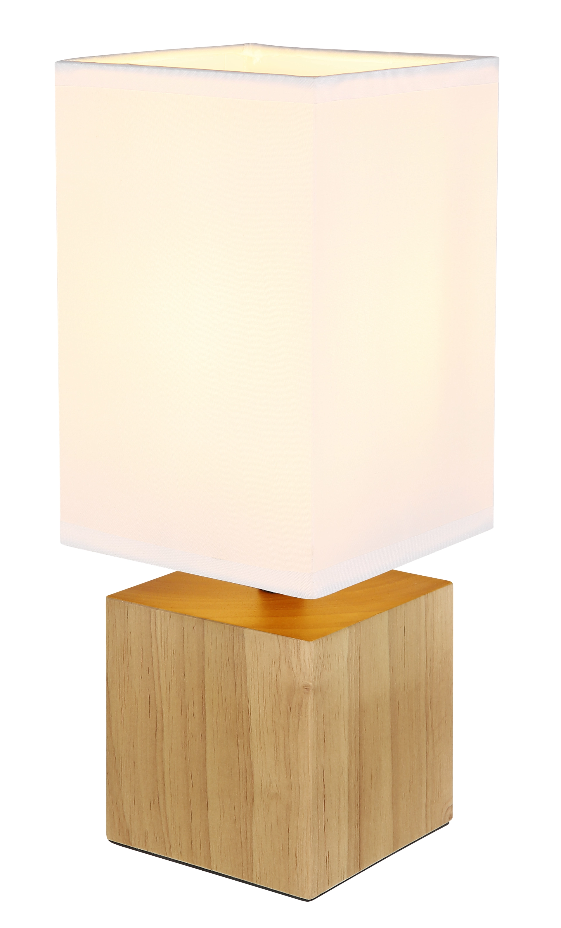 Diese moderne Tischleuchte der Serie Valentino überzeugt durch ein tolles Design. An einem Würfel (12 cm) aus Naturfarbenden Holz befindet sich eine E27 Fassung mit einem formschönen Textilschirm in Weiß. Die E27 Fassung ermöglicht Ihnen bis zu einer maximalen Leistung von 7 Watt, selbst über Lichtfarbe und Helligkeit zu entscheiden. Aufgrund von Langlebigkeit und Stromersparnis empfehlen wir LED Leuchtmittel.