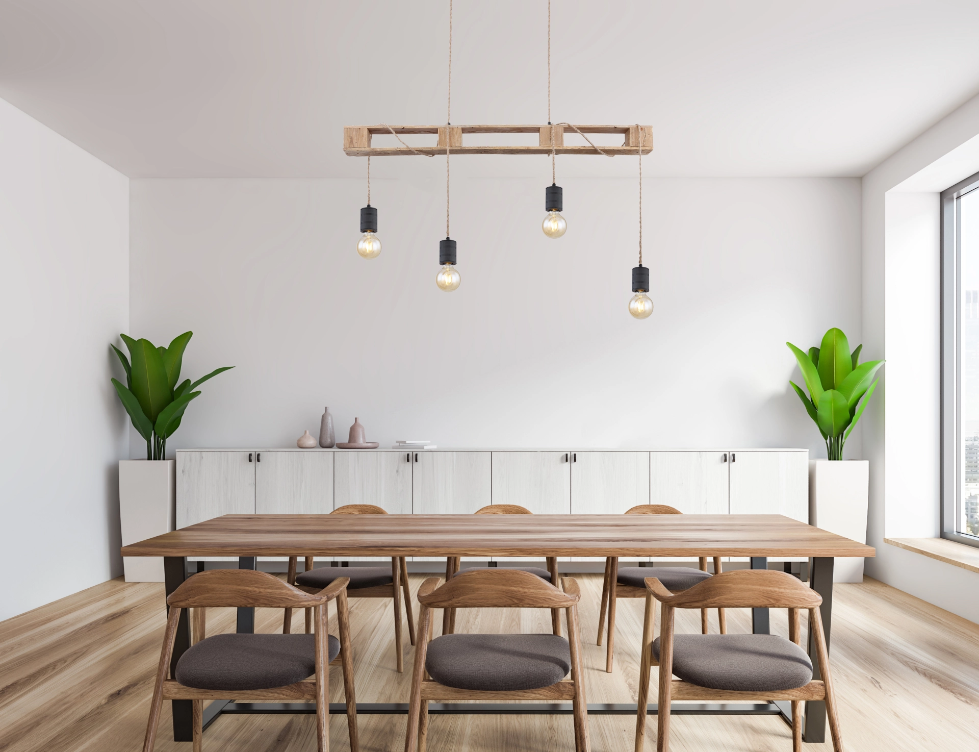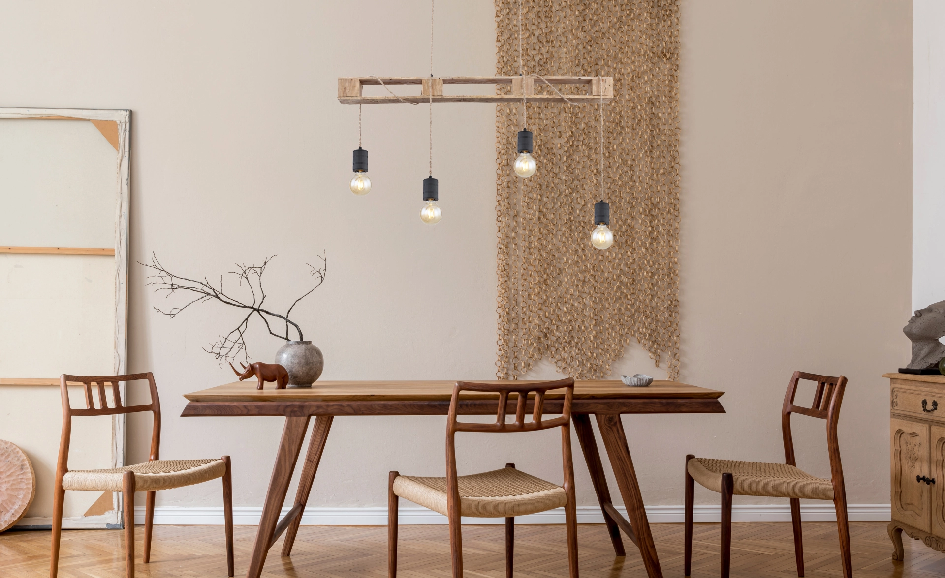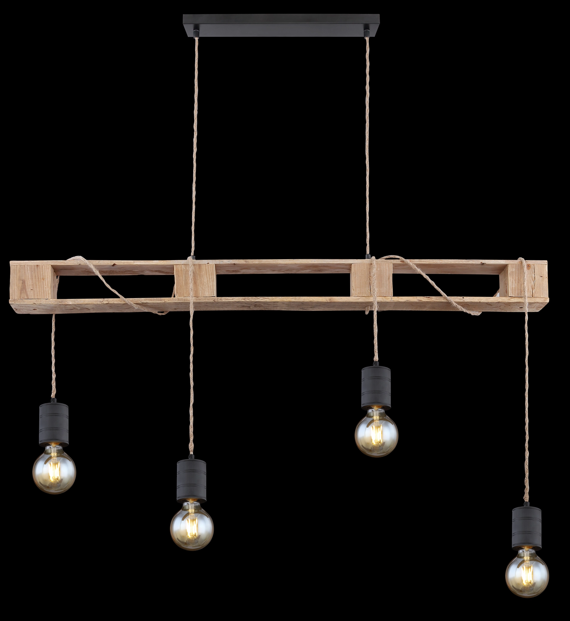 Diese Hängelampe der Joelle-Serie besticht durch ihr ausgefallenes Design aus einem Element einer Holzpalette und schwarz-mattem Metall. Durch ihre längliche ... Mehr erfahren Mehr erfahren