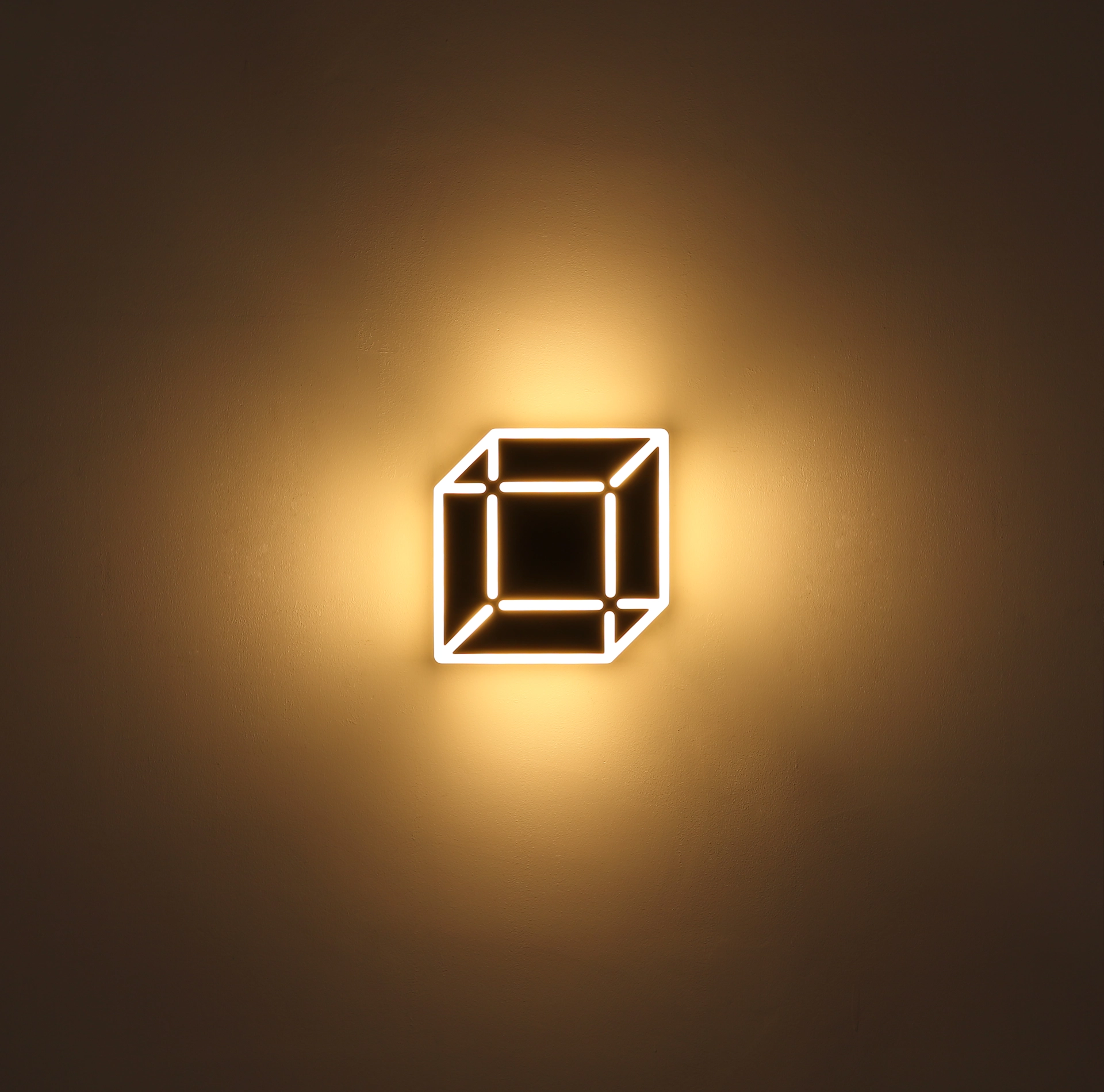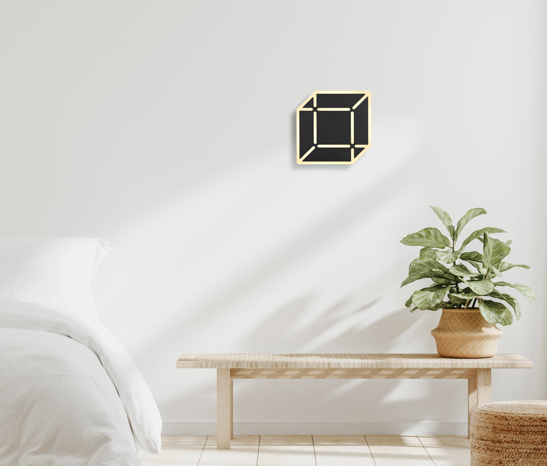 Diese Wandleuchte besteht aus schwarz matt lackiertem Metall und einem opalweißen Acrylglas. Die Maße der Leuchte betragen 250mm x 250mm ... Mehr erfahren Mehr erfahren