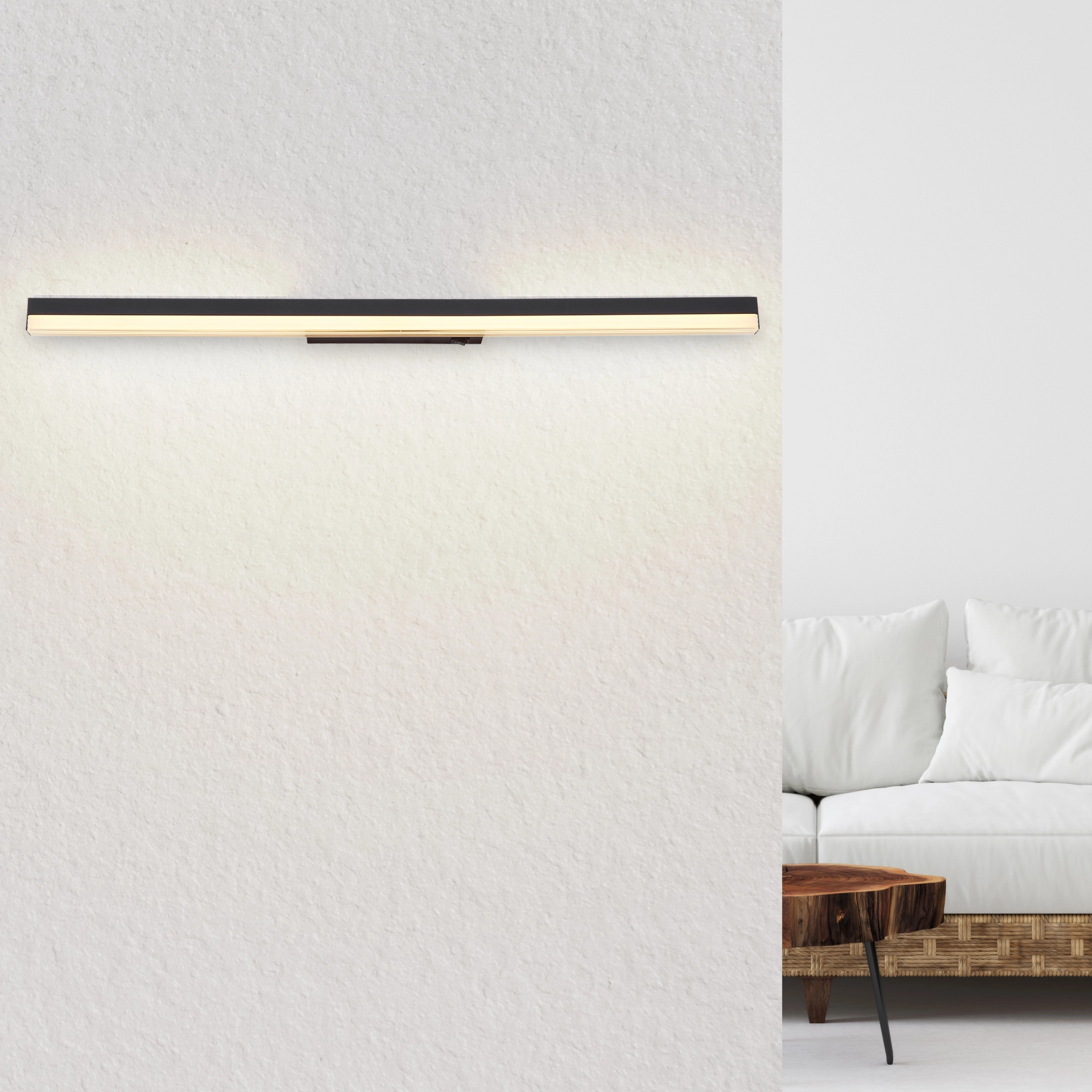 Die Wandleuchte besteht aus schwarz mattem Metall und schwarz mattem Aluminium sowie opalem Acryl, das in einem Durchmesser von 800 ... Mehr erfahren Mehr erfahren