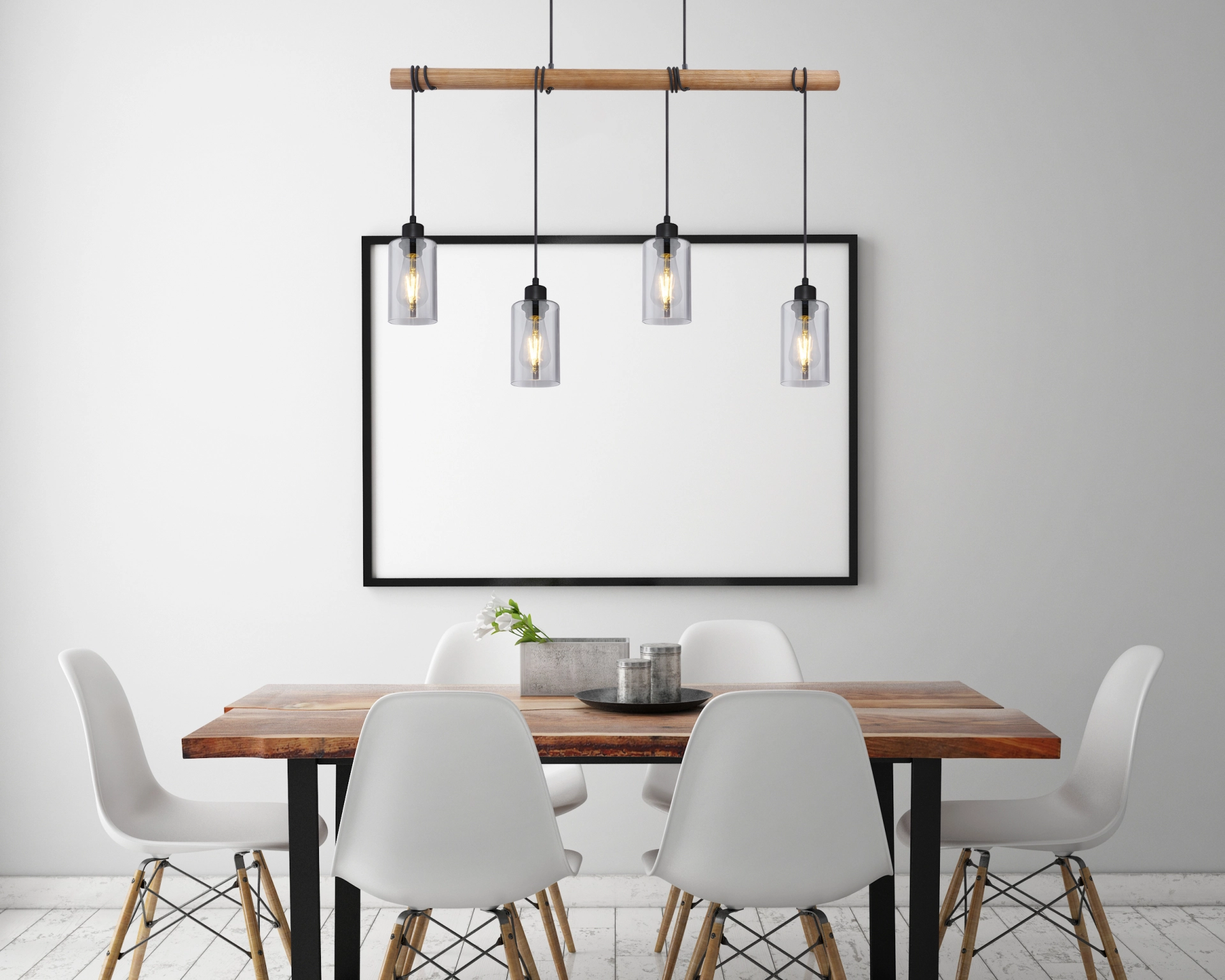 Diese moderne Hängelampe der Serie Hadera besticht durch ihr stilvolles Design aus schwarz-mattem Metall und Holz. Durch ihre längliche Form ... Mehr erfahren Mehr erfahren