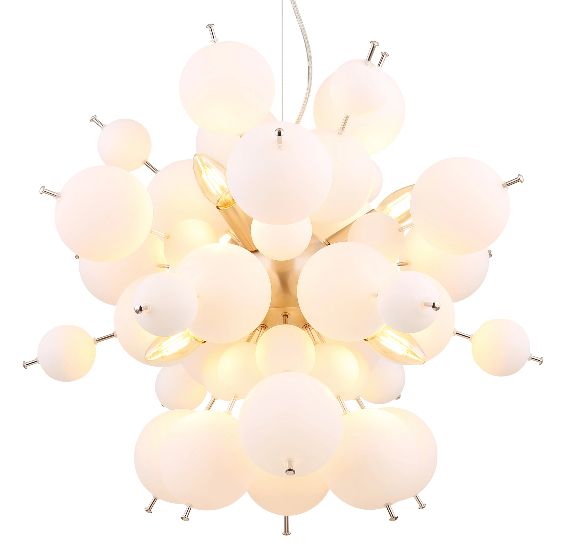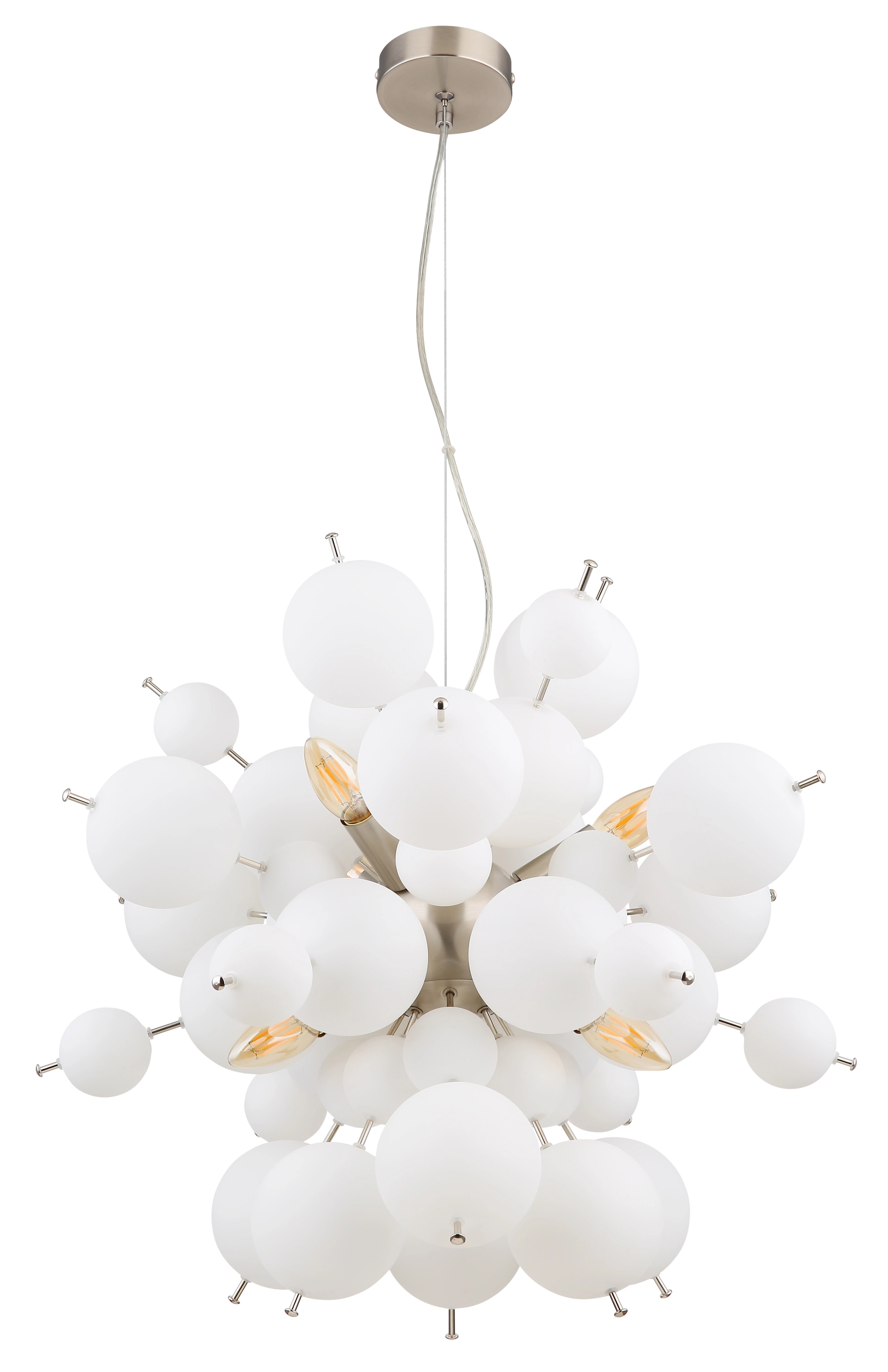 Mit der Hängeleuchte UDO setzen Sie ein echtes Design-Statement in Ihrem Zuhause. Das runde Design mit den Stäben, die mit unterschiedlich großen Glaskugeln besetzt sind, verleiht dieser Hängeleuchte einen modernen und originellen Look. Der Korpus der UDO Hängeleuchte besteht aus mattem Nickel, was ihr ein edles und zeitloses Aussehen verleiht. Der Schirm dieser Leuchte besteht aus opalen Glaskugeln, die für eine angenehme und gleichmäßige Lichtverteilung sorgen. Mit einem Durchmesser von 550 mm hängt die UDO Hängeleuchte elegant von der Decke herab. Sie eignet sich perfekt für Wohn- und Essbereiche sowie für Eingangsbereiche oder sogar fürs Büro. Diese Pendelleuchte wird garantiert alle Blicke auf sich ziehen und Ihrem Raum eine einzigartige Note verleihen. Kombinieren Sie die UDO Hängeleuchte mit verschiedenen Einrichtungsstilen und schaffen Sie eine besondere Atmosphäre in Ihrem Zuhause. Lassen Sie sich von dem außergewöhnlichen Design und dem harmonischen Lichtspiel der Glaskugeln begeistern.
